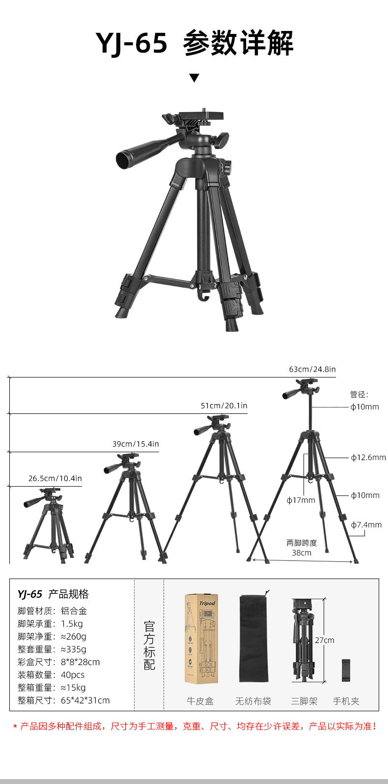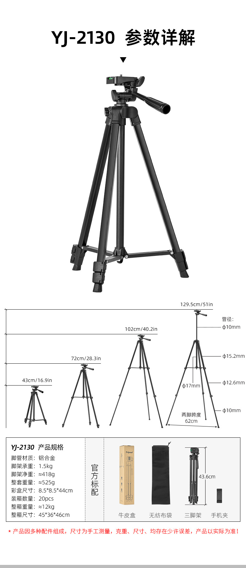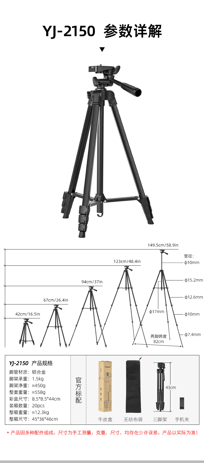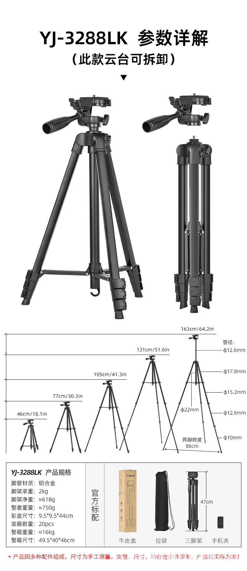 YJ 시리즈 경량 알루미늄 합금 휴대 전화 라이브 촬영 플로어 스탠딩 스탠드 휴대용 텔레스코픽 사진 카메라 삼각대스토어 가기