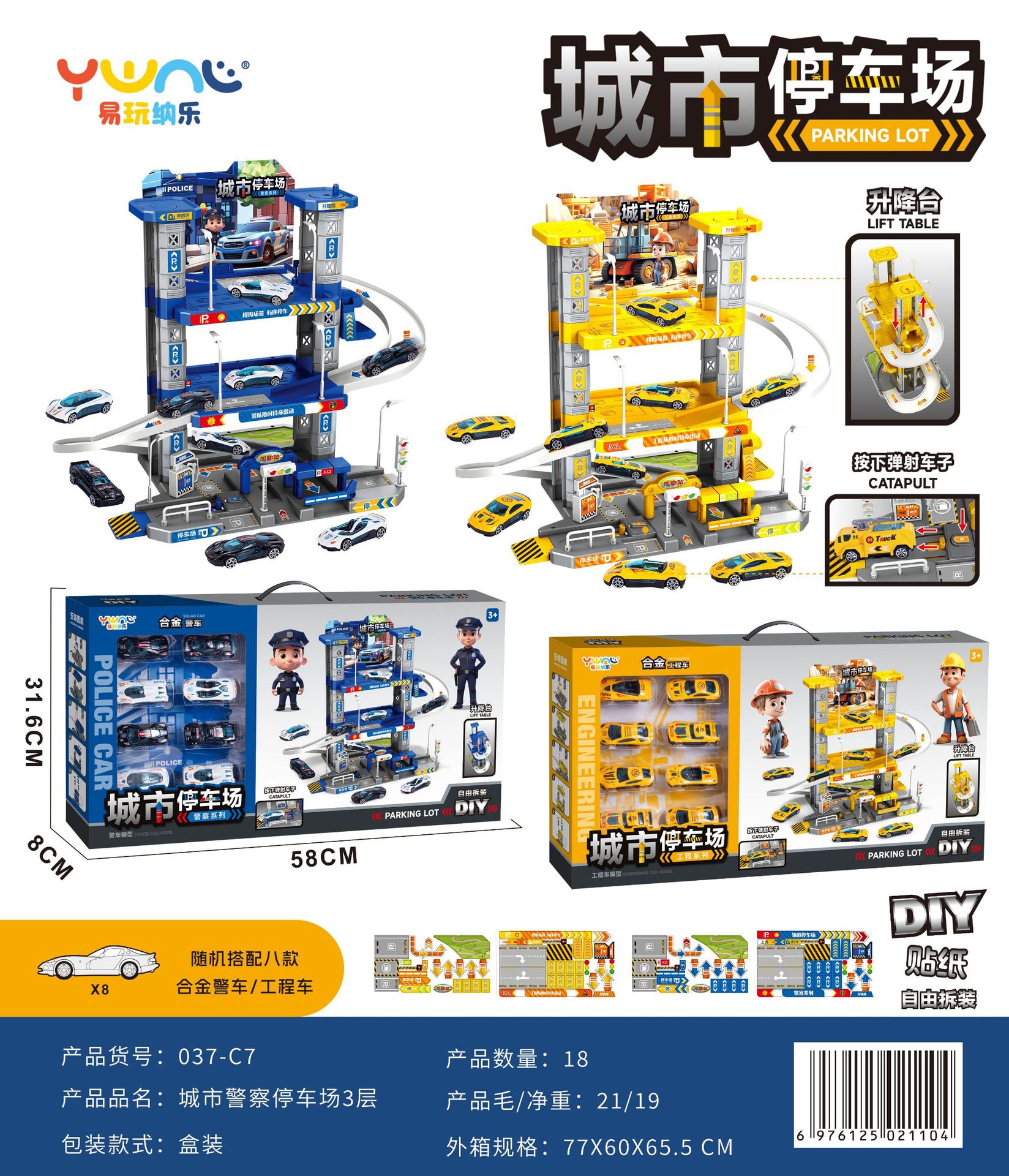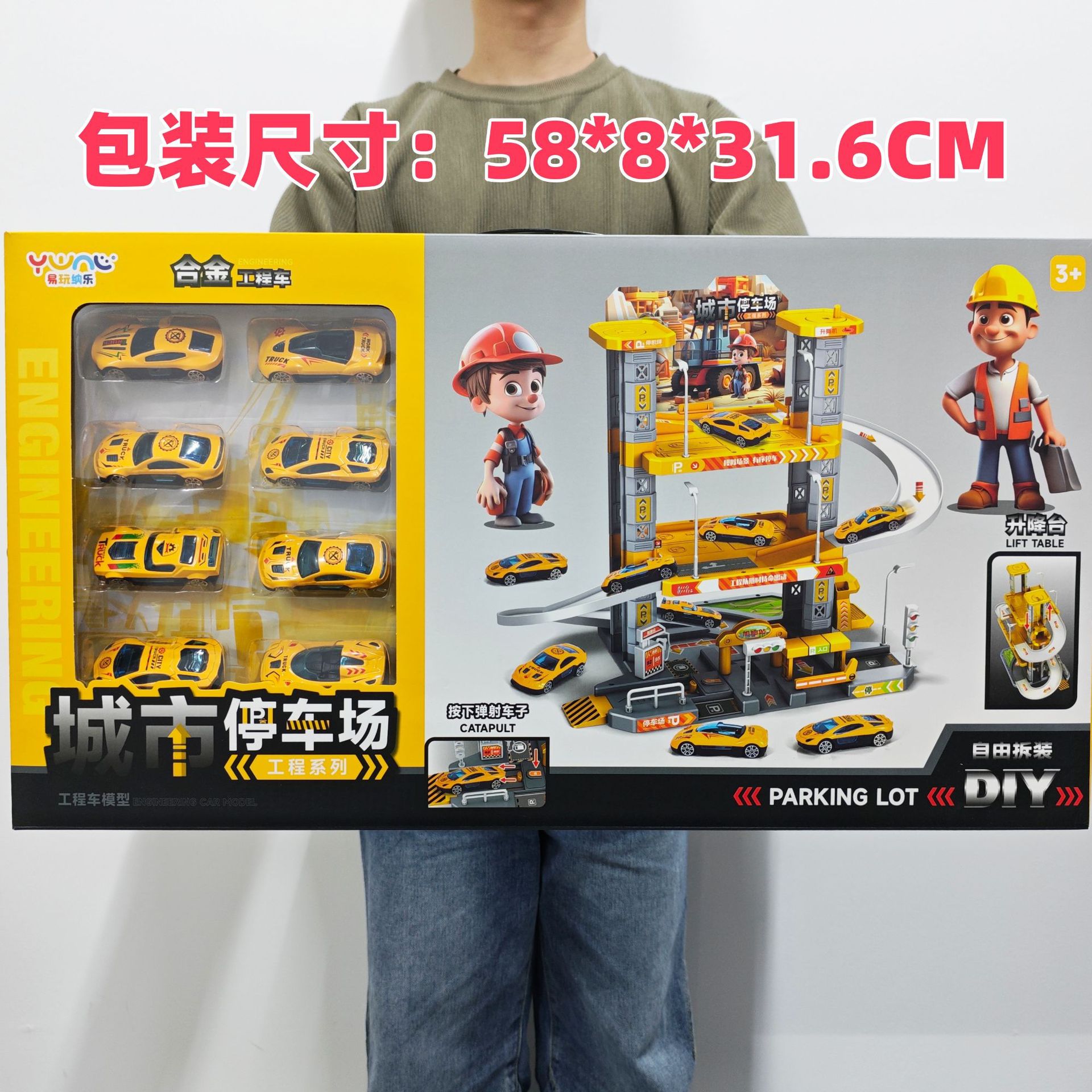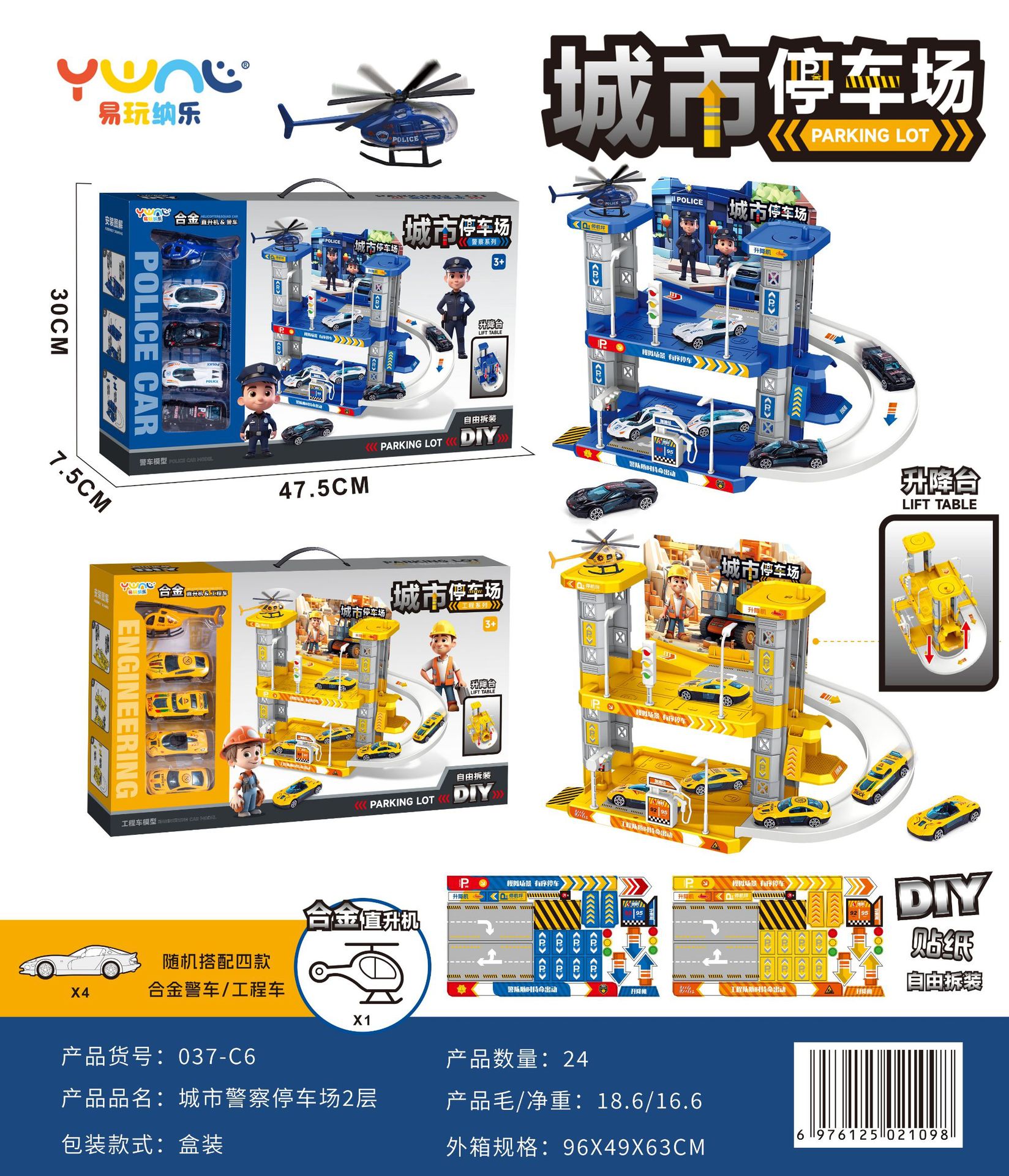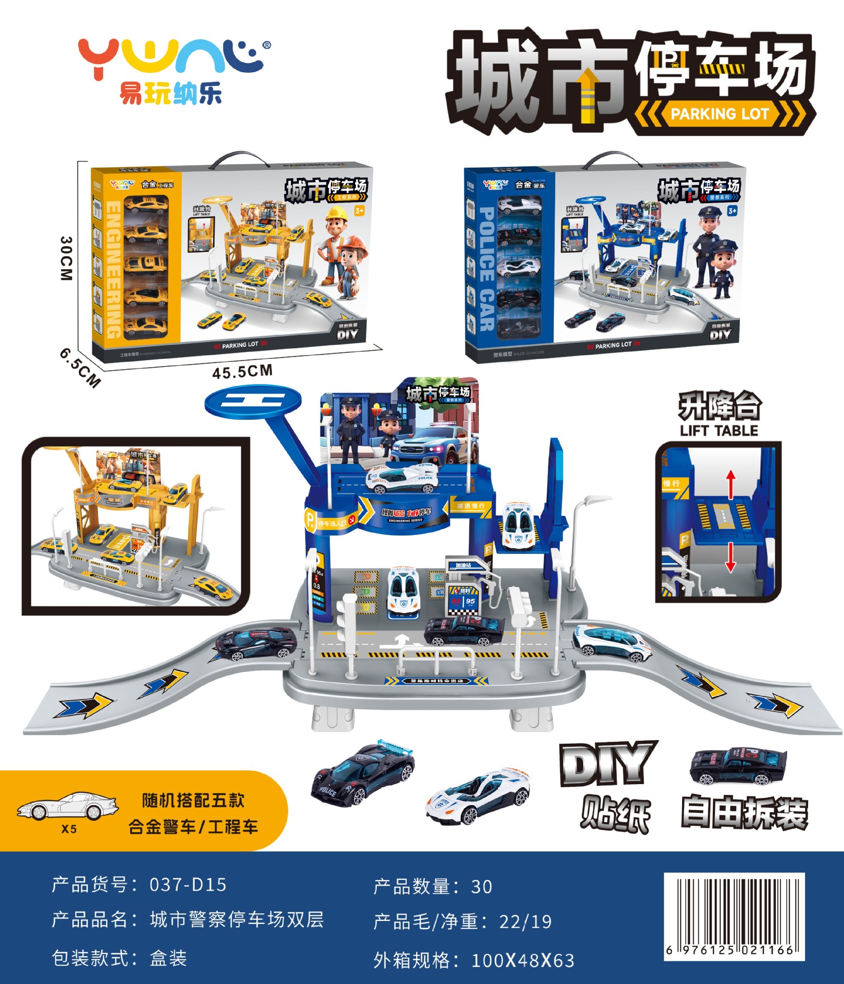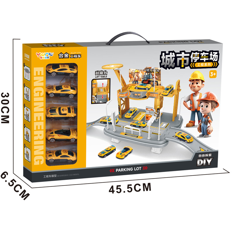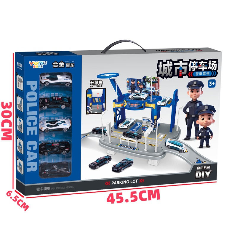 어린이 슬라이딩 트랙 자동차 장난감 주차장 합금 자동차 교육 소년 엔지니어링 자동차 경찰차 자동차 선물 상자스토어 가기
