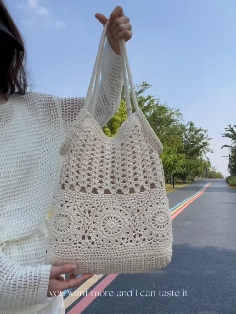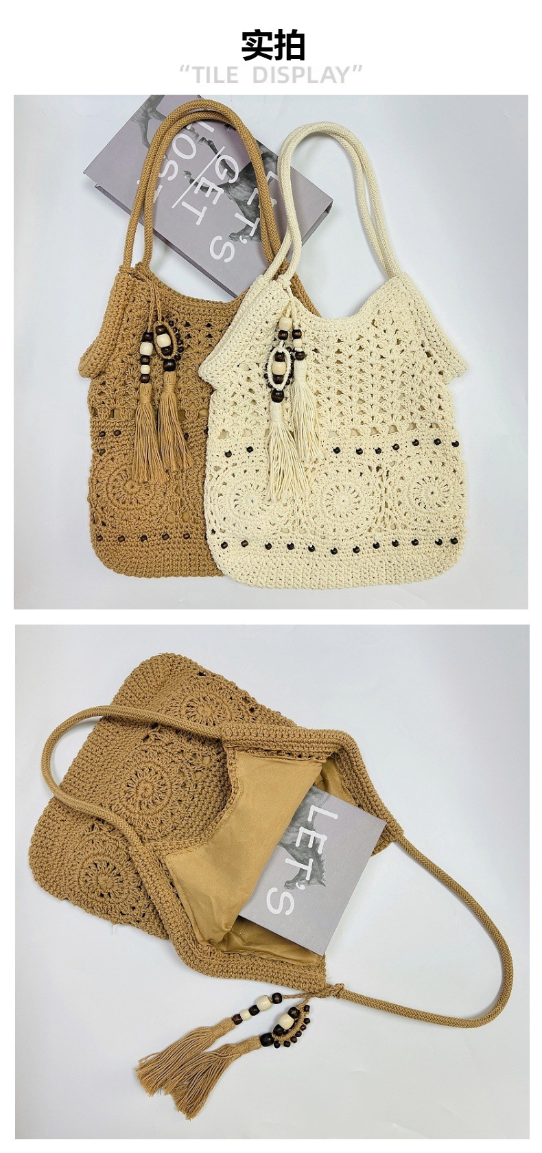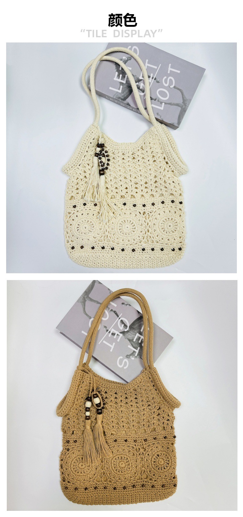 세련된 나무 구슬 태슬 숄더 코튼 브레이드 백 새로운 스타일 중공 대용량 브레이드 백 홀리데이 스타일 비치 백스토어 가기