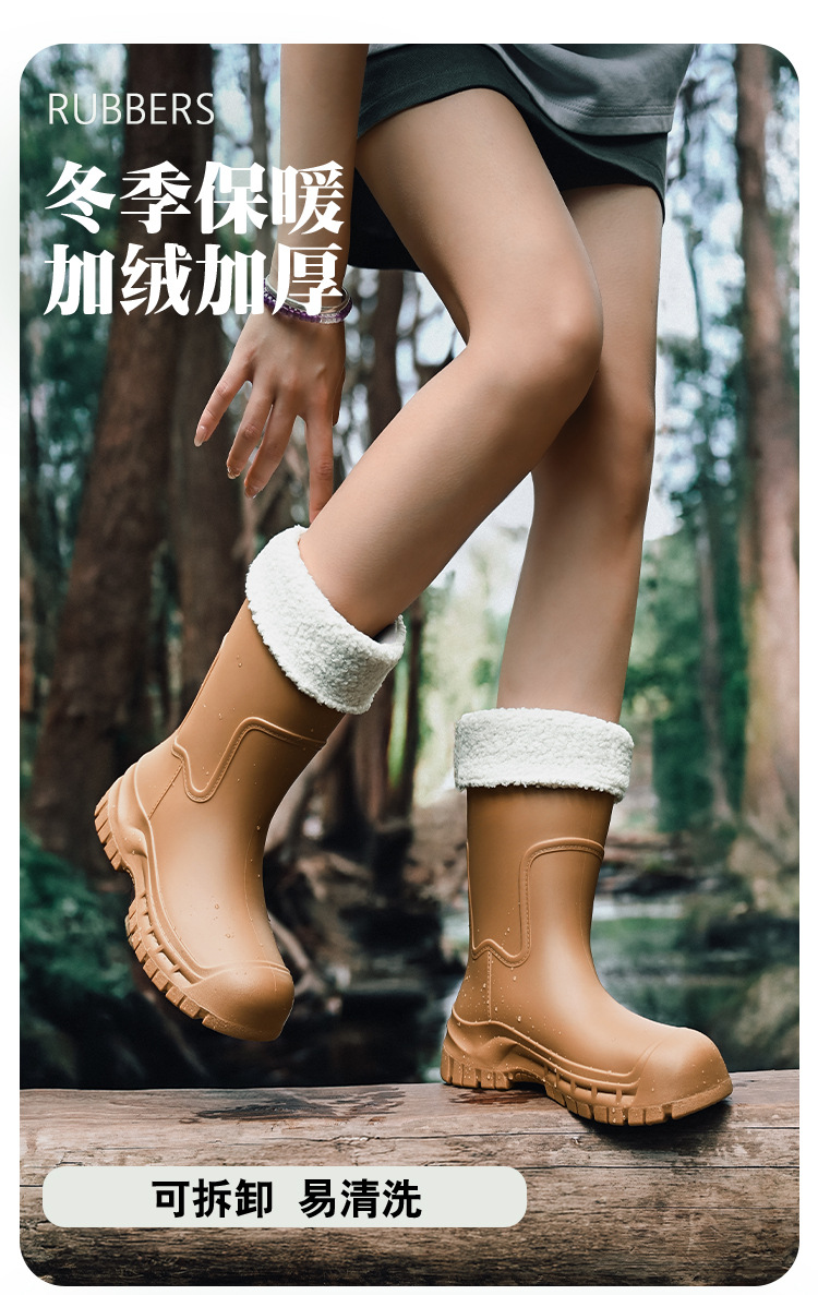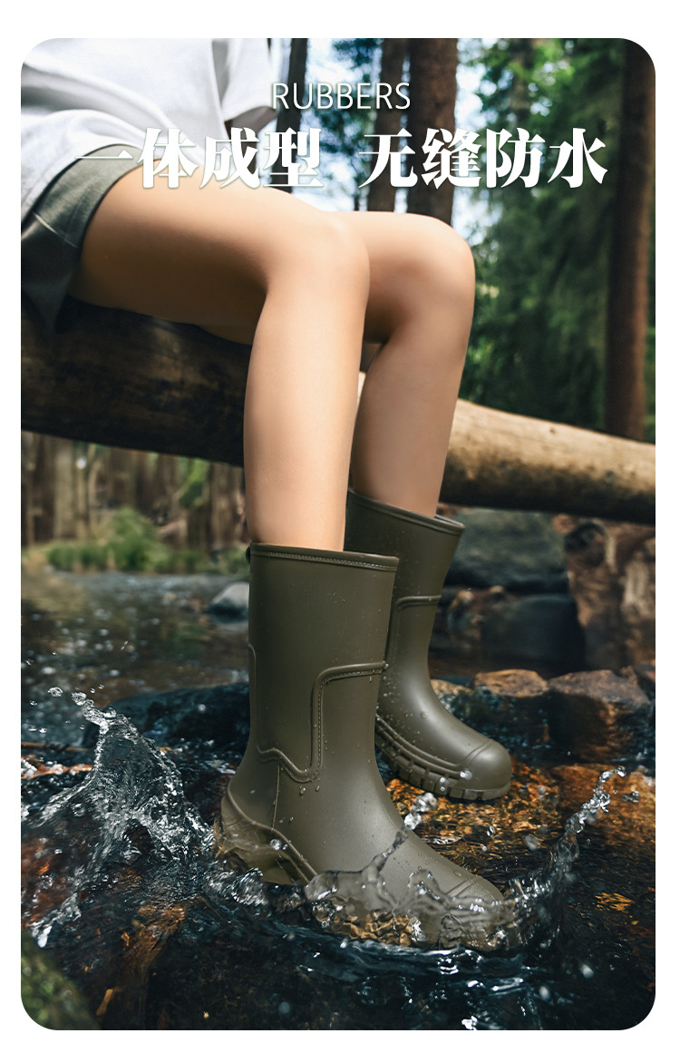 여성용 레인부츠 신상품 성인용 중간 길이 패션 방수 신발 미끄럼 방지 실리콘 레인부츠 두꺼운 밑창 키높이 고무신스토어 가기