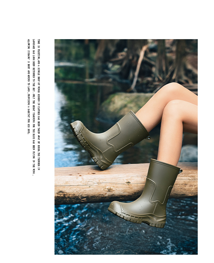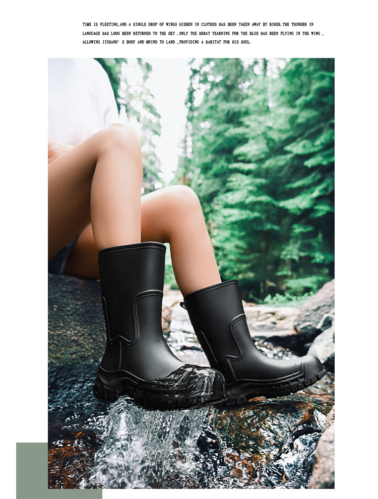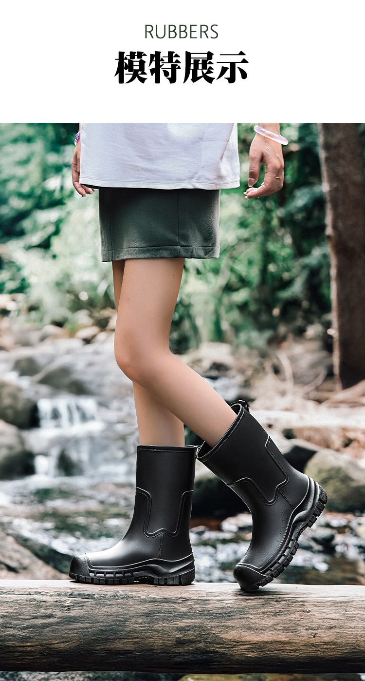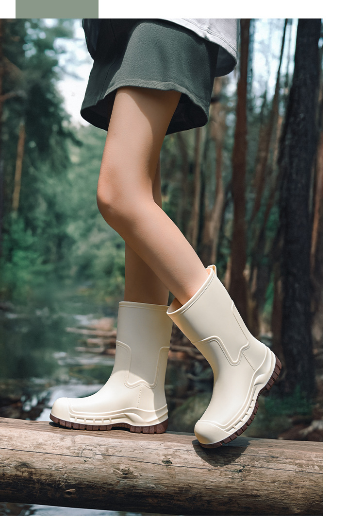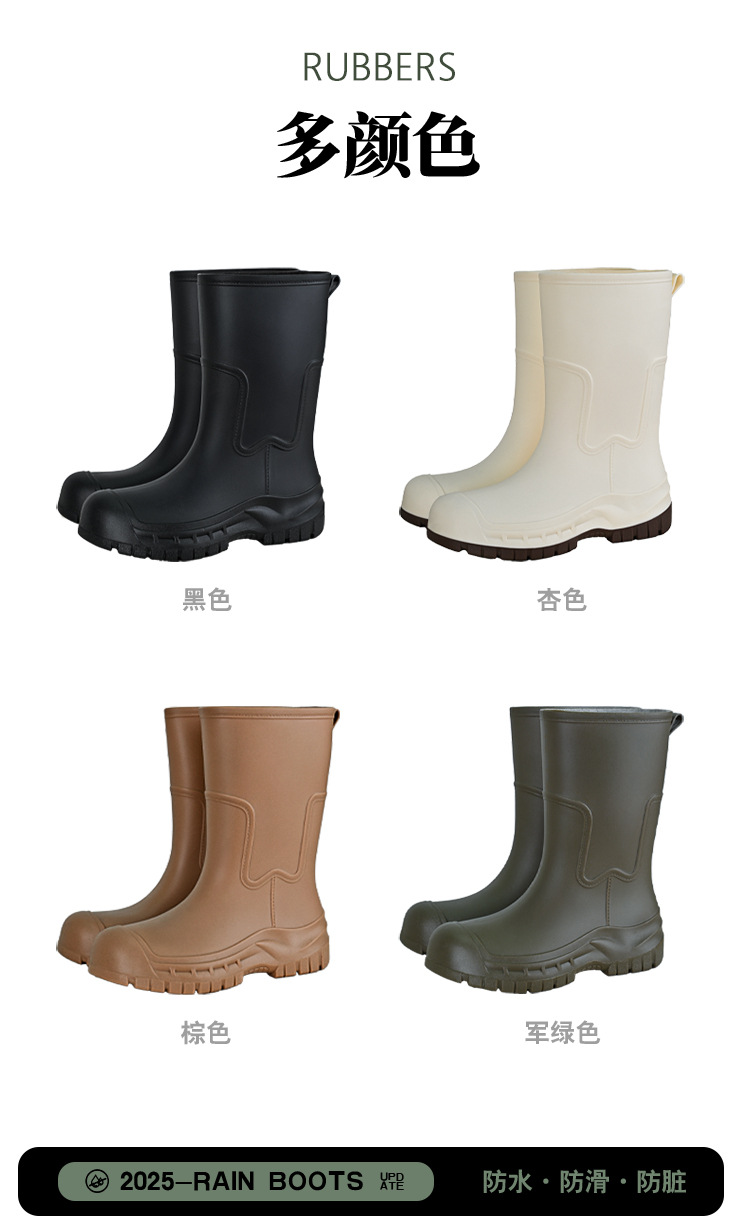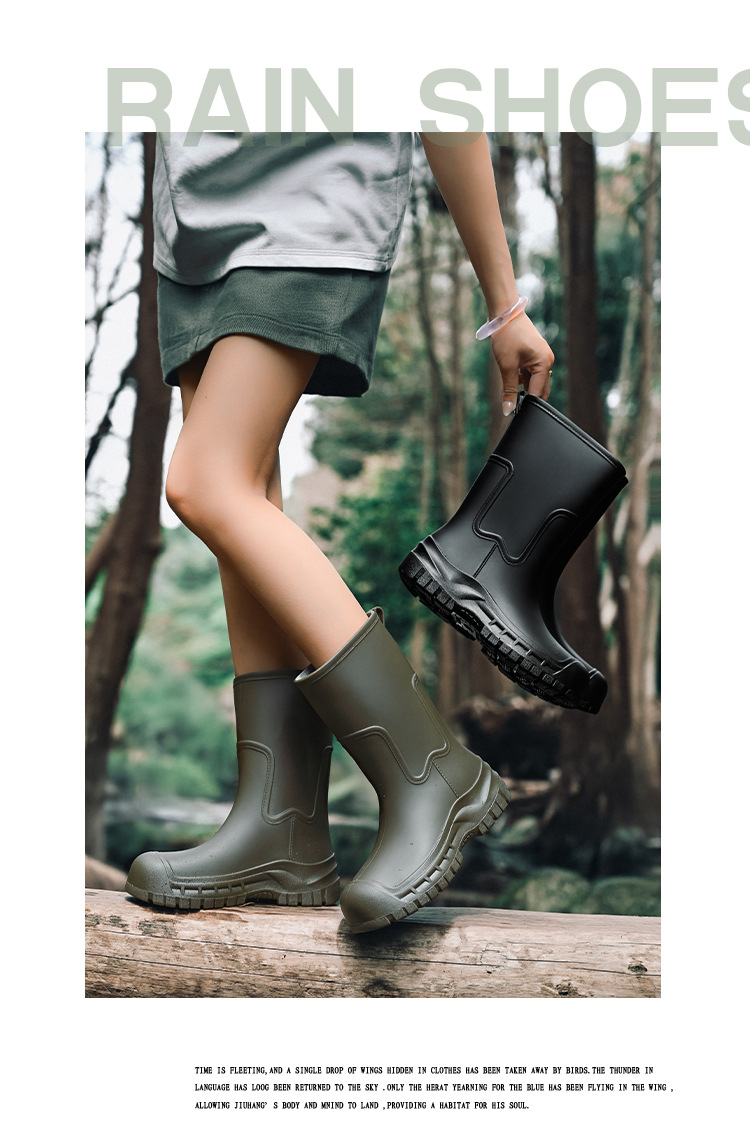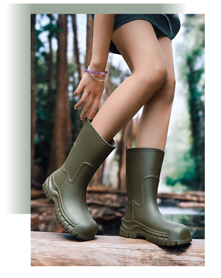 여성용 레인부츠 신상품 성인용 중간 길이 패션 방수 신발 미끄럼 방지 실리콘 레인부츠 두꺼운 밑창 키높이 고무신