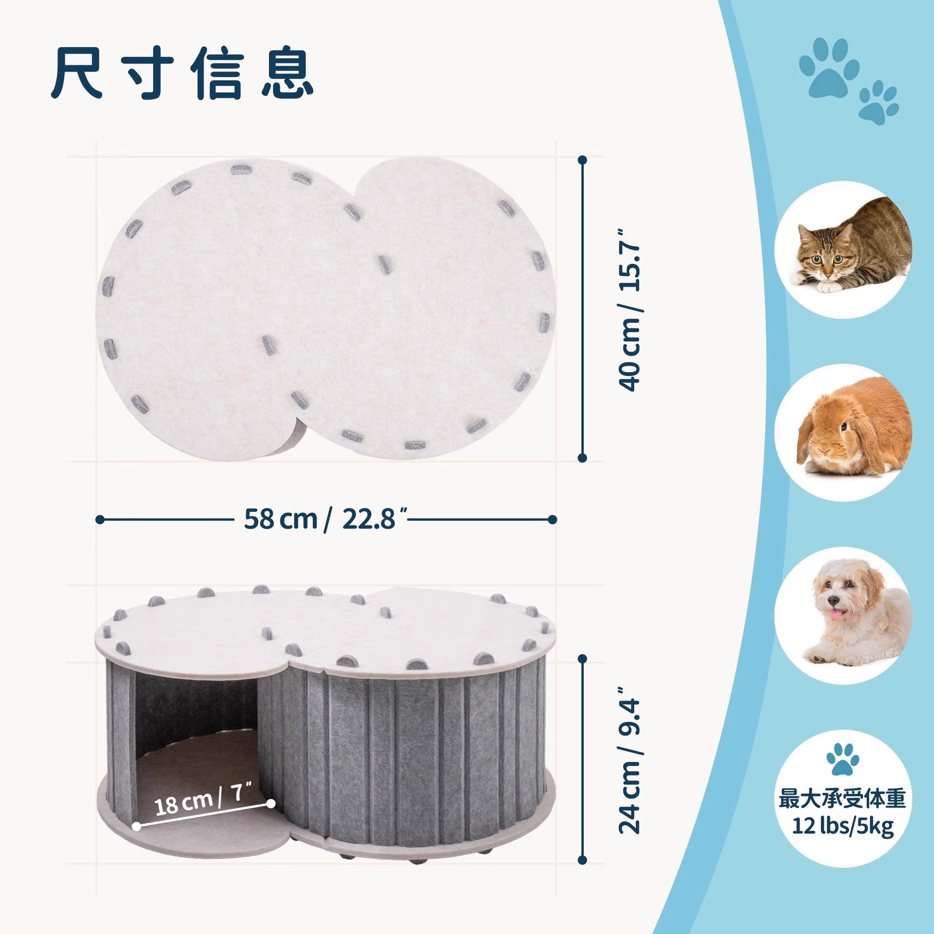 애완 동물 터널 드릴 구멍 고양이 둥지 탈출 동굴 사계절 보편적 인 반 폐쇄 내마모성 내구성 다층 고양이 집 분리 가능