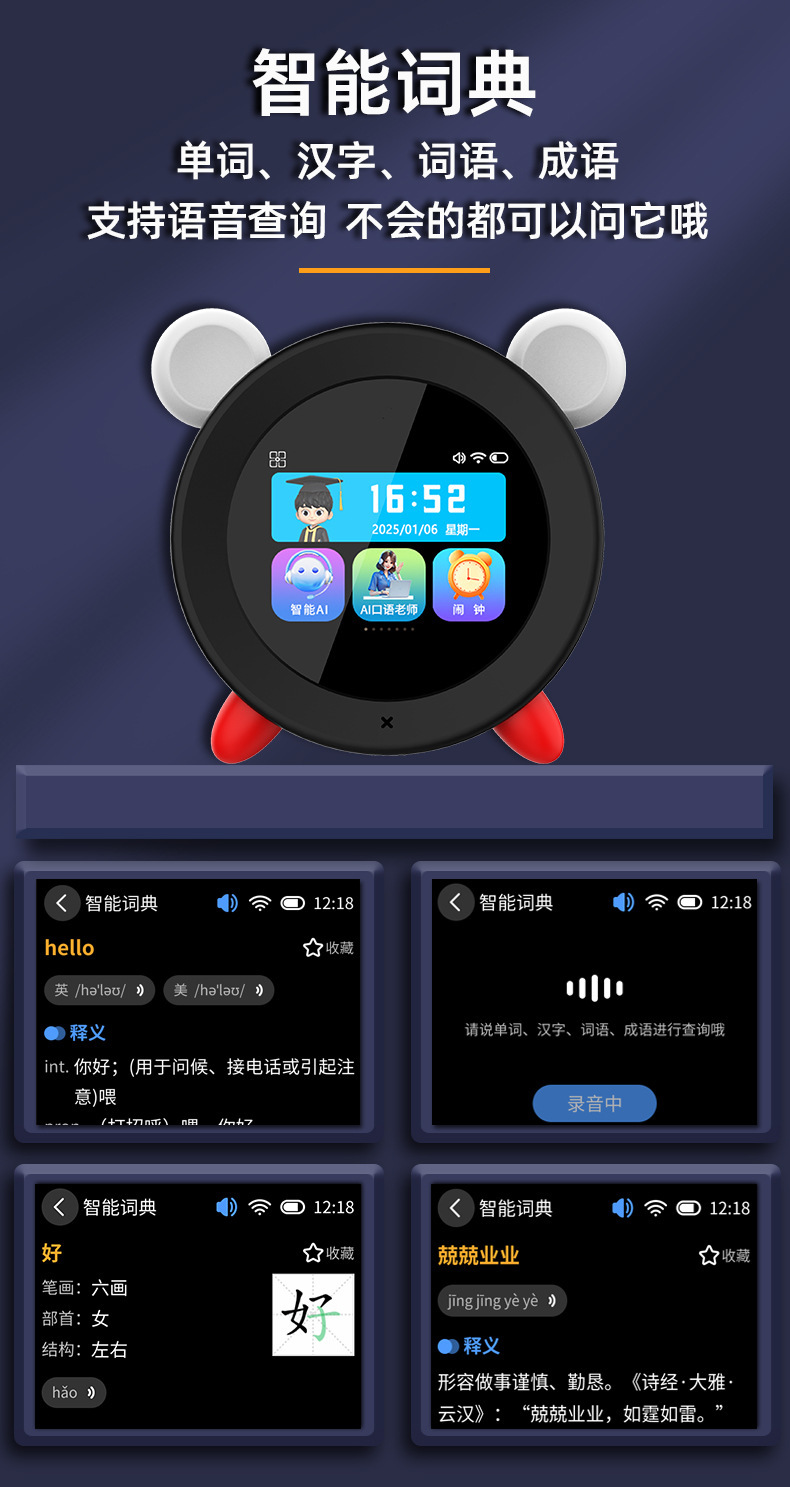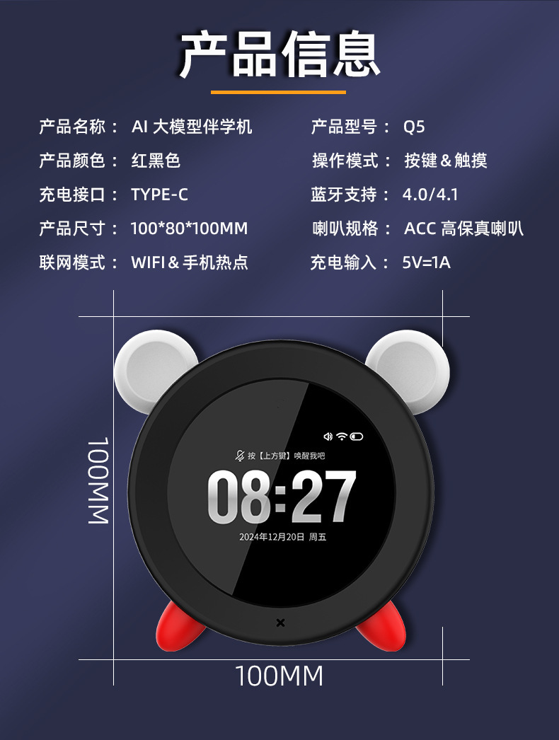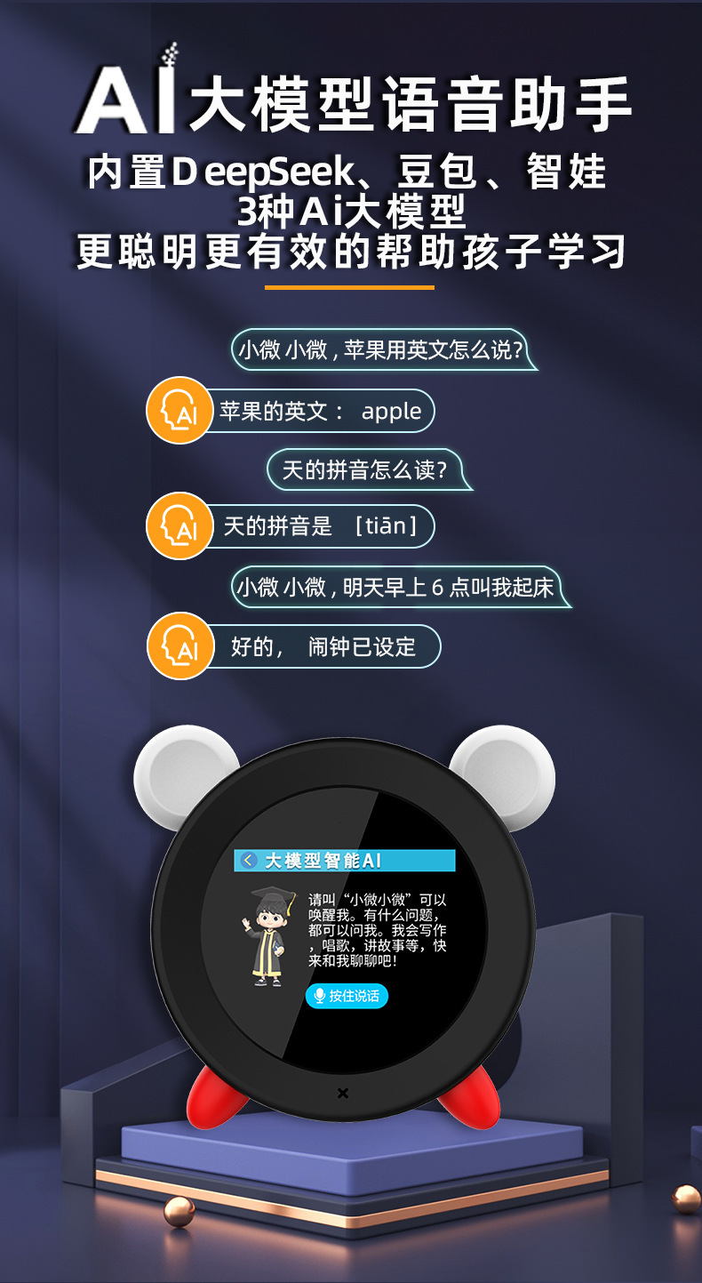 Deepseek Dr. Pen Q5AI 대형 모델 스마트 알람 시계 시간 관리자 스토리텔링 야간 조명 스마트 인터콤