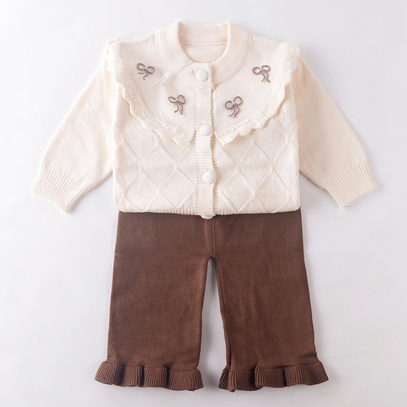 여자 스웨터 투피스 니트 양복 2025 가을 새로운 Bowknot 유아 카디건 코트 스웨터