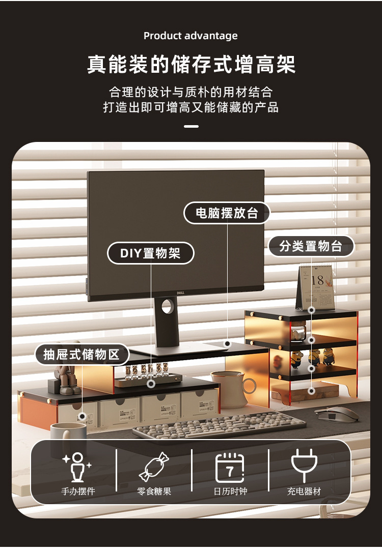 사무실 컴퓨터 높이 조절 책상 수납 선반 데스크탑 개조 유물 데스크탑 컴퓨터 모니터 높이 조절 선반스토어 가기
