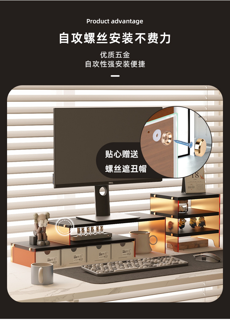 사무실 컴퓨터 높이 조절 책상 수납 선반 데스크탑 개조 유물 데스크탑 컴퓨터 모니터 높이 조절 선반