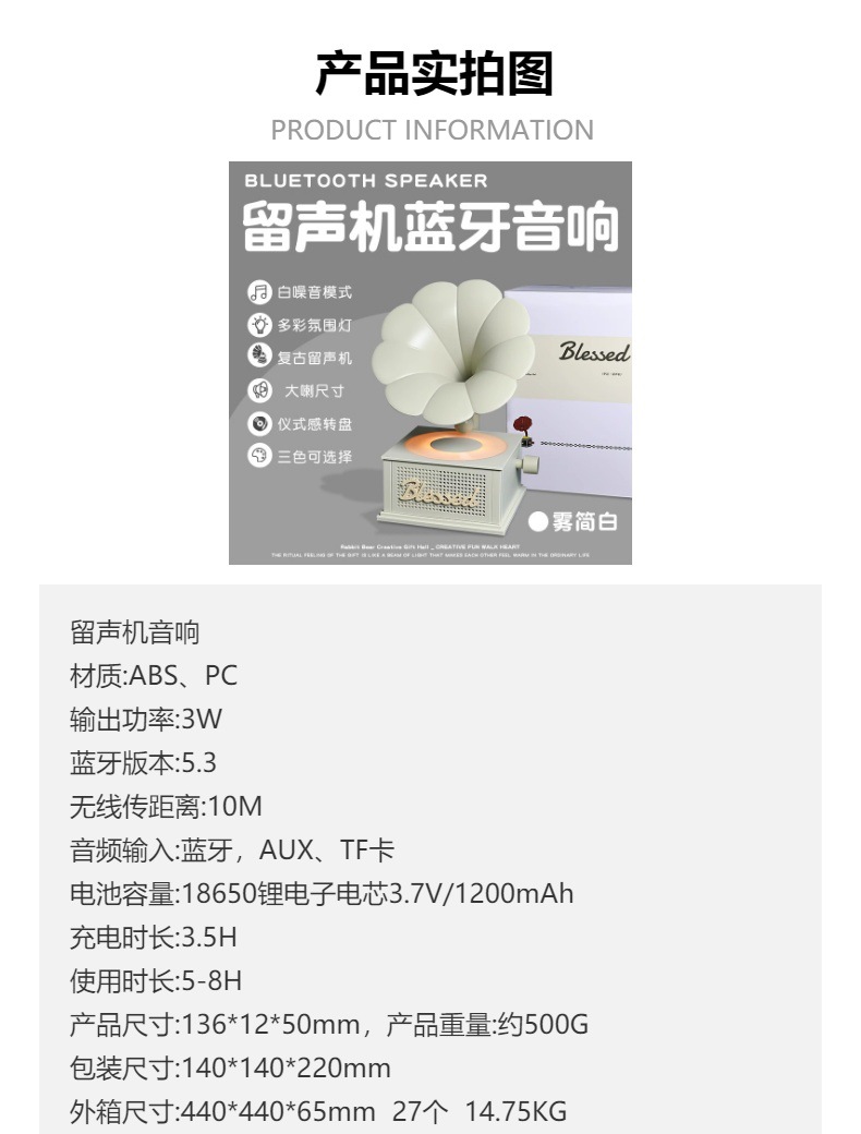 CYKE 창의적인 블루투스 스피커 선물 장식품 행운의 축음기 오디오 분위기 조명 레트로 레코드 소형 스피커스토어 가기