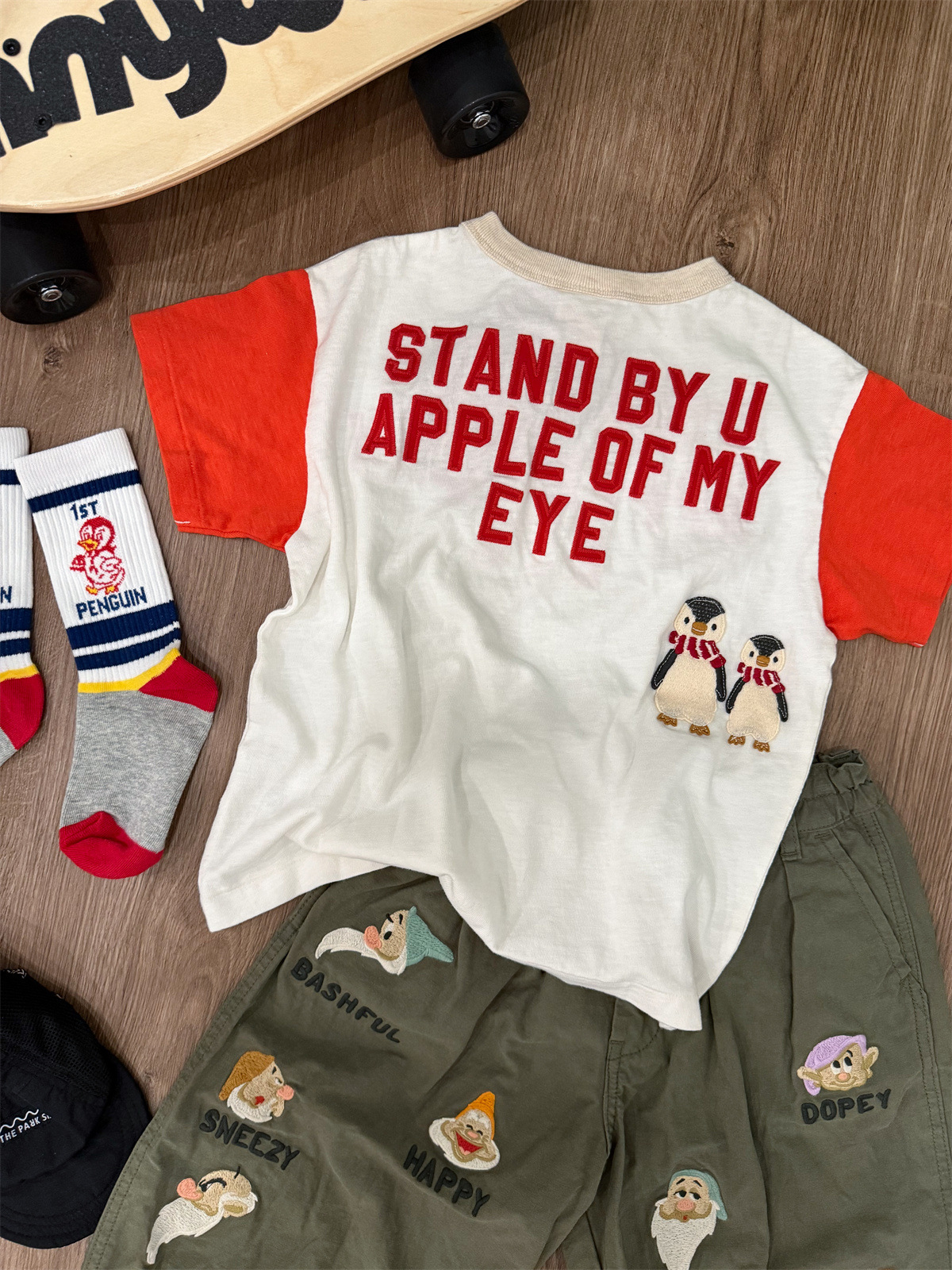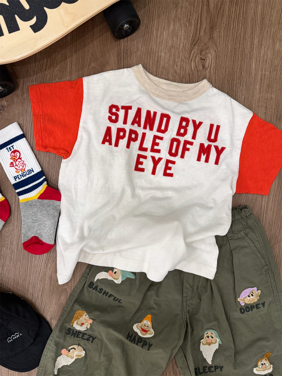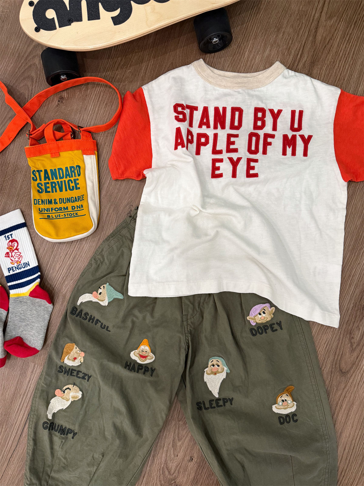 고급 일본 아동복 2025 여름 소년 소녀 알파벳 패치 수 놓은 대나무 면 반팔 티셔츠 아동용 면 탑스토어 가기
