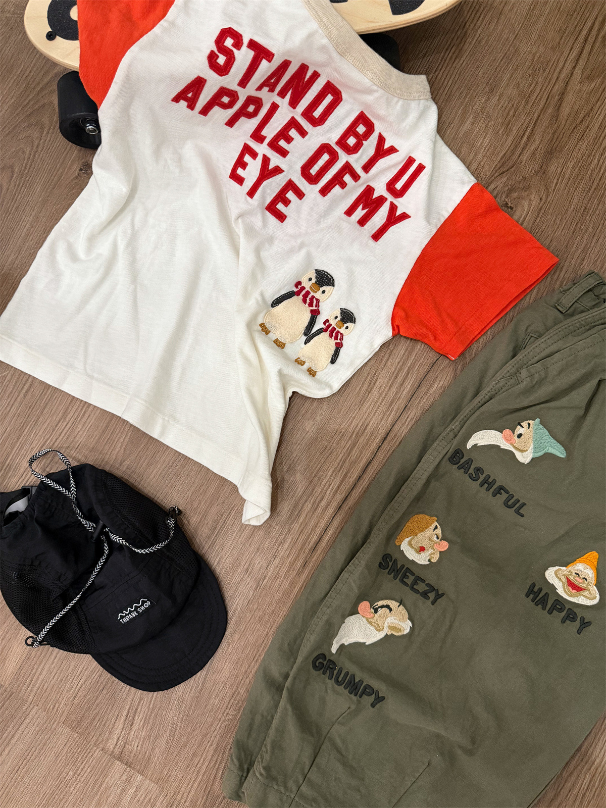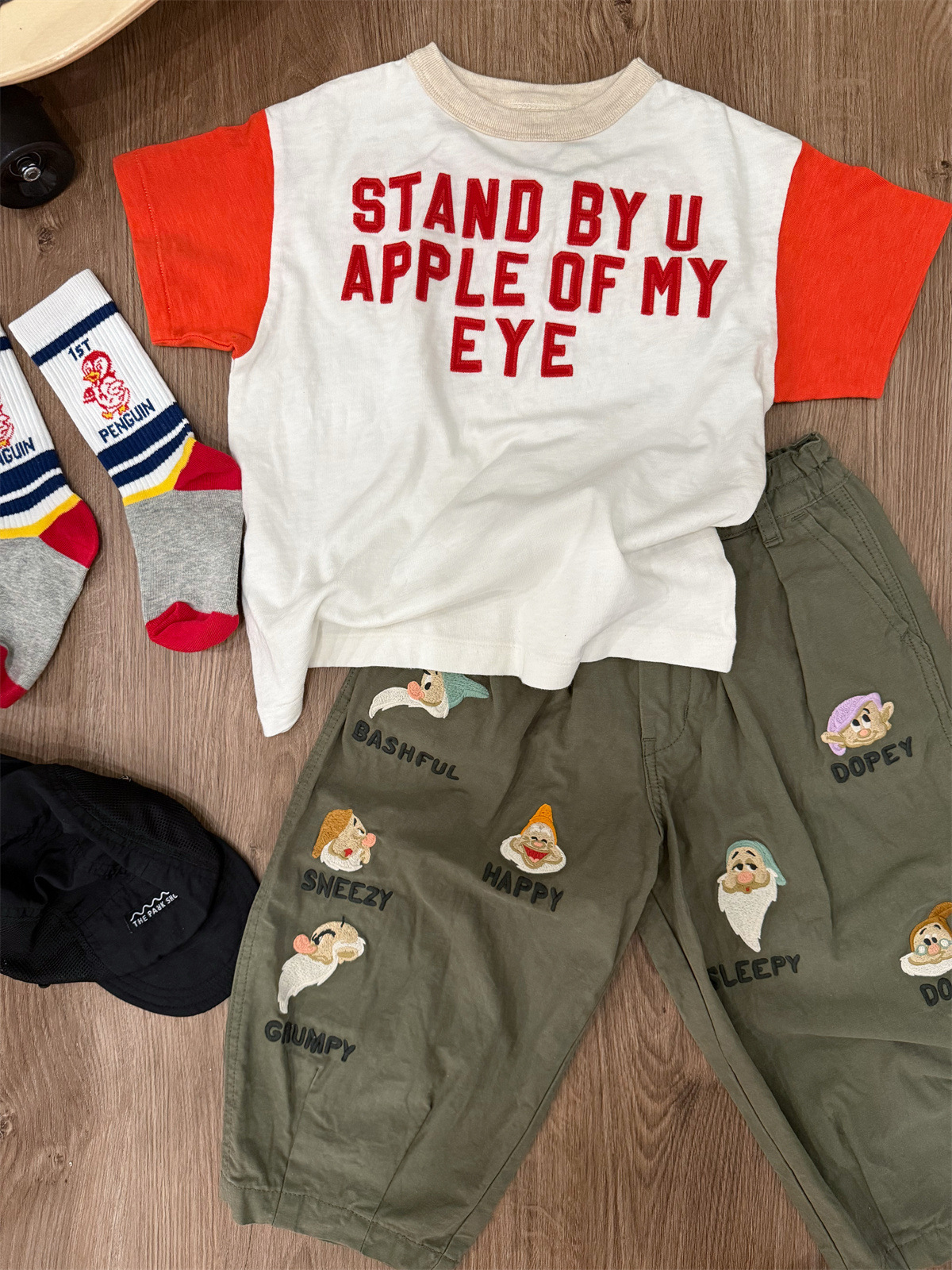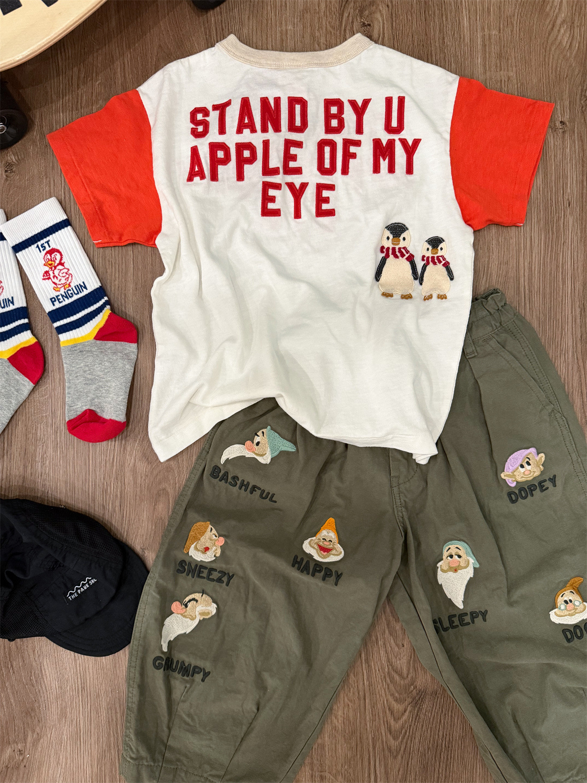 고급 일본 아동복 2025 여름 소년 소녀 알파벳 패치 수 놓은 대나무 면 반팔 티셔츠 아동용 면 탑스토어 가기