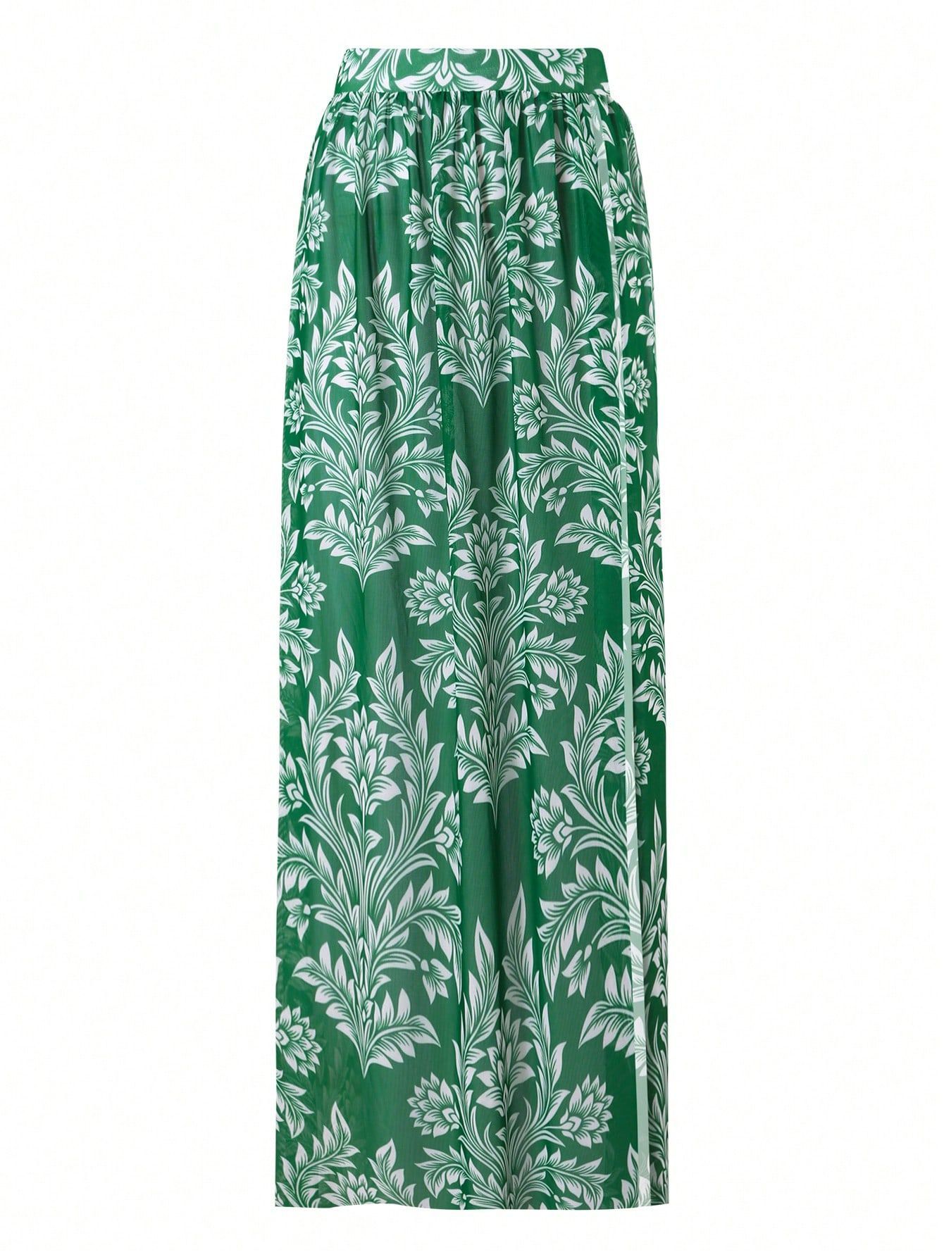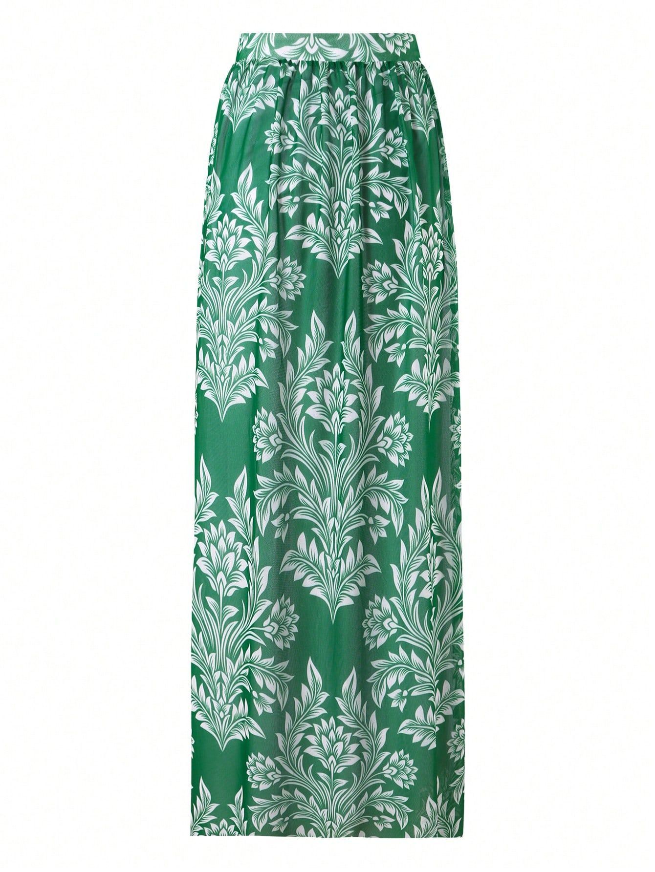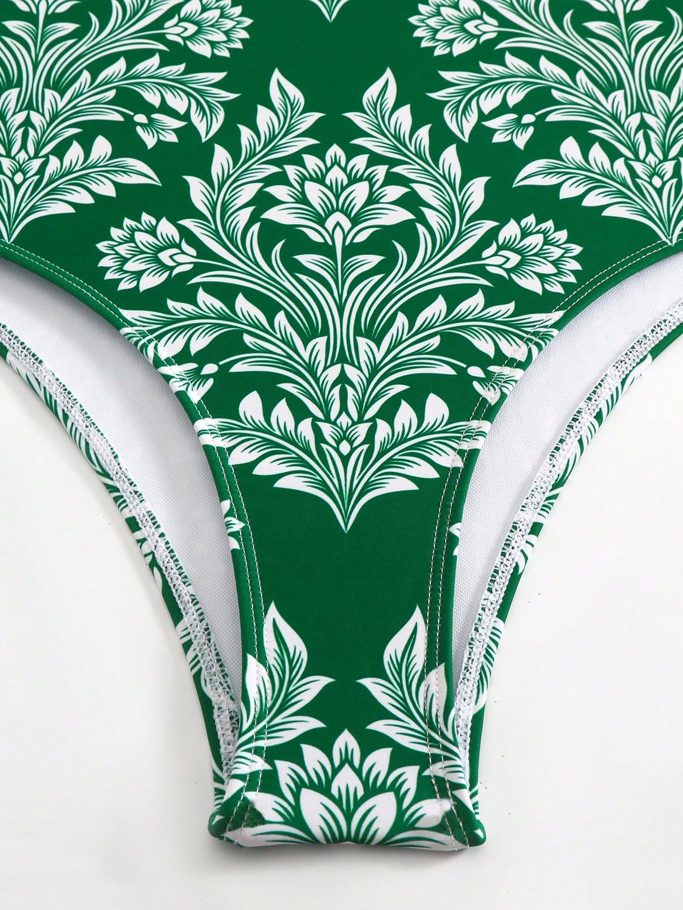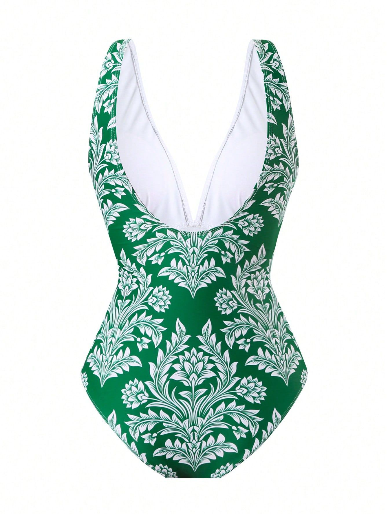 유럽과 미국의 섹시한 비키니 원피스 수영복 쉬폰 스커트 더블 숄더 브이넥 수영복 비치 보수적인 배 커버 수영복 세트