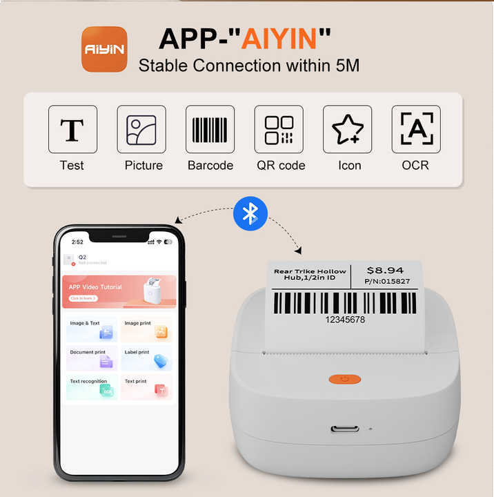 휴대 전화에 연결할 수 있는 전자 상거래 물류 Aiyin B23 프린터를 갖춘 국경 간 휴대용 미니 열 라벨 프린터스토어 가기