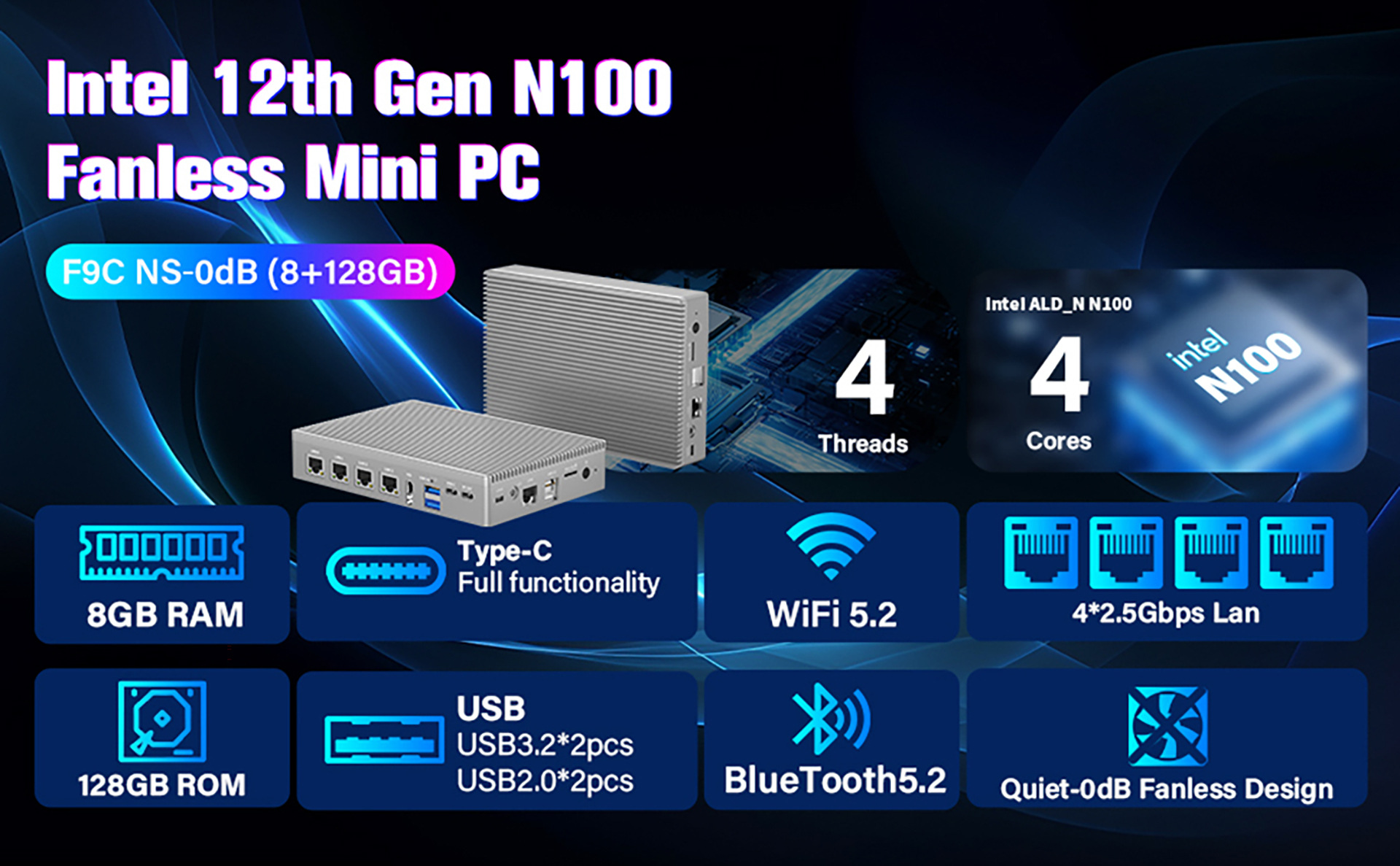 7인치 4개 네트워크 포트 16G 12세대 N100 소형 컴퓨터 미니PC 산업용 컴퓨터 미니 무스크린 컴퓨터스토어 가기