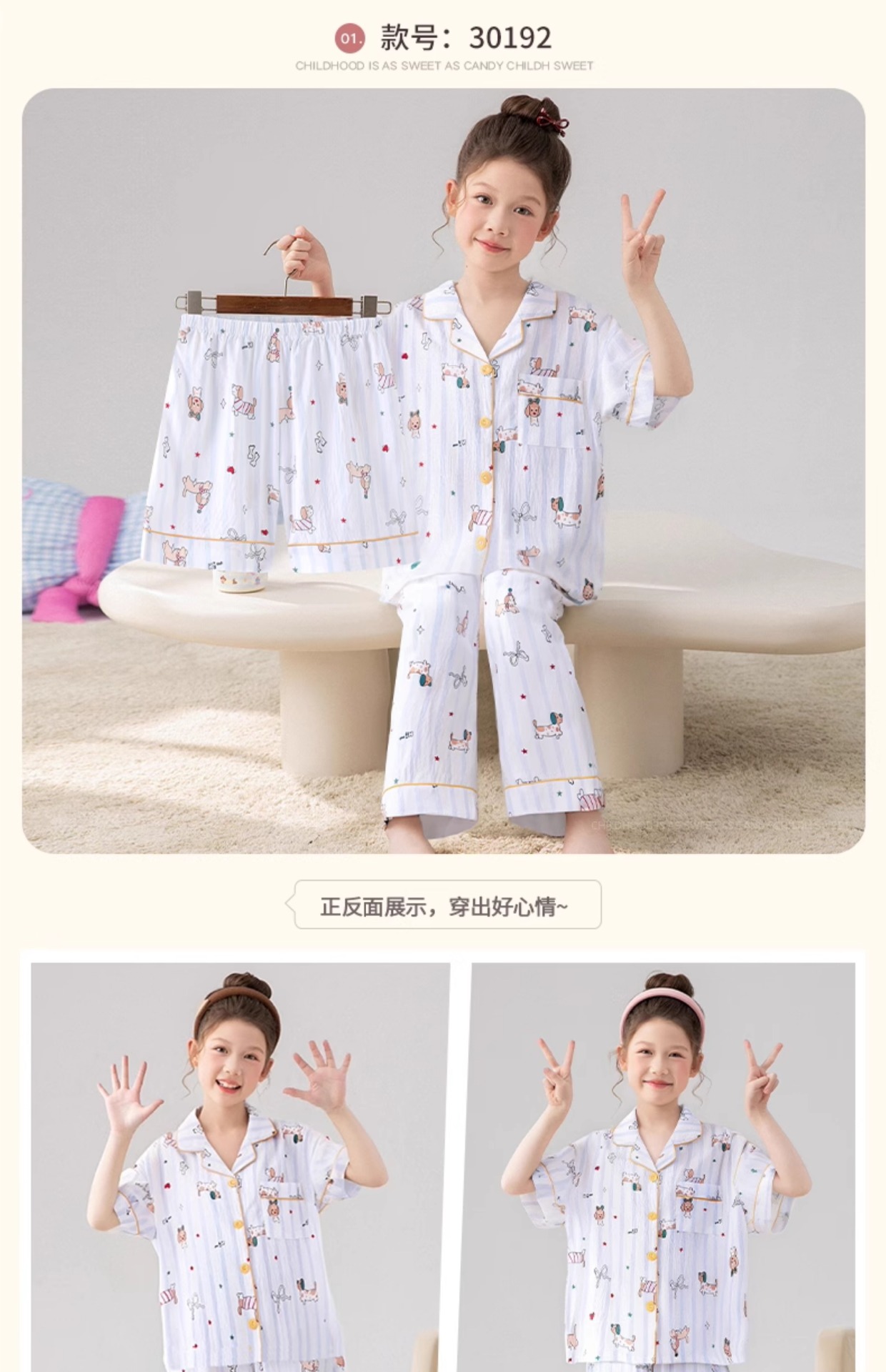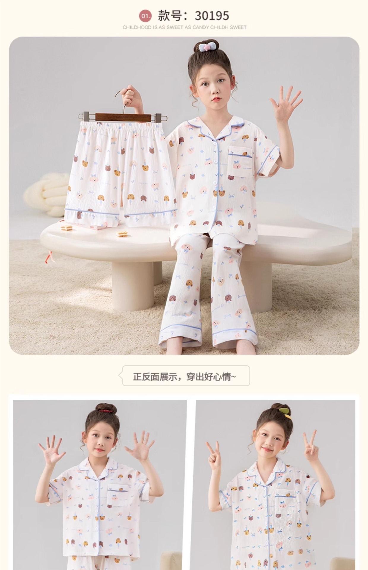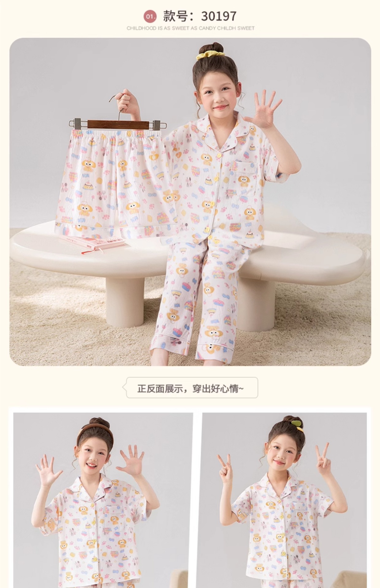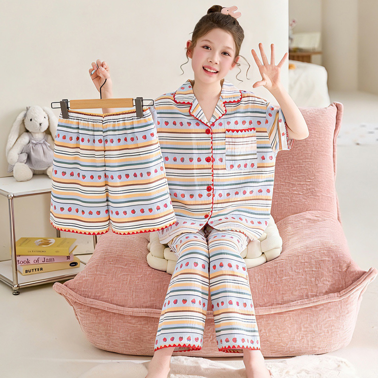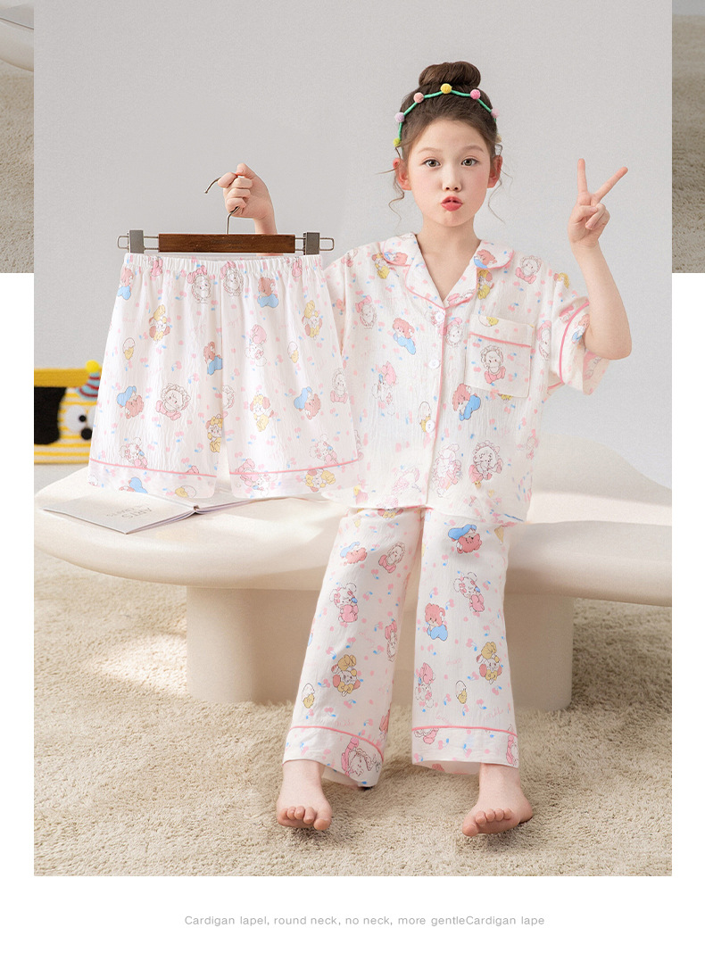 아동 잠옷 여름 구름면 얇은 반팔 여아 3 피스 세트 중학생 여름 어린 소녀 가정복 6