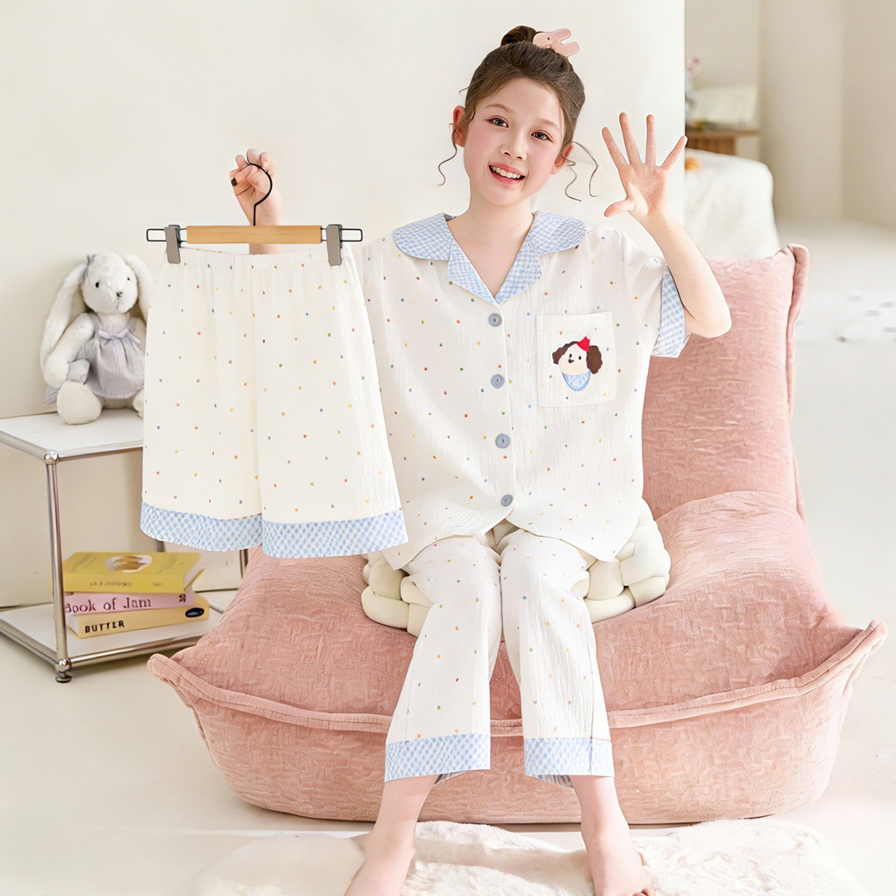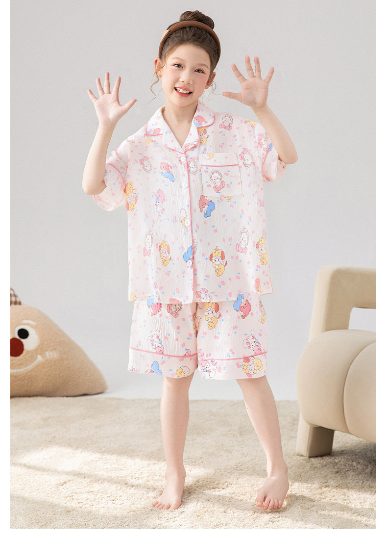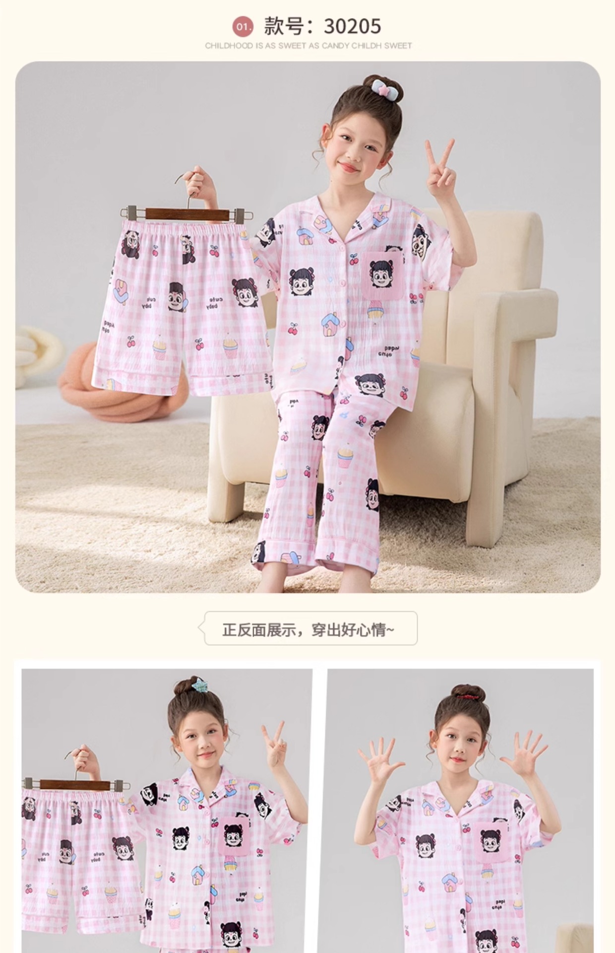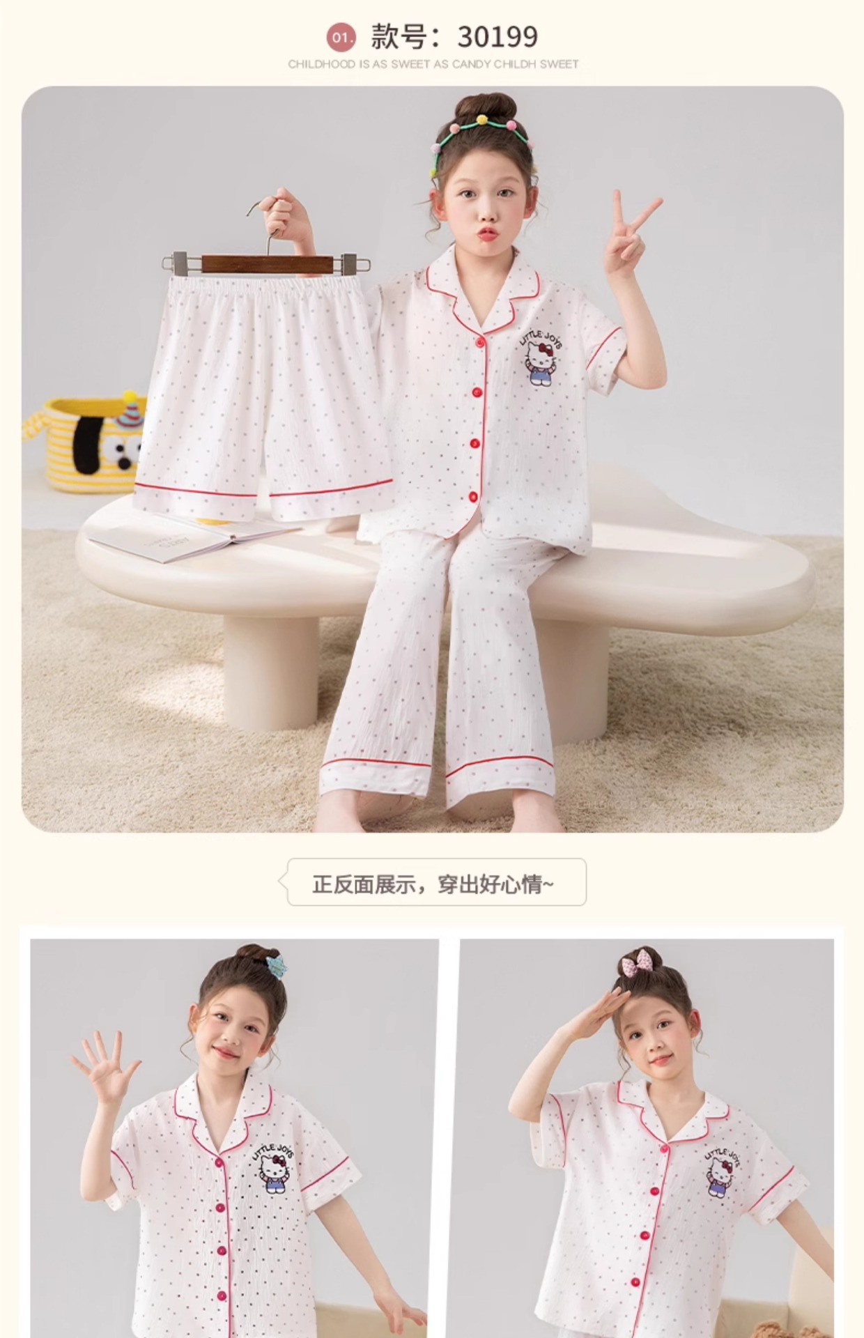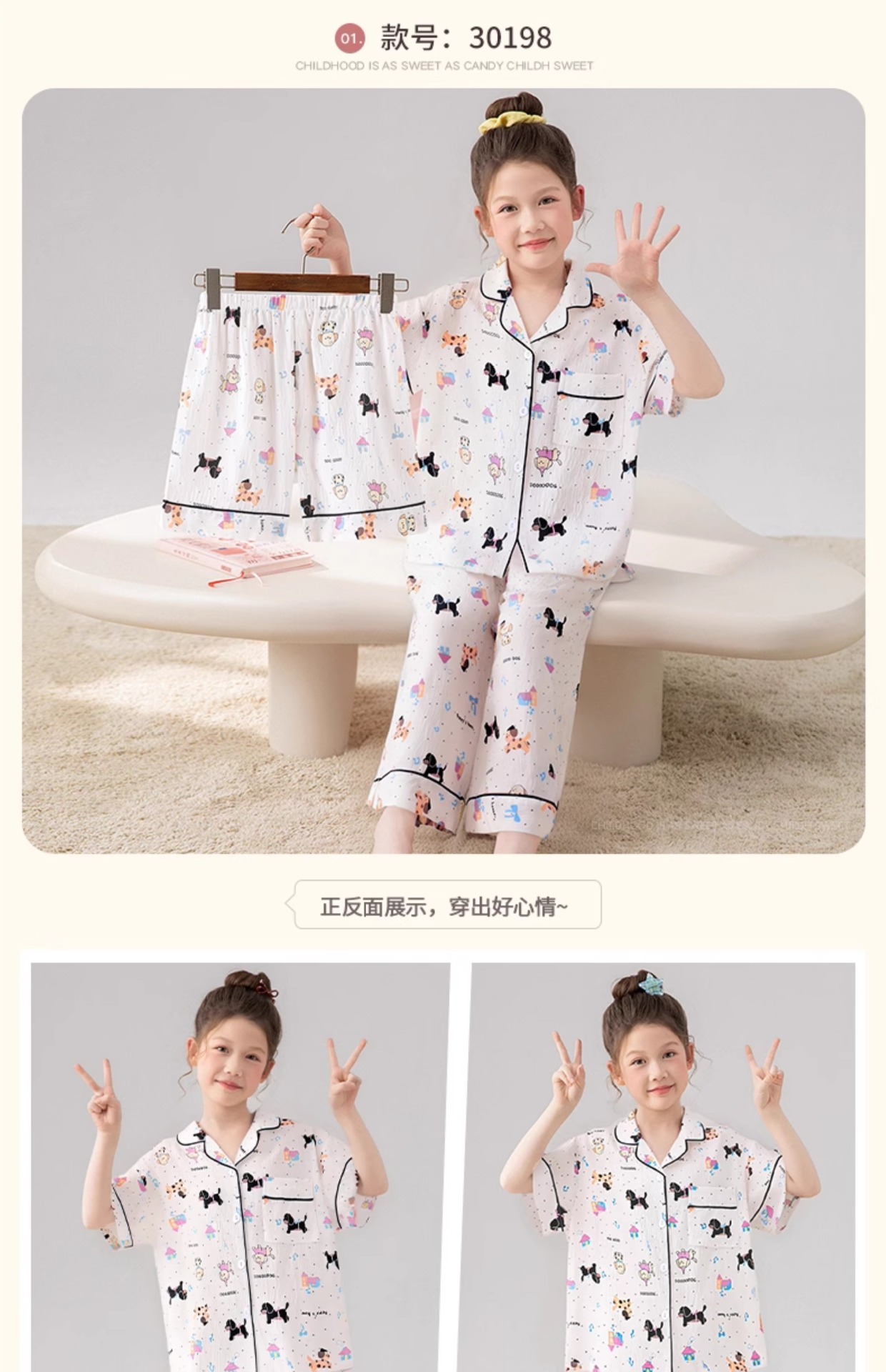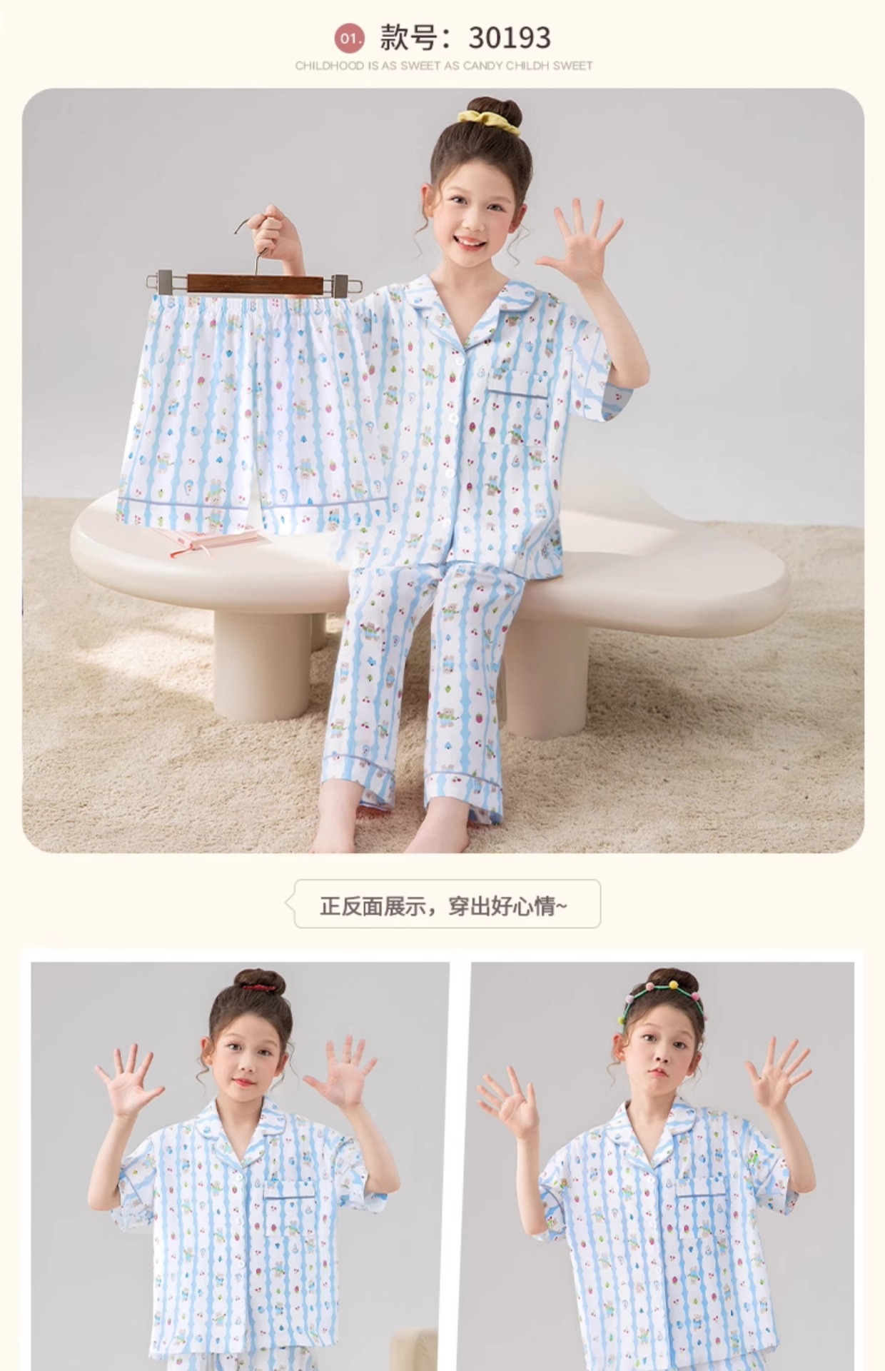 아동 잠옷 여름 구름면 얇은 반팔 여아 3 피스 세트 중학생 여름 어린 소녀 가정복 6
