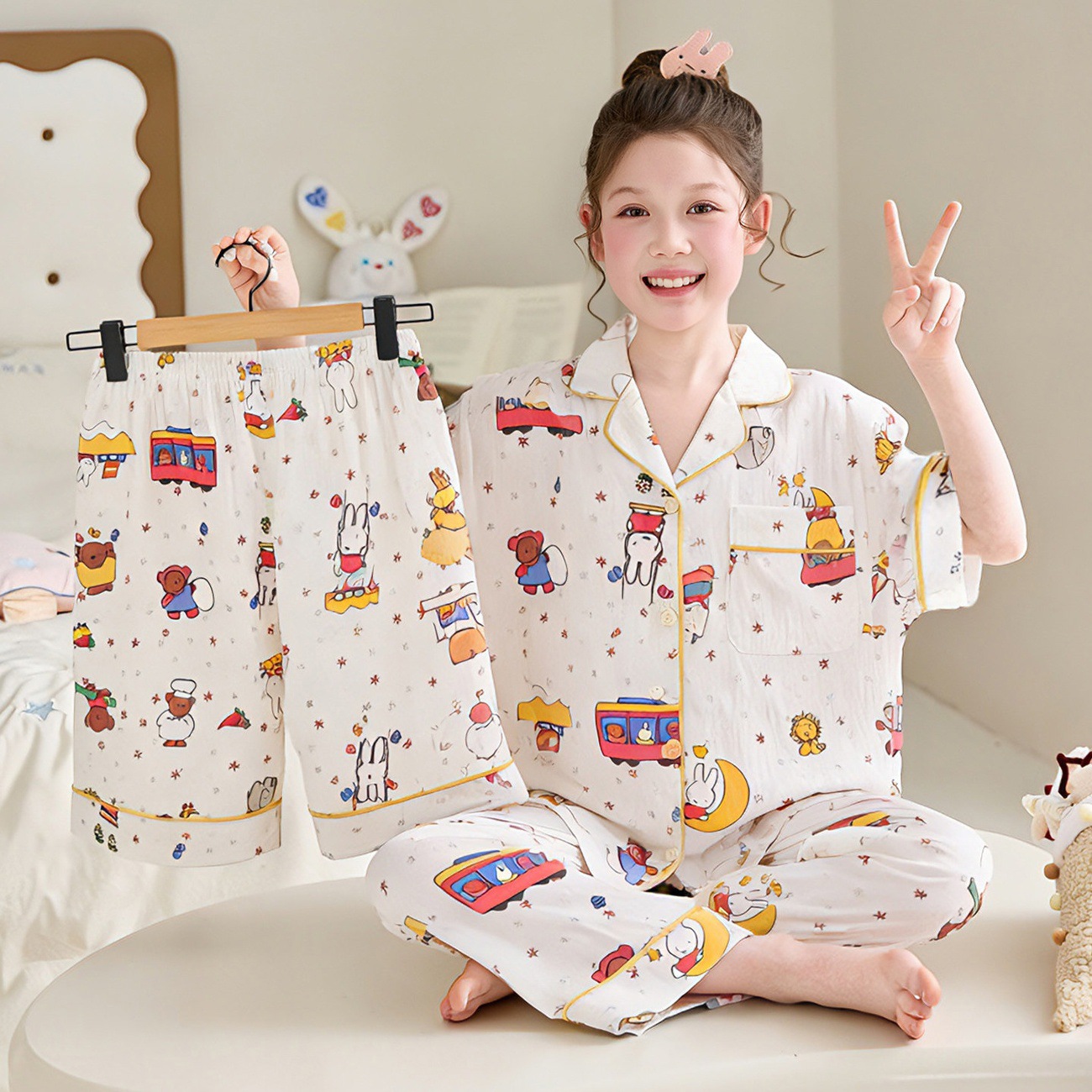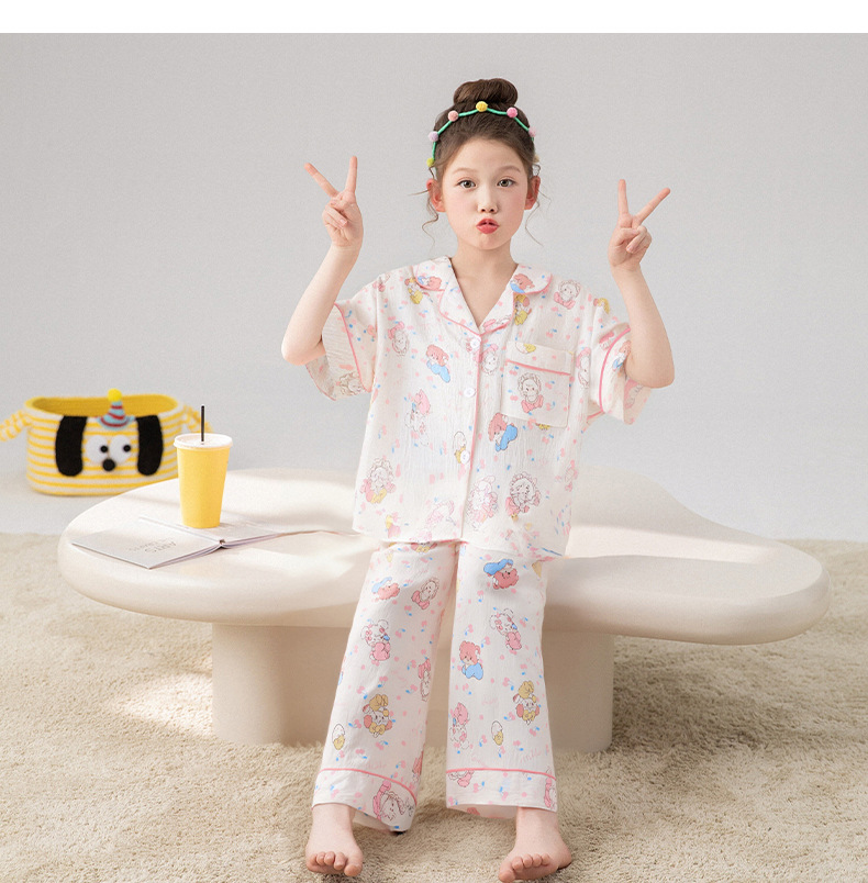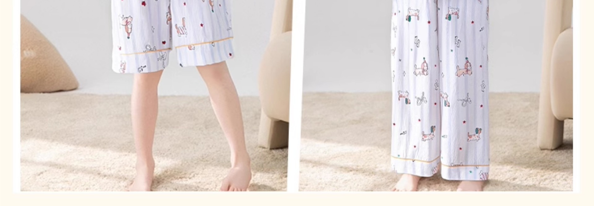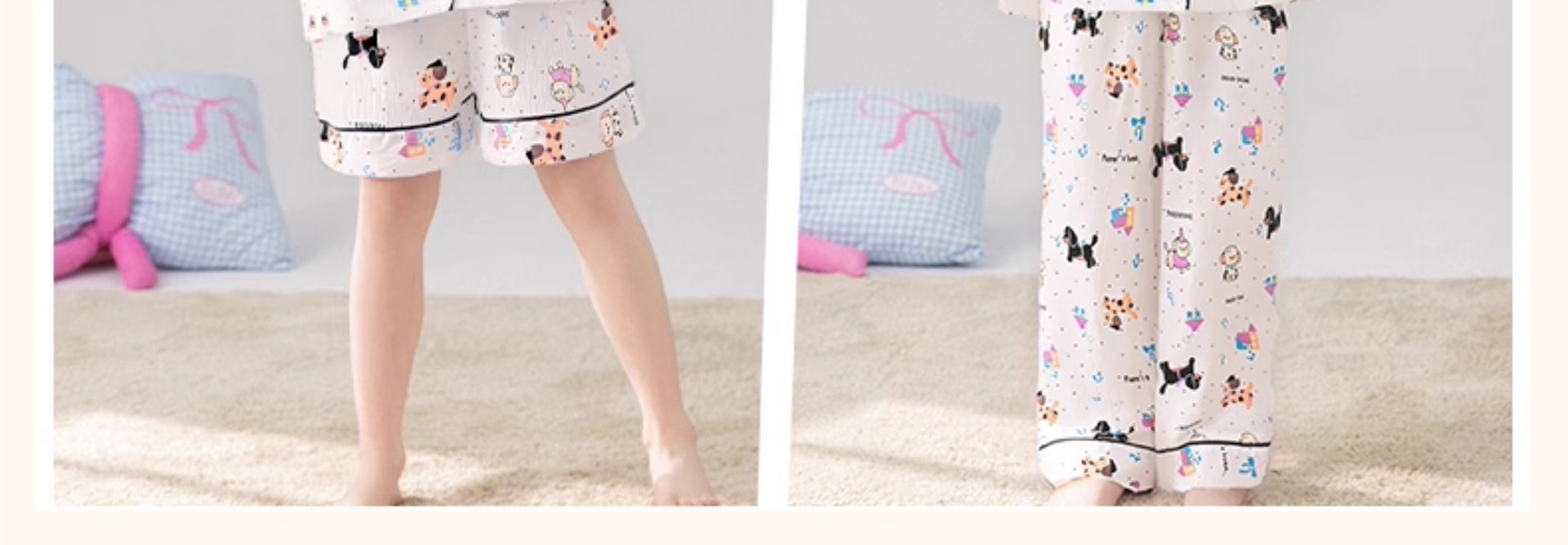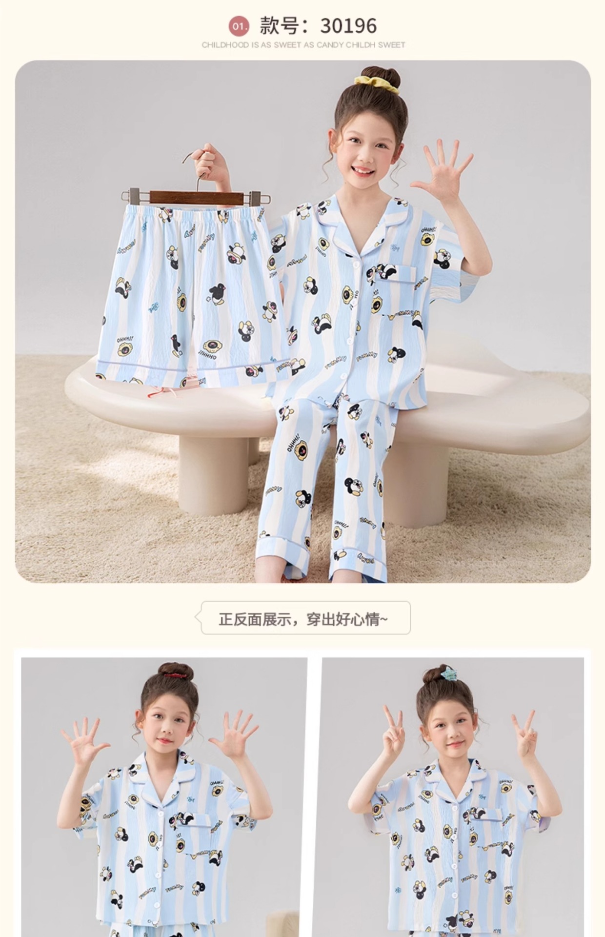아동 잠옷 여름 구름면 얇은 반팔 여아 3 피스 세트 중학생 여름 어린 소녀 가정복 6