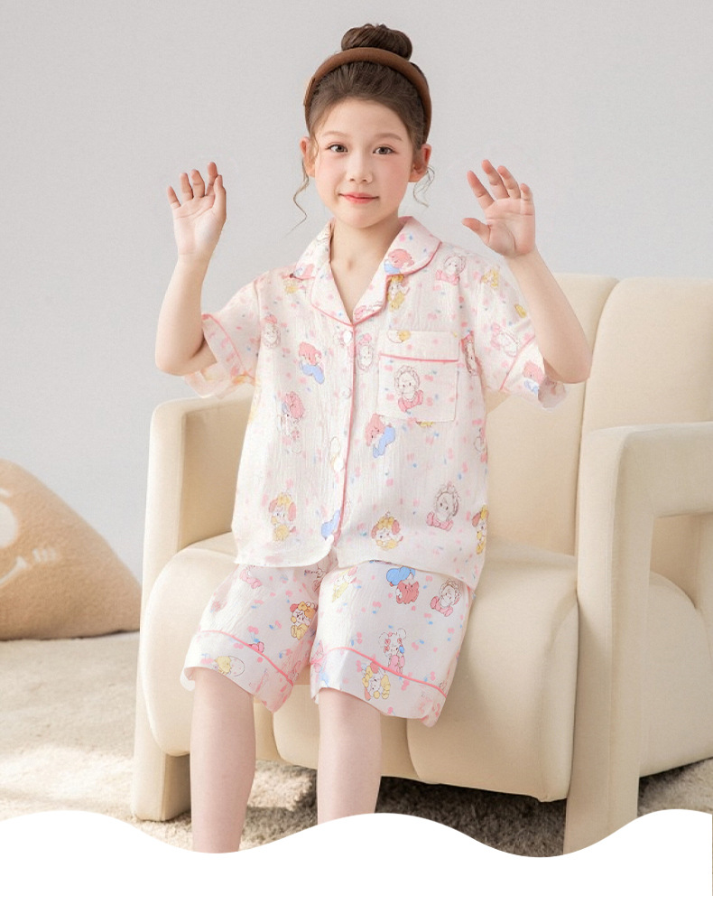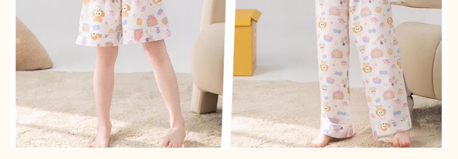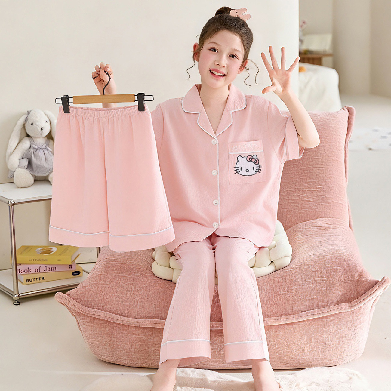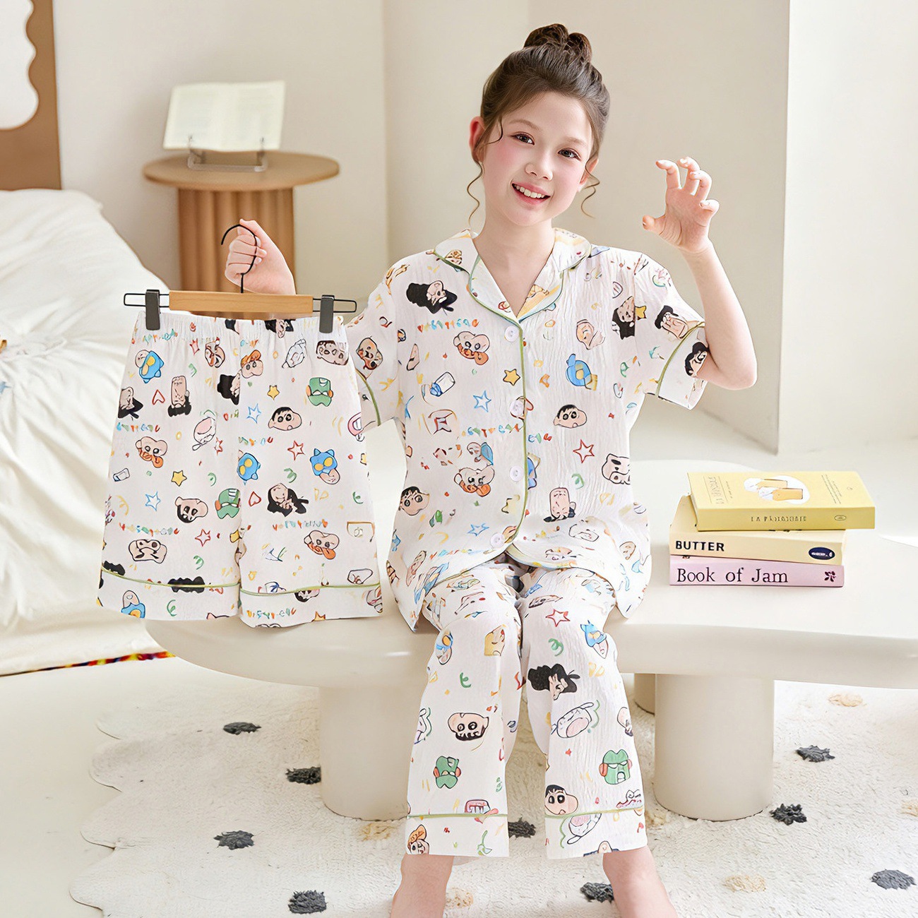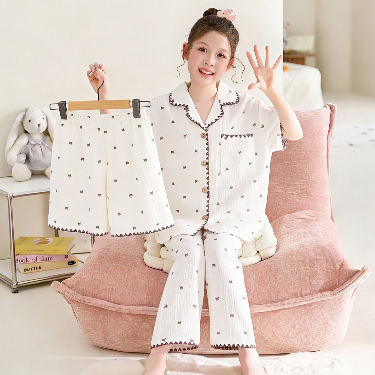 아동 잠옷 여름 구름면 얇은 반팔 여아 3 피스 세트 중학생 여름 어린 소녀 가정복 6