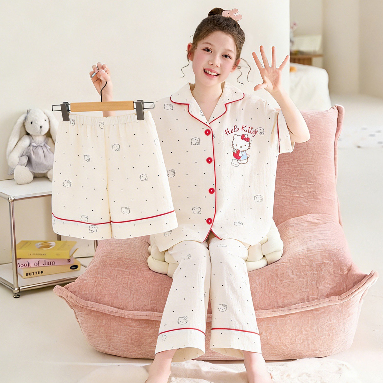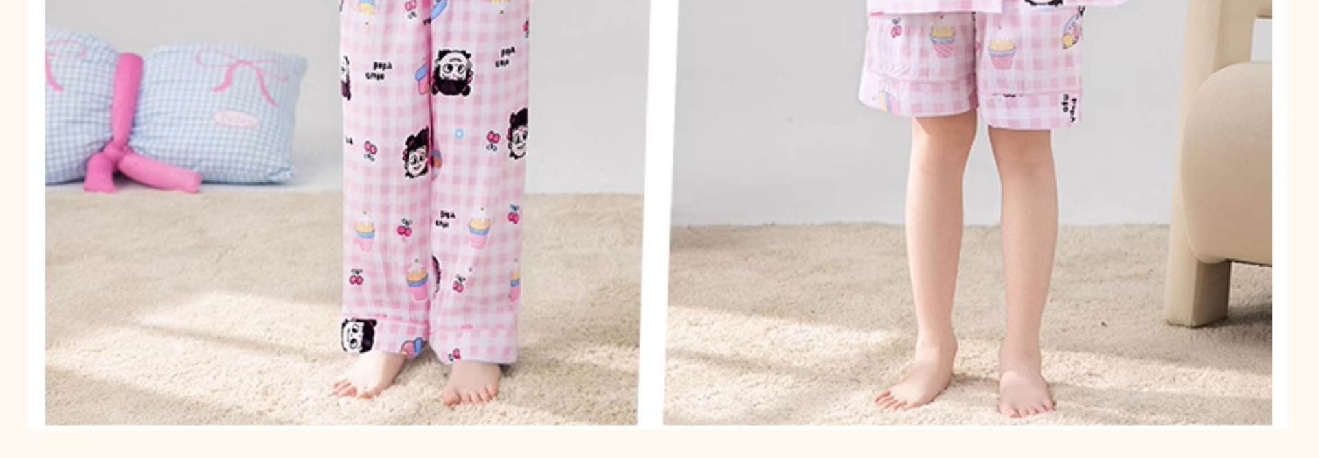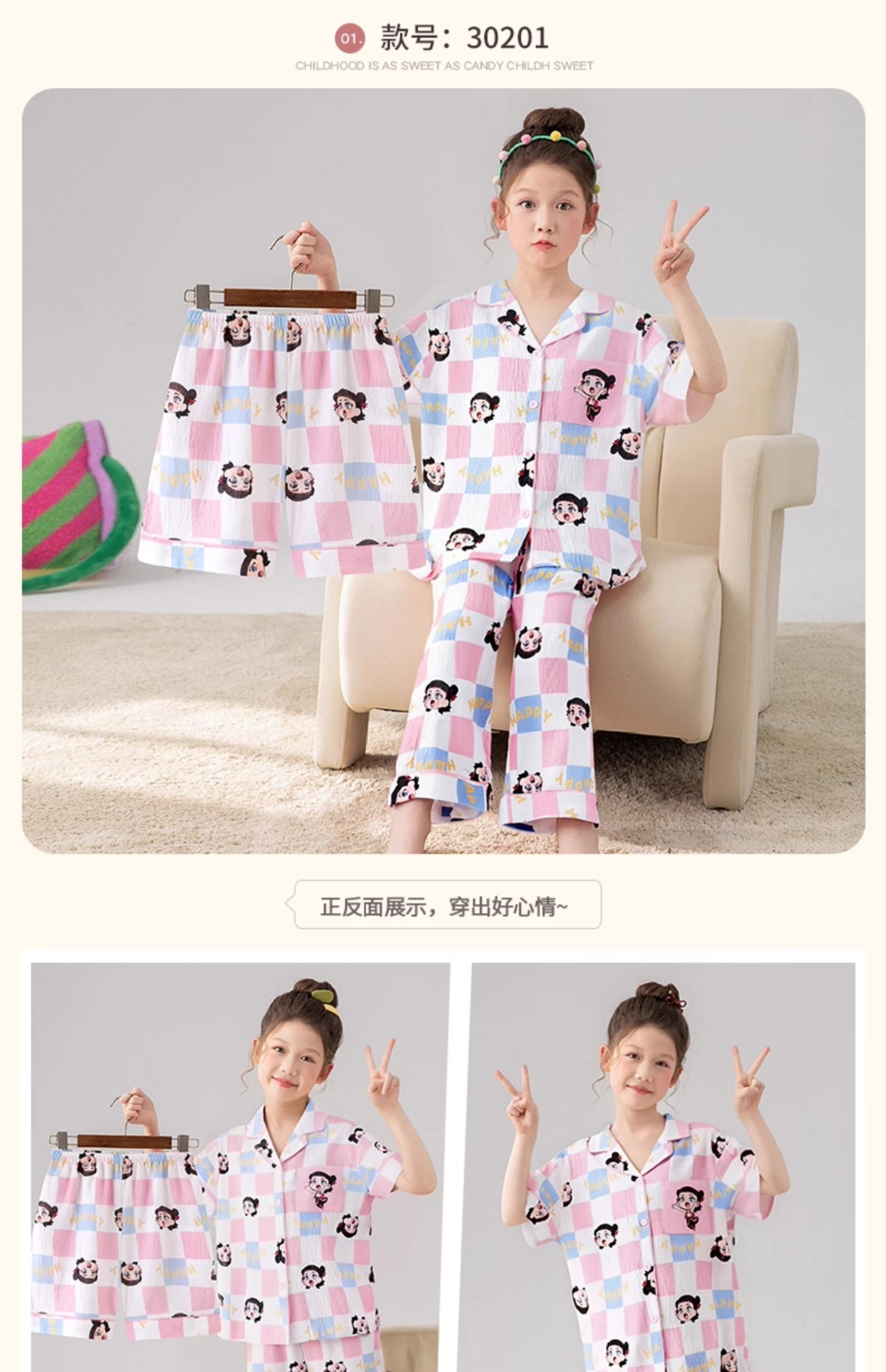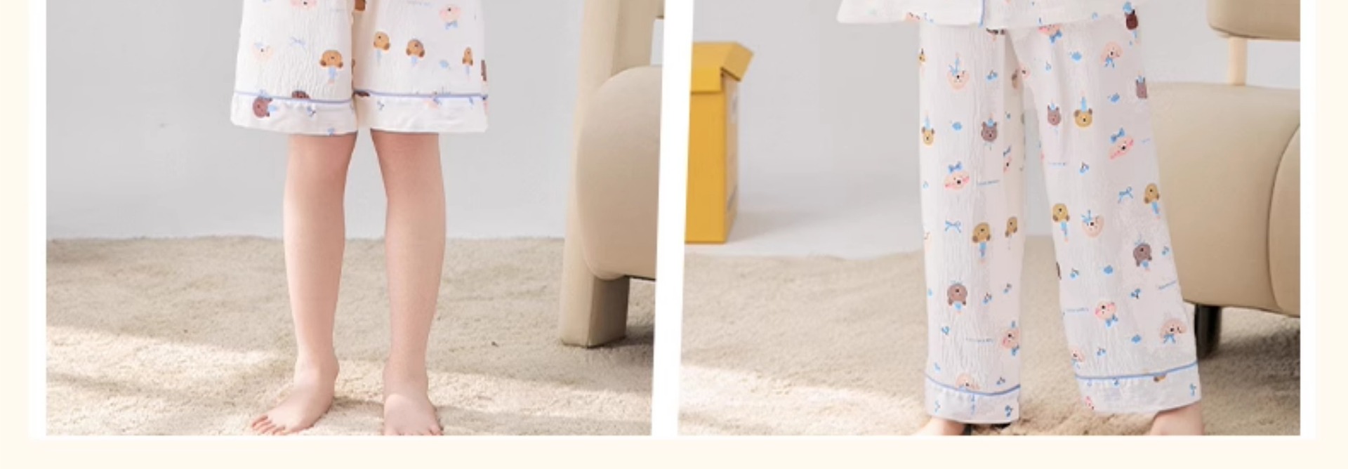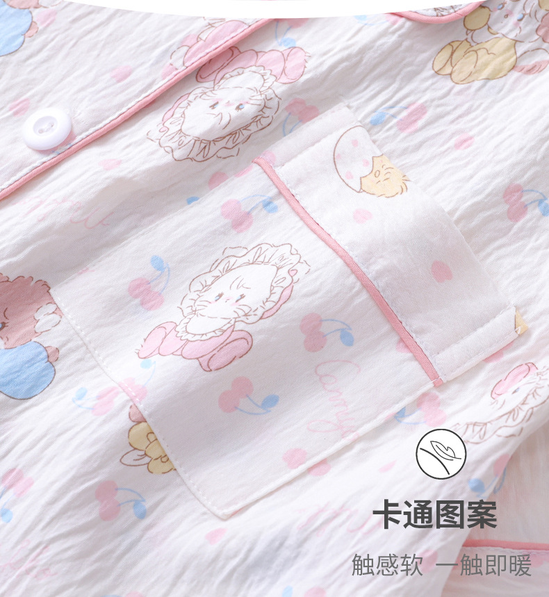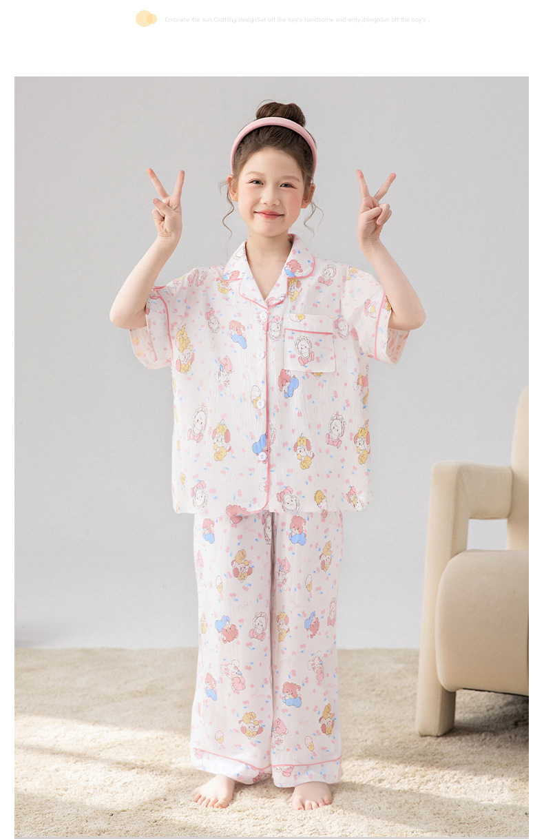 아동 잠옷 여름 구름면 얇은 반팔 여아 3 피스 세트 중학생 여름 어린 소녀 가정복 6