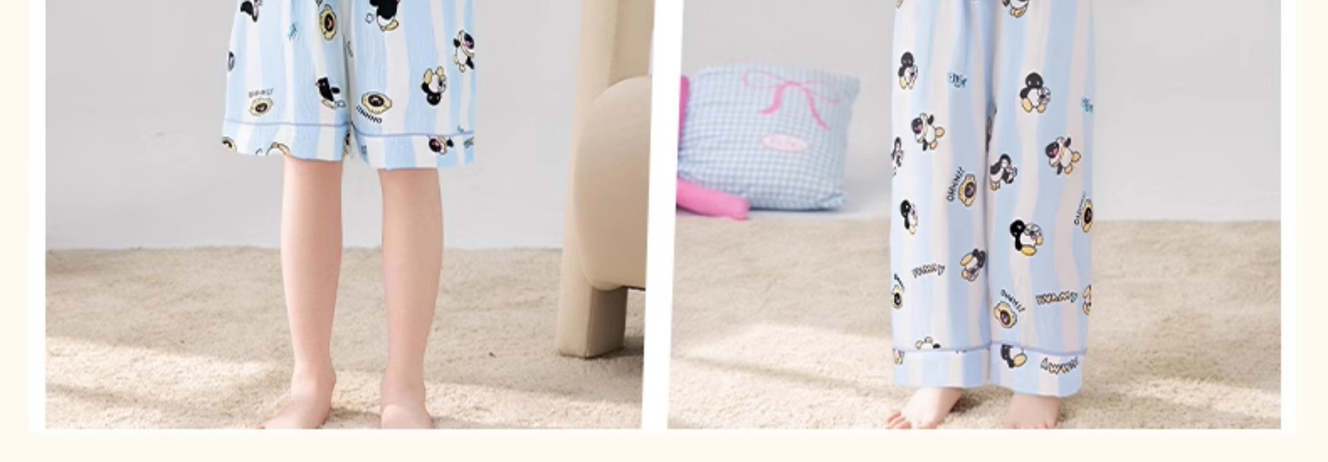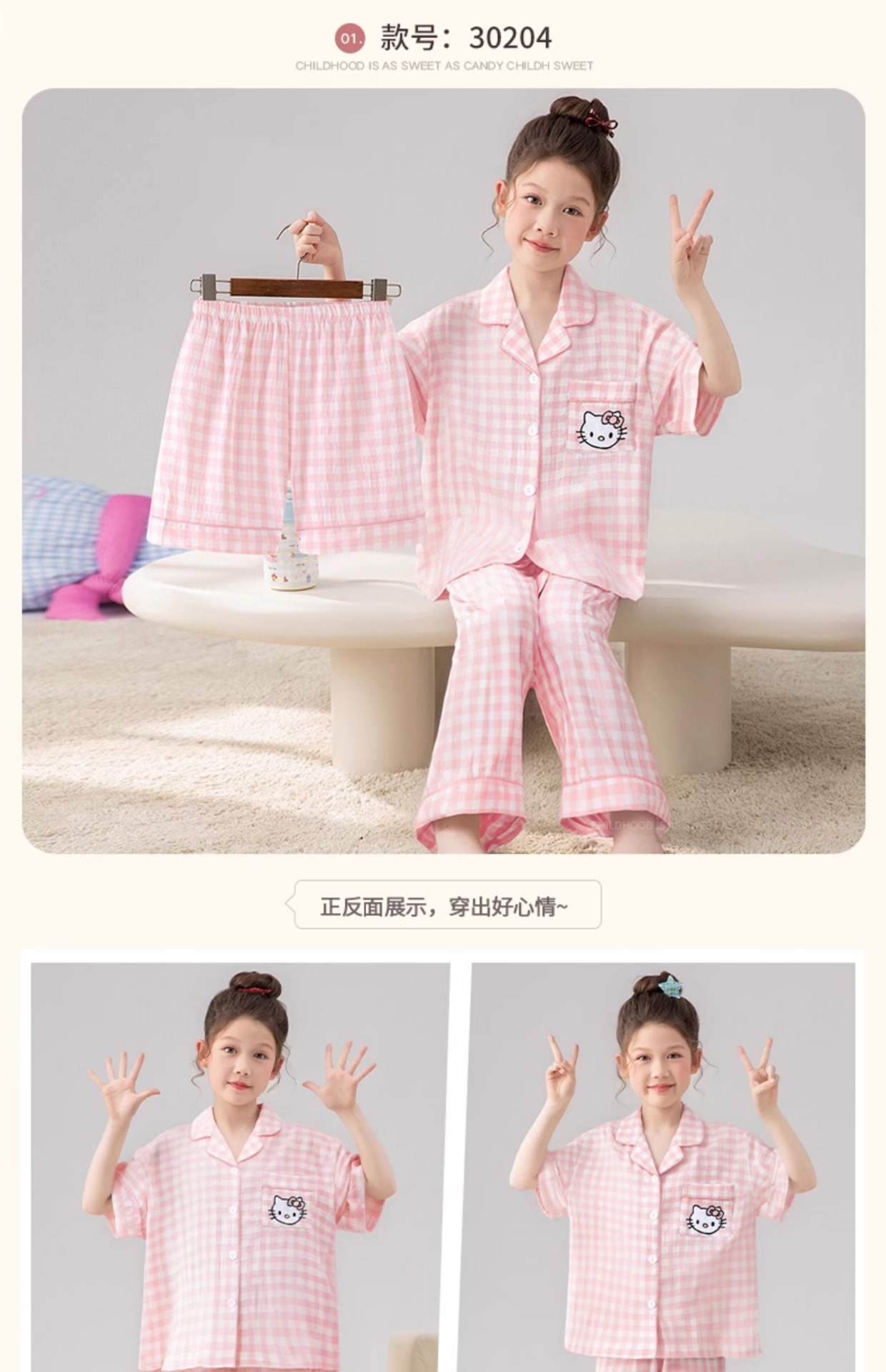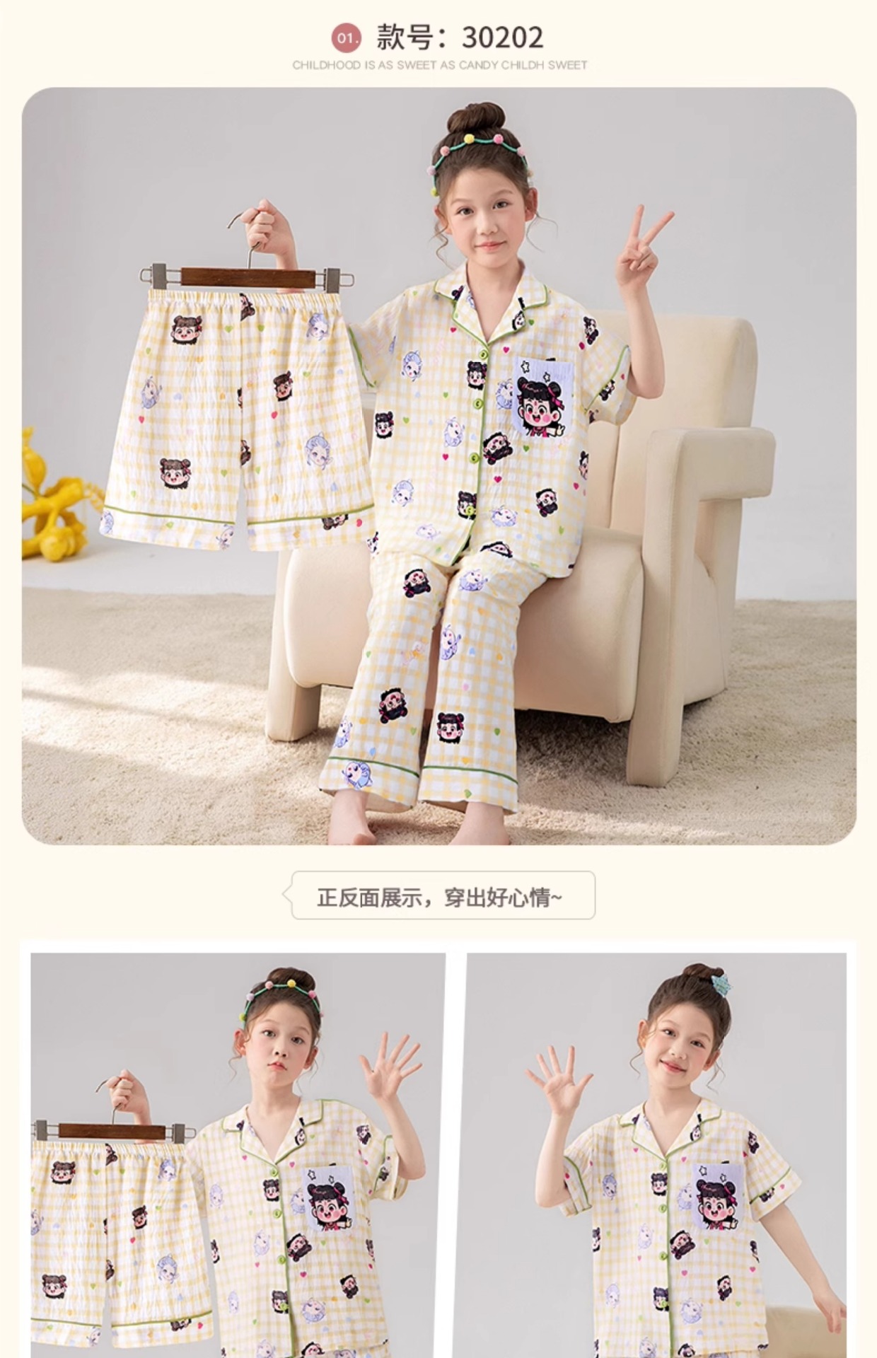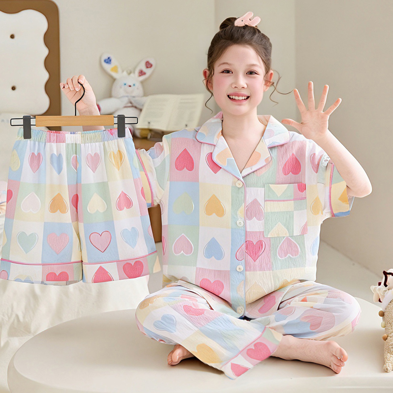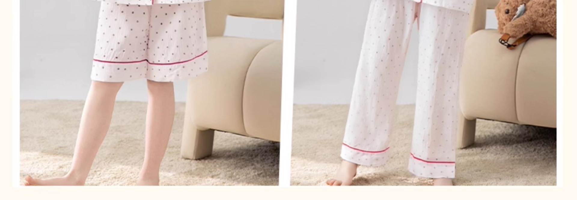 아동 잠옷 여름 구름면 얇은 반팔 여아 3 피스 세트 중학생 여름 어린 소녀 가정복 6
