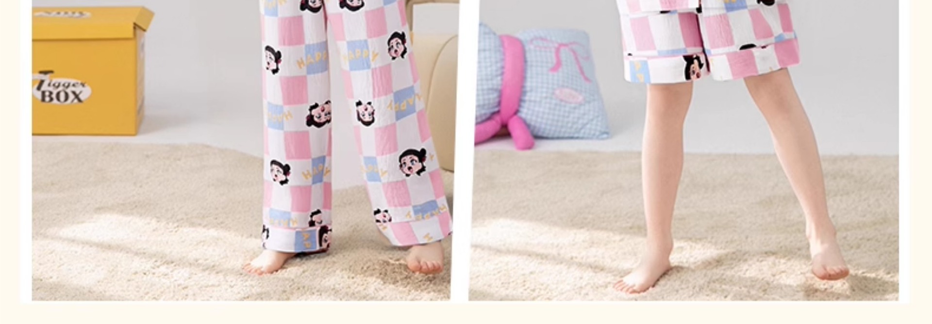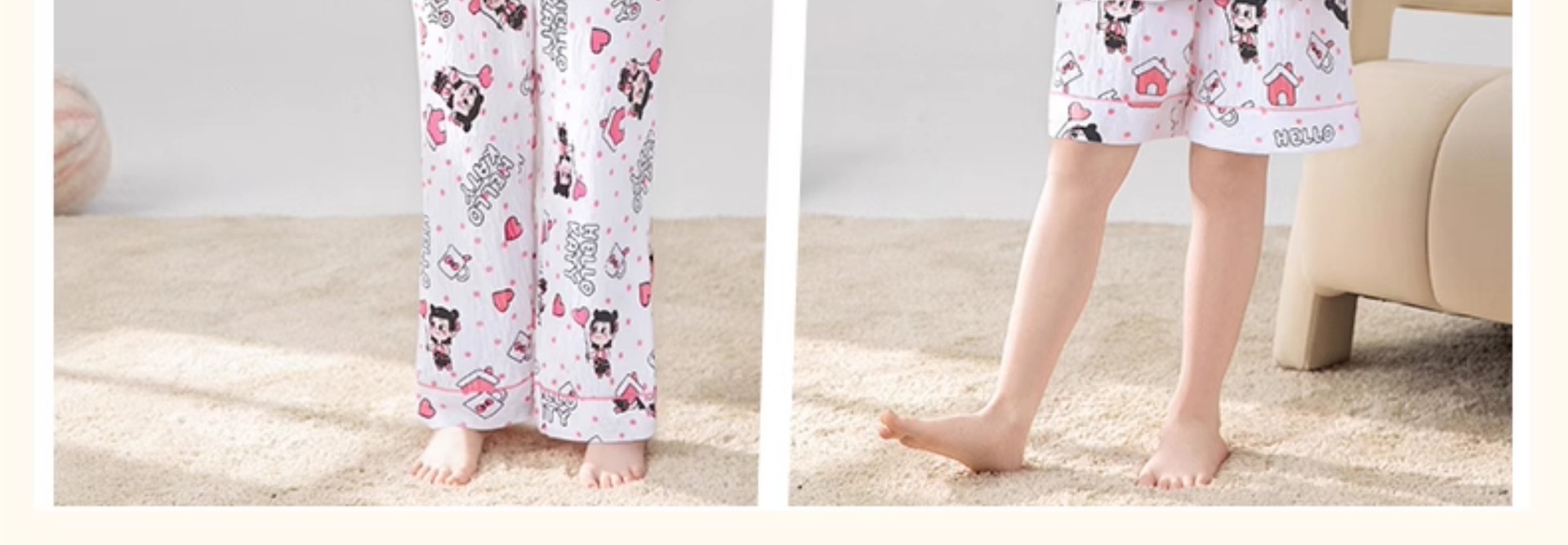 아동 잠옷 여름 구름면 얇은 반팔 여아 3 피스 세트 중학생 여름 어린 소녀 가정복 6스토어 가기