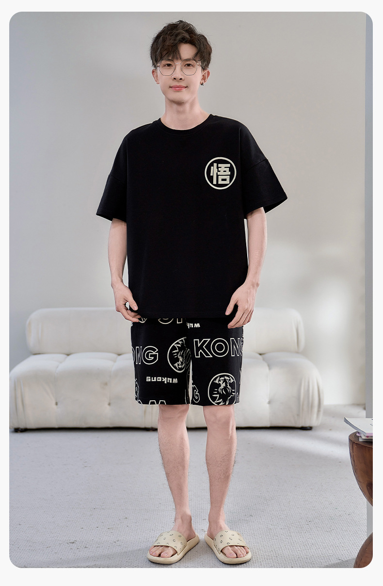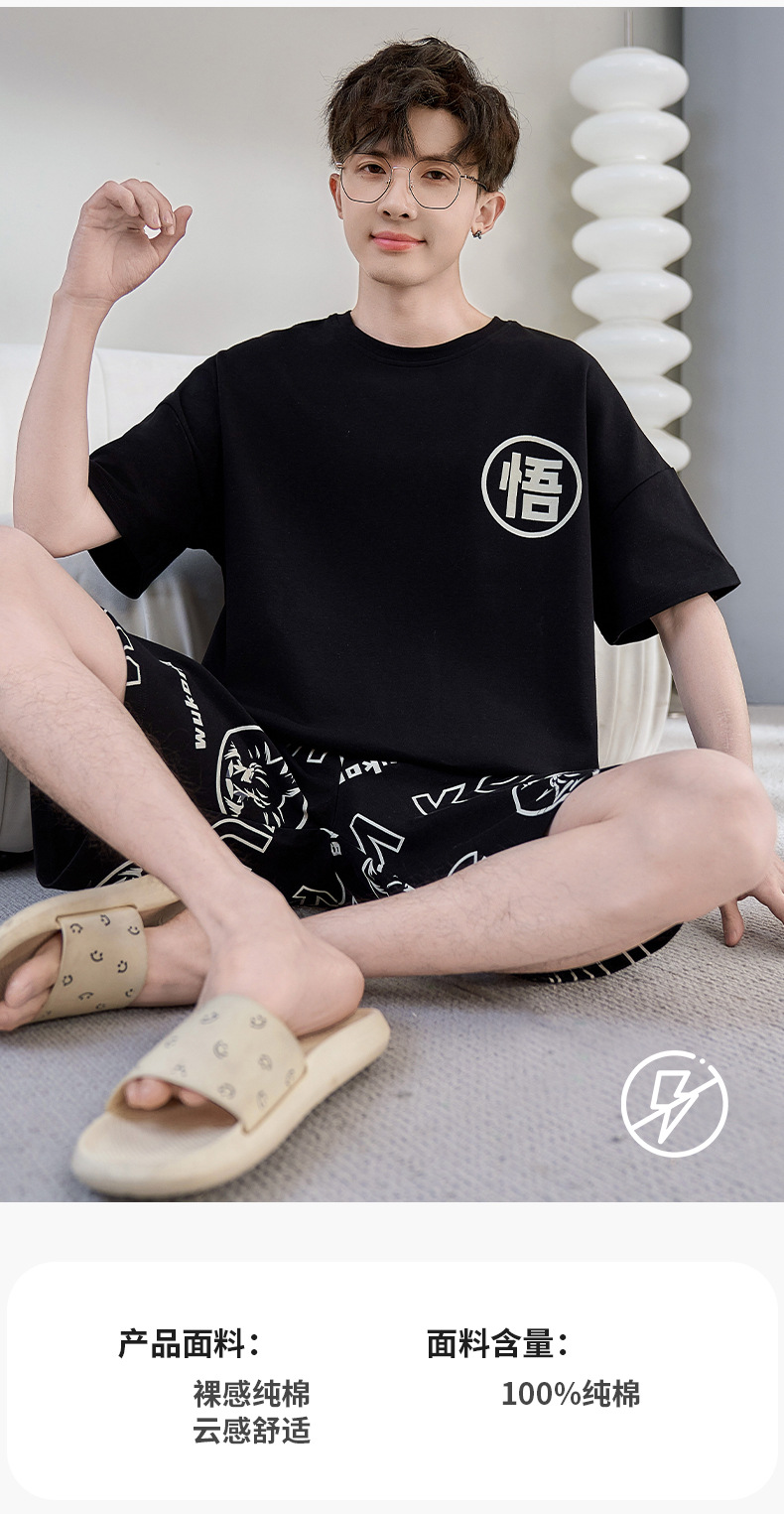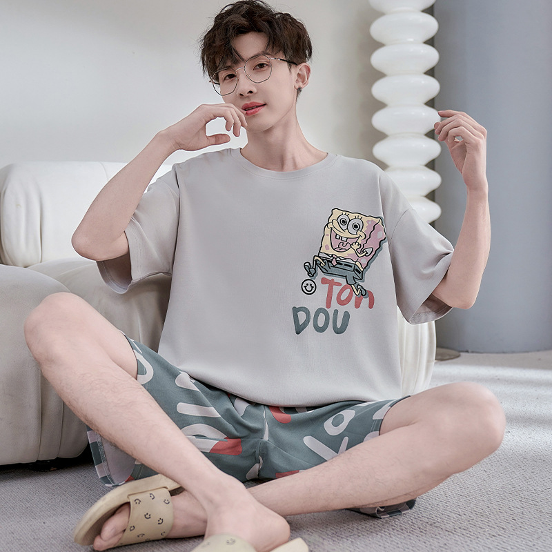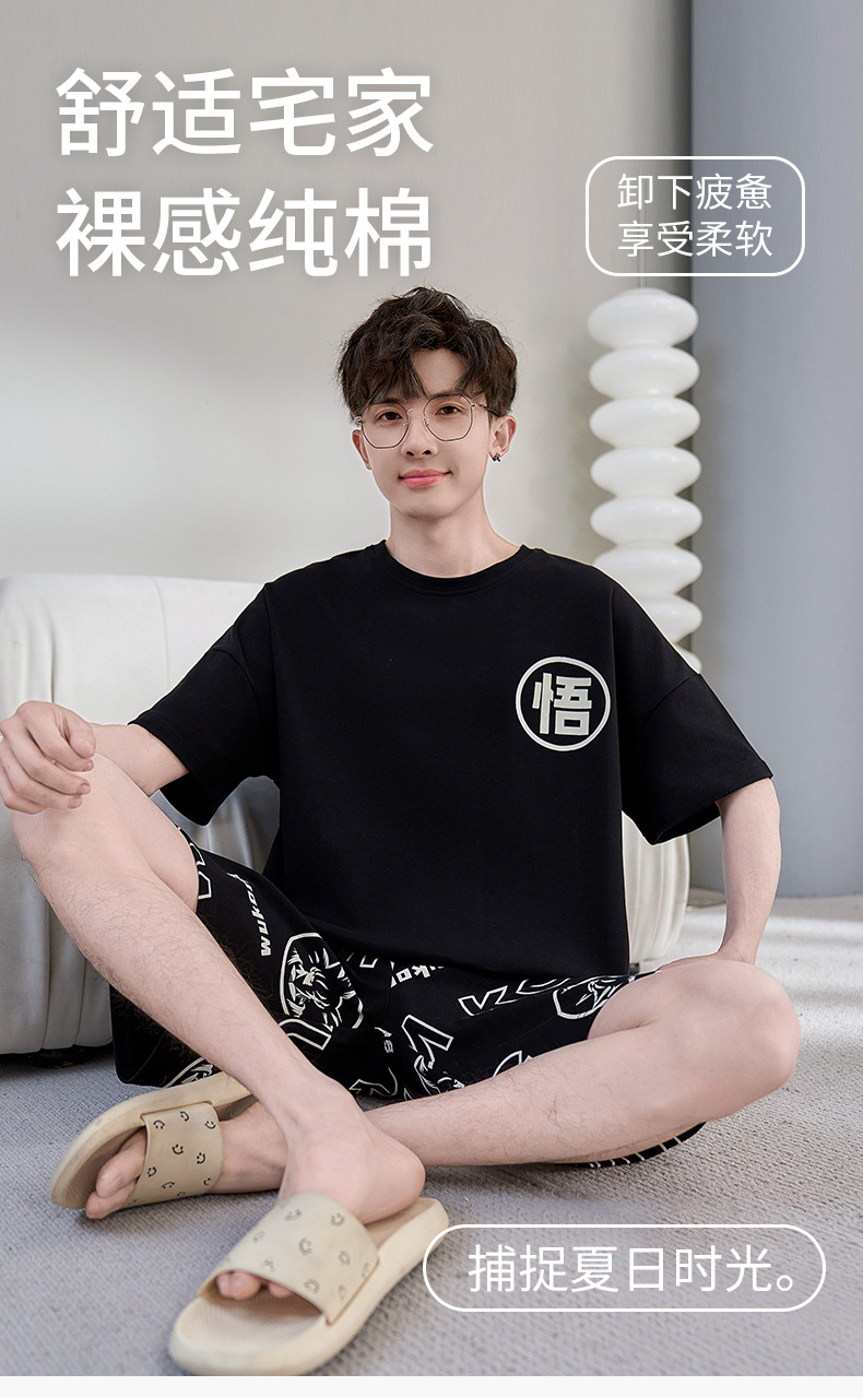 2025년 여름 새로운 순수 코튼 남성 반팔 반바지 정장 잠옷 청소년 대형 느슨한 만화 가정 의류스토어 가기