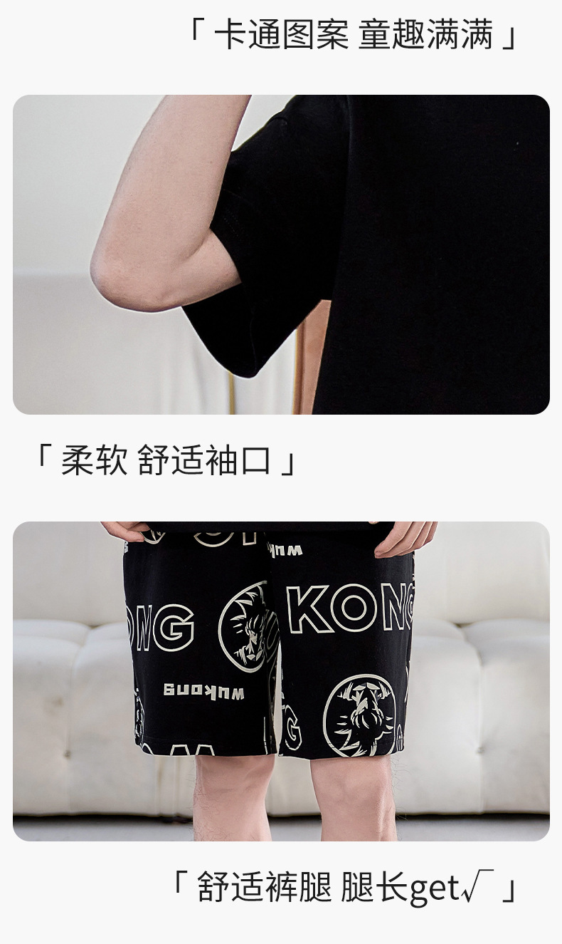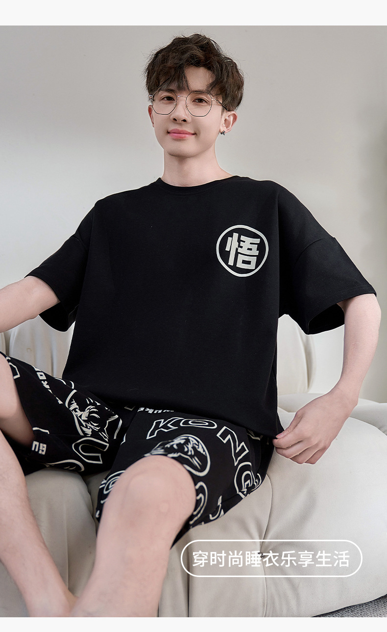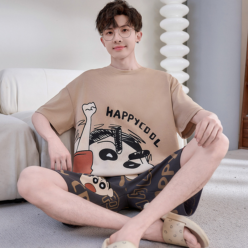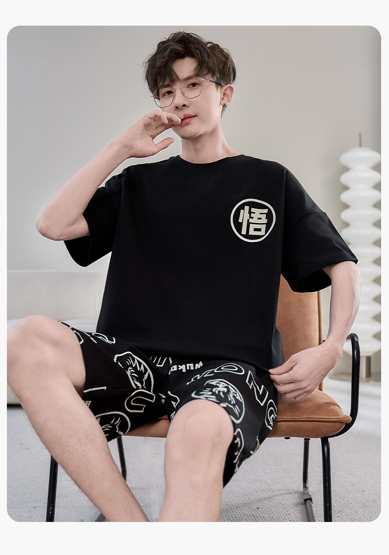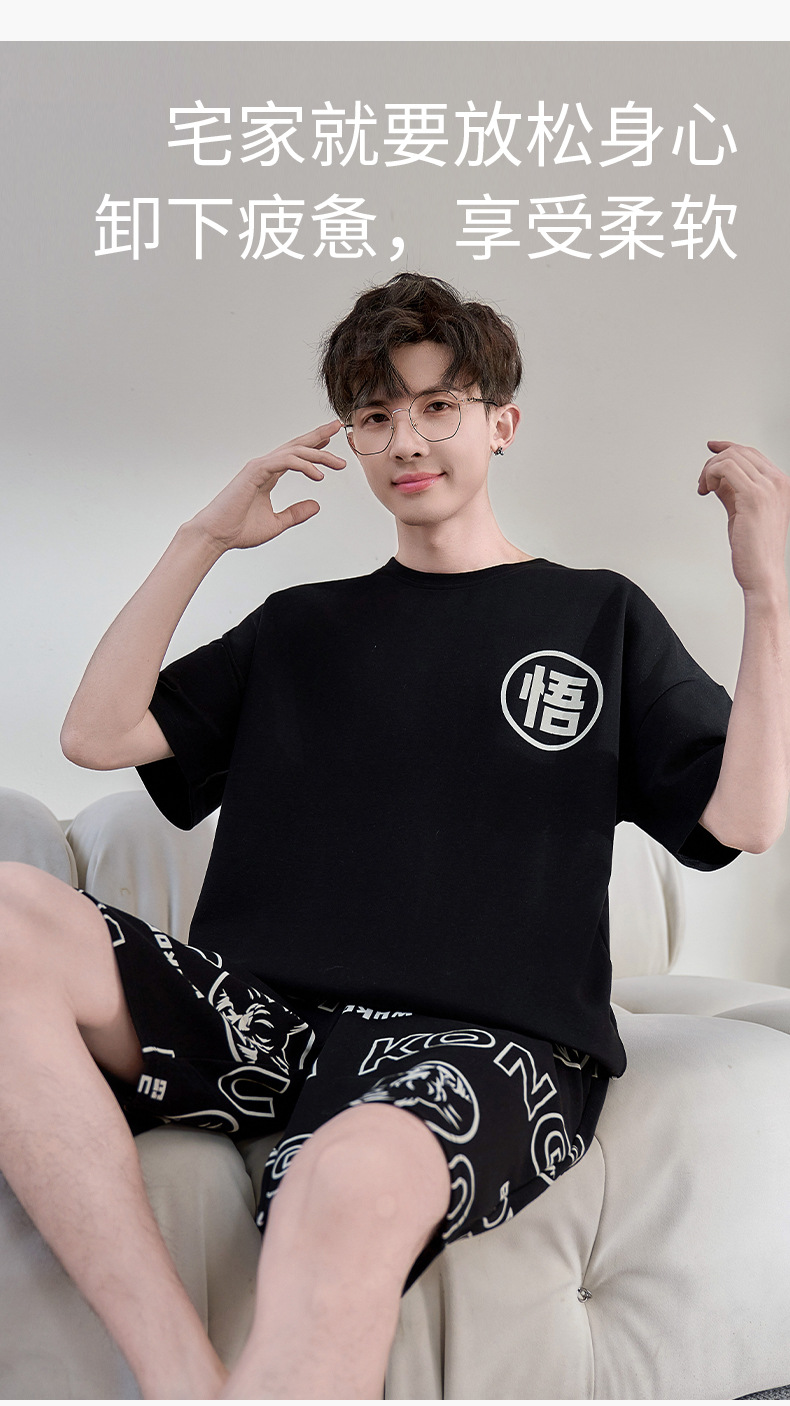 2025년 여름 새로운 순수 코튼 남성 반팔 반바지 정장 잠옷 청소년 대형 느슨한 만화 가정 의류스토어 가기