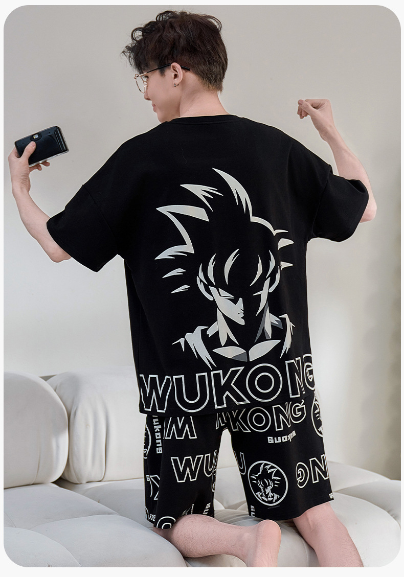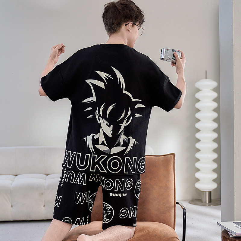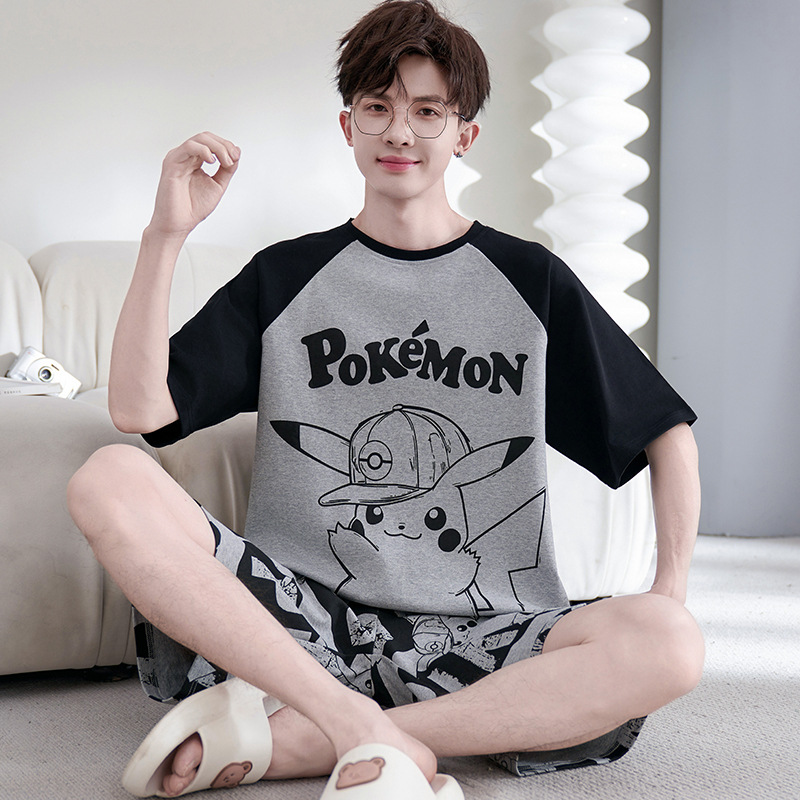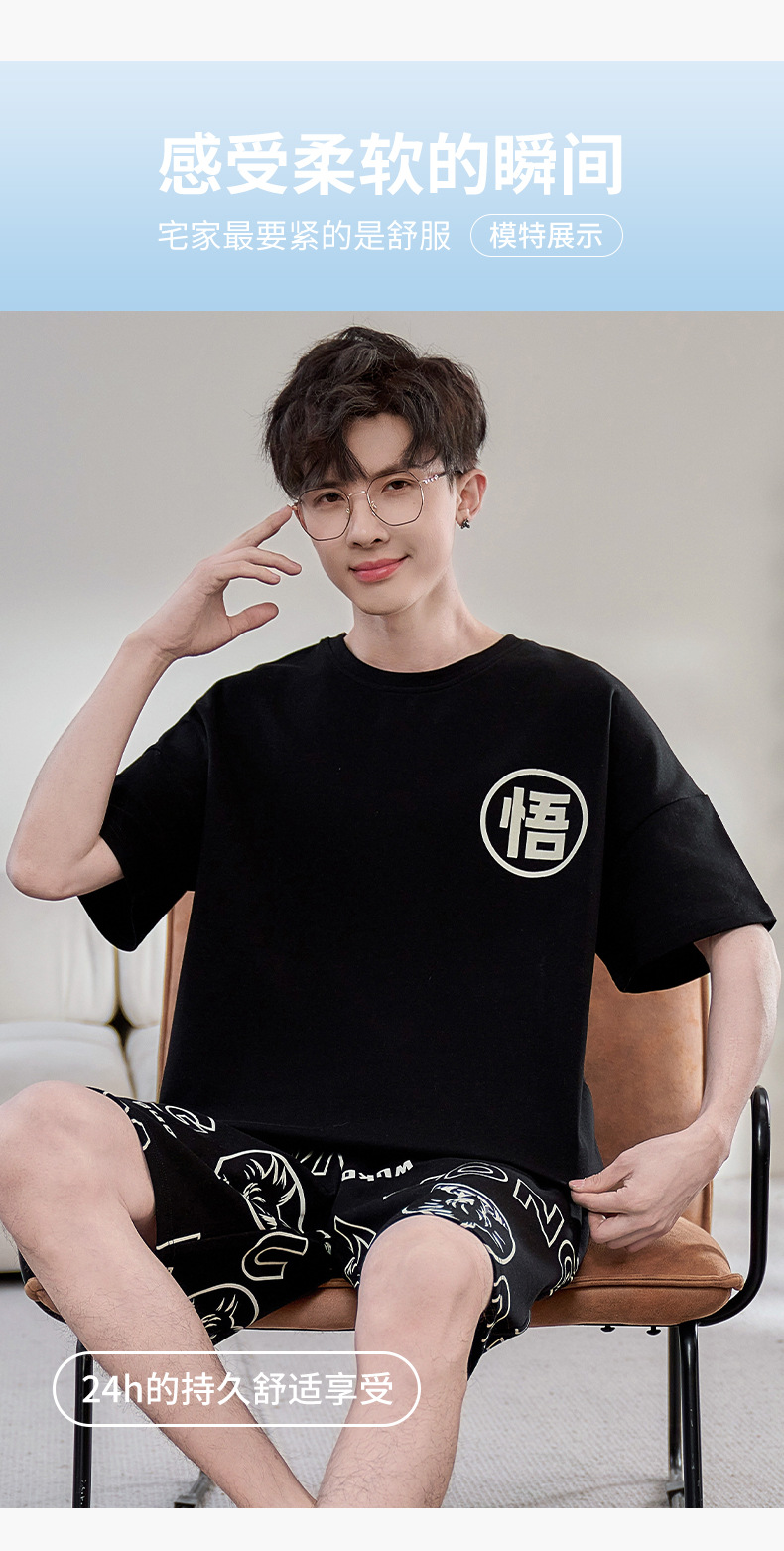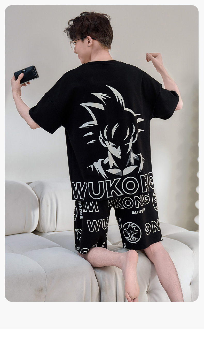 2025년 여름 새로운 순수 코튼 남성 반팔 반바지 정장 잠옷 청소년 대형 느슨한 만화 가정 의류스토어 가기