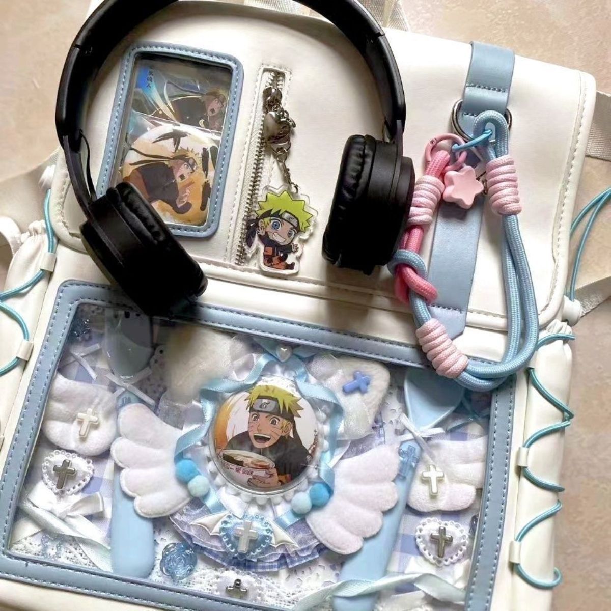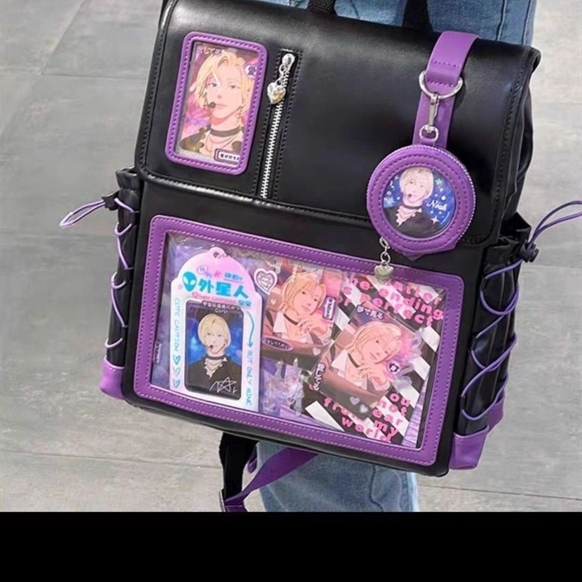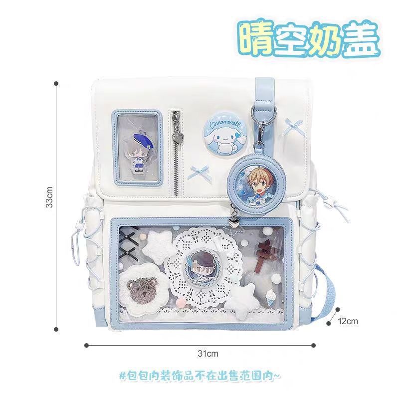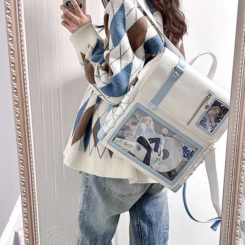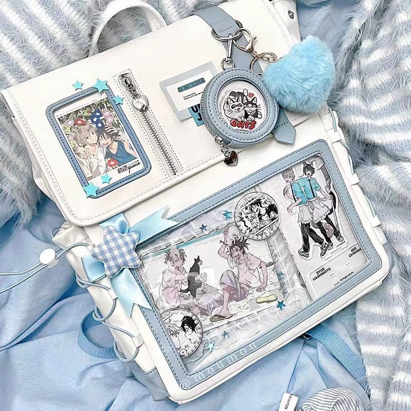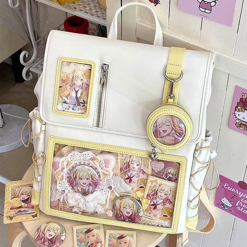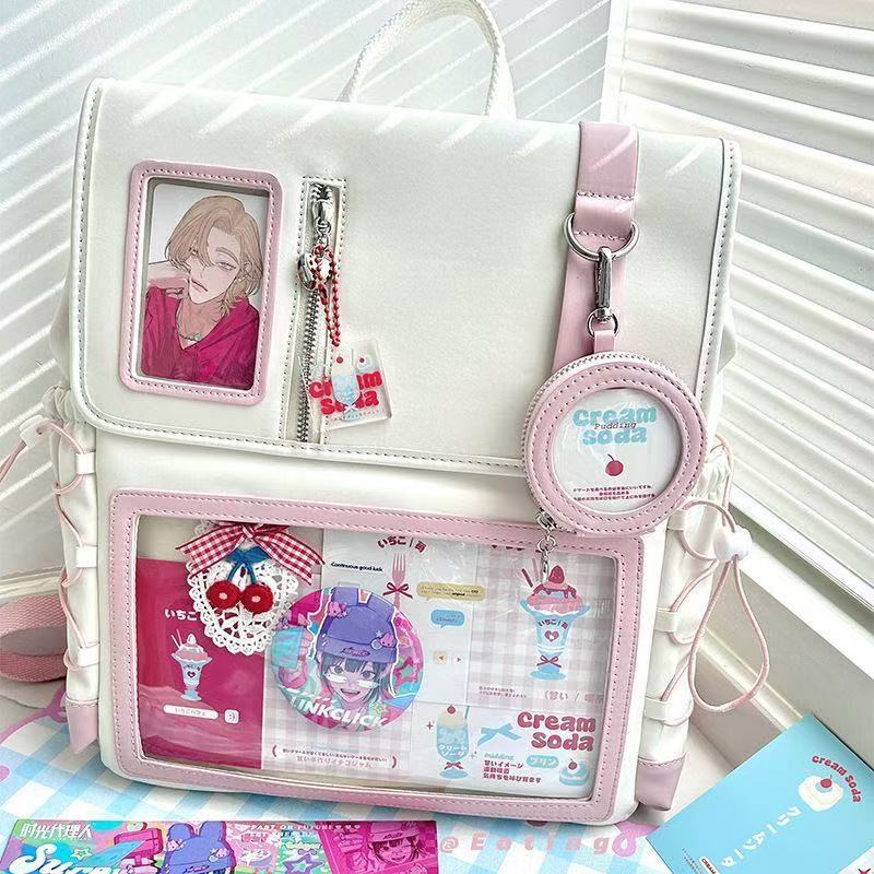일본 2024 통증 가방 새로운 스타일 Cool Pain 2차원 투명 통증 레이어 배낭 대용량 학생 데일리 레저