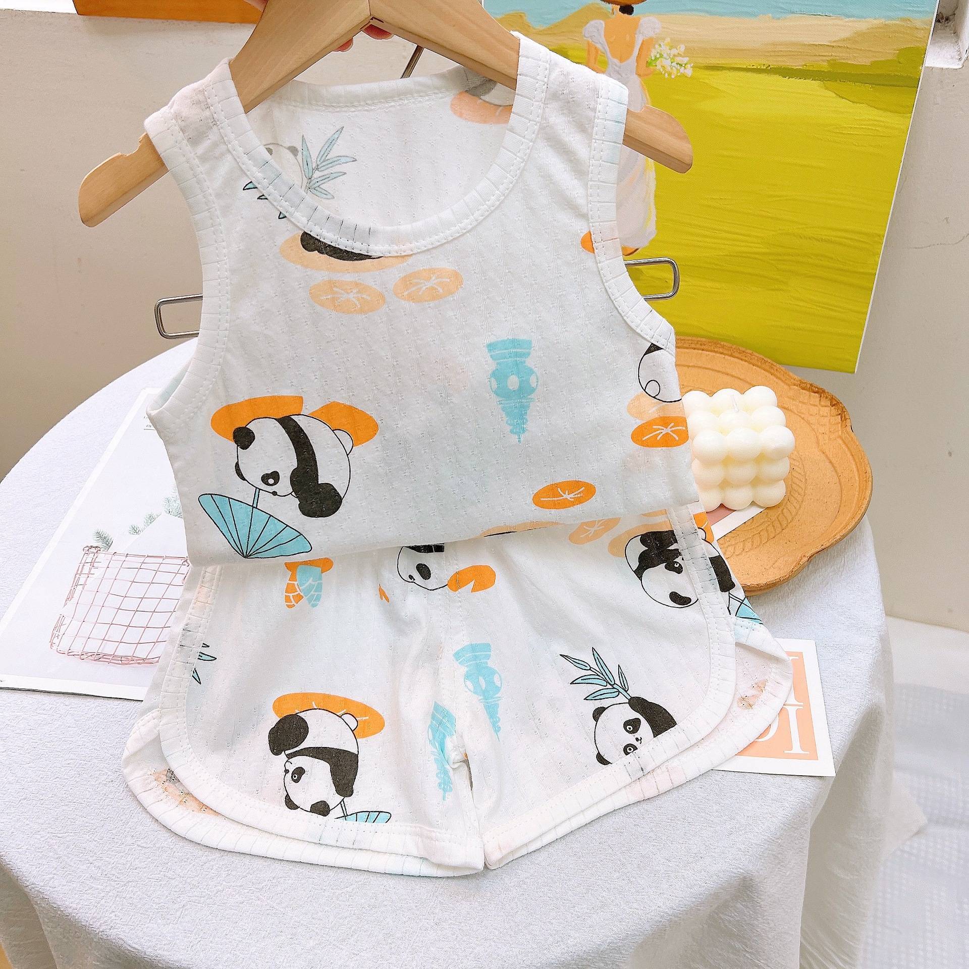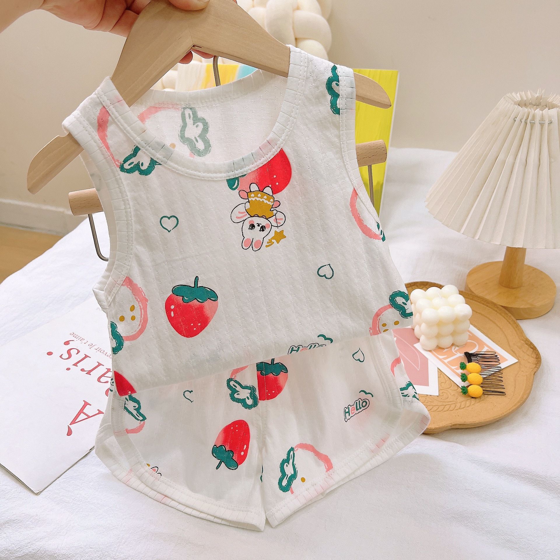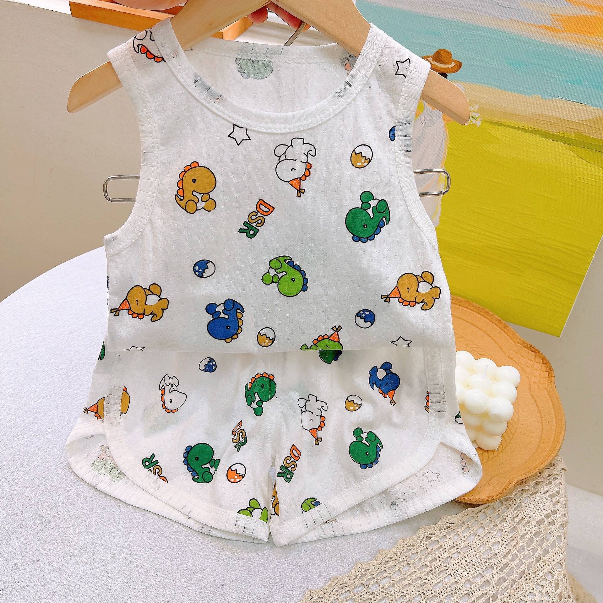 대외 무역 순면 여자 가정 옷 어린이 조끼 세트 소년 아동복 한국식 에어컨 여름 얇은 잠옷스토어 가기
