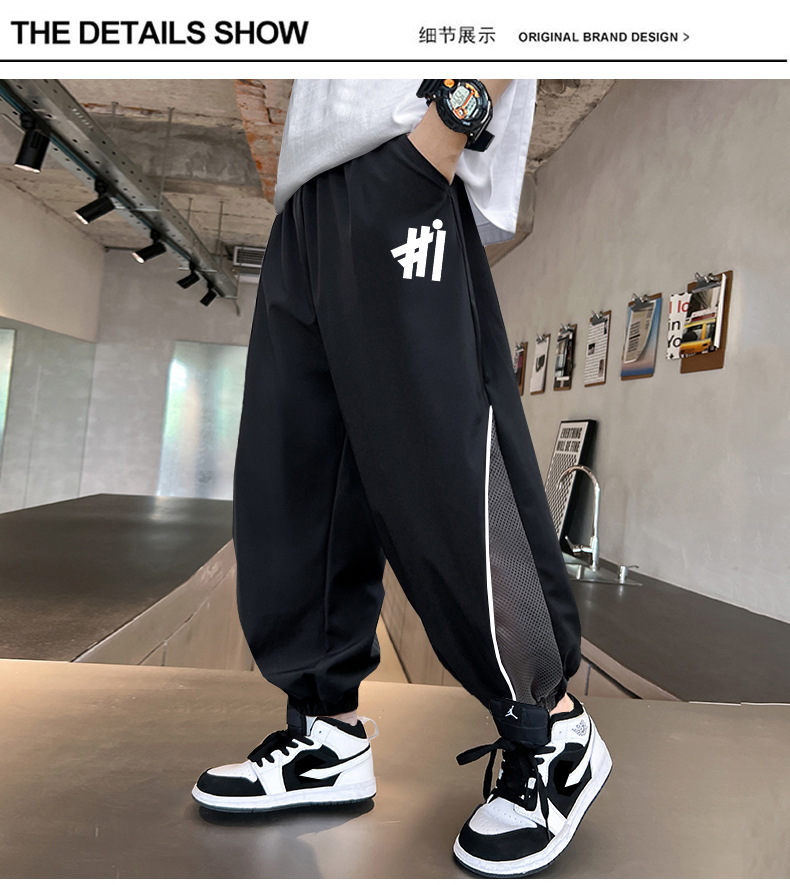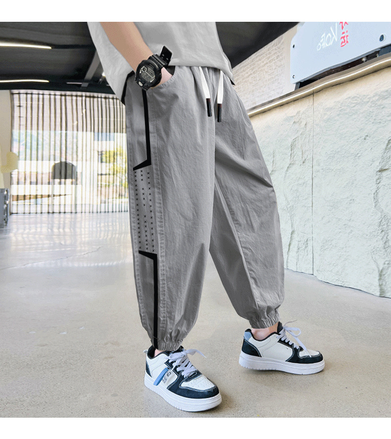 남아용 아이스 실크 팬츠, 여름용 얇은 속건 팬츠, 중대형 아동 캐주얼 스포츠 모기 방지 바지, 남아용 스웨트팬츠, 트렌디스토어 가기