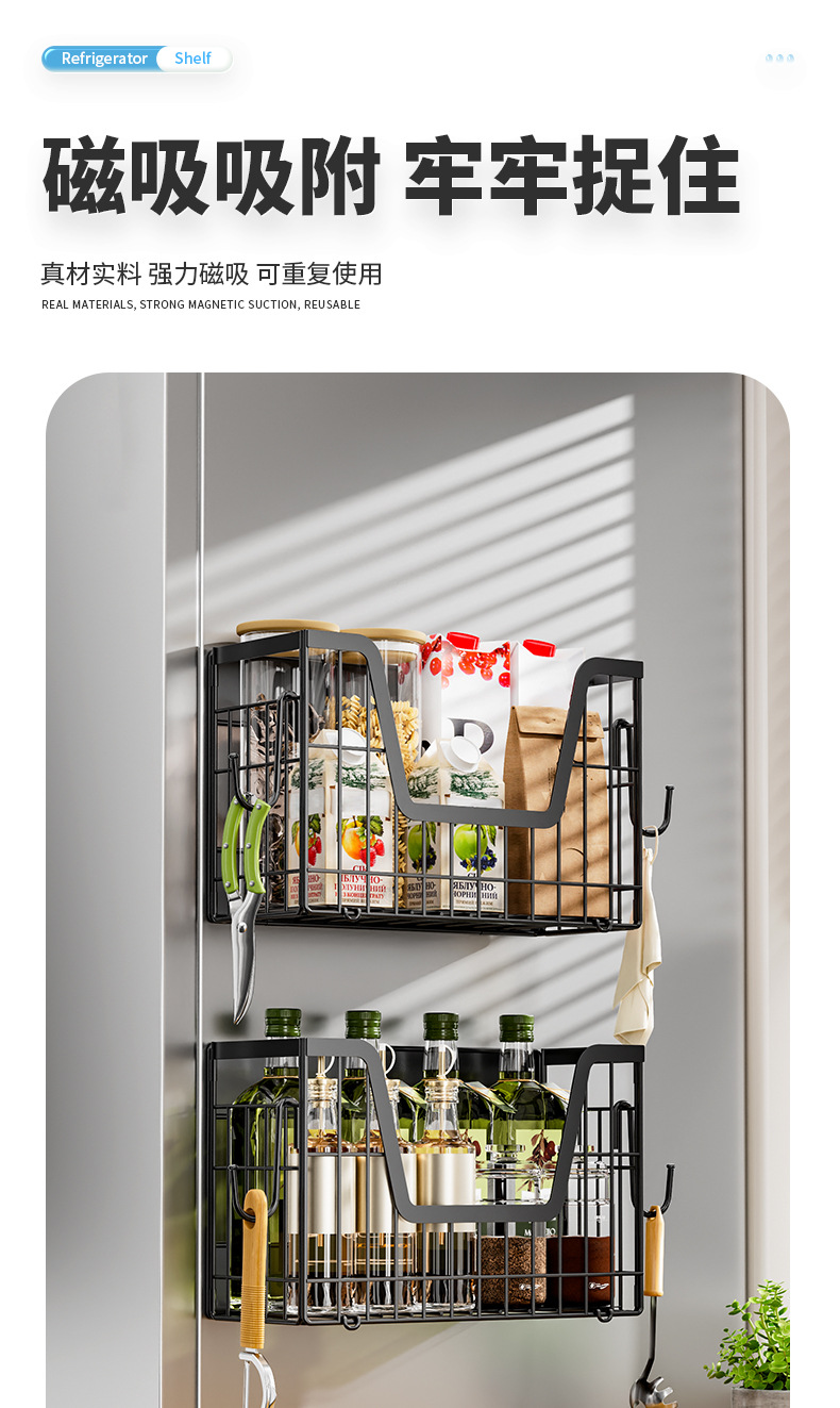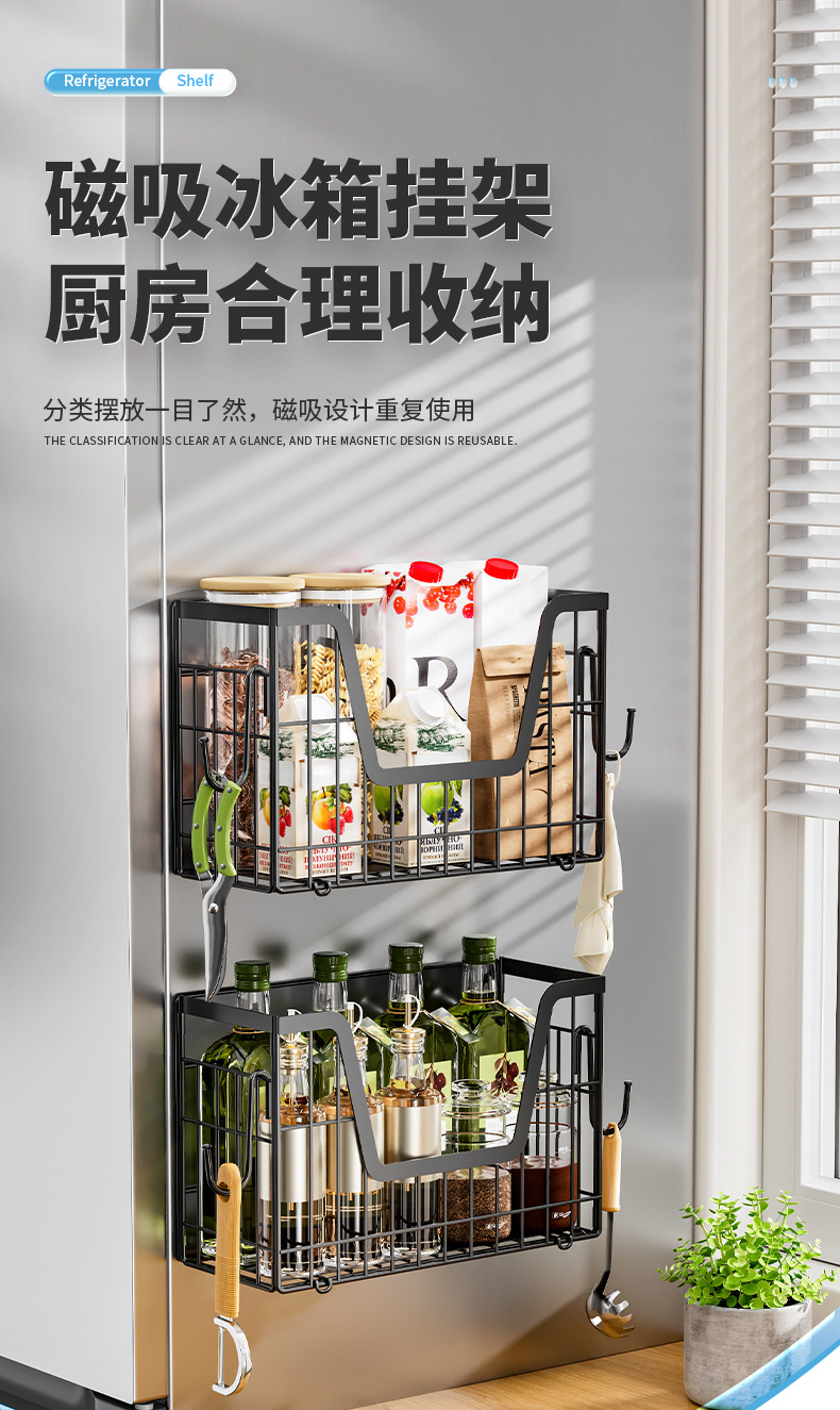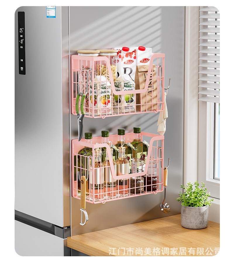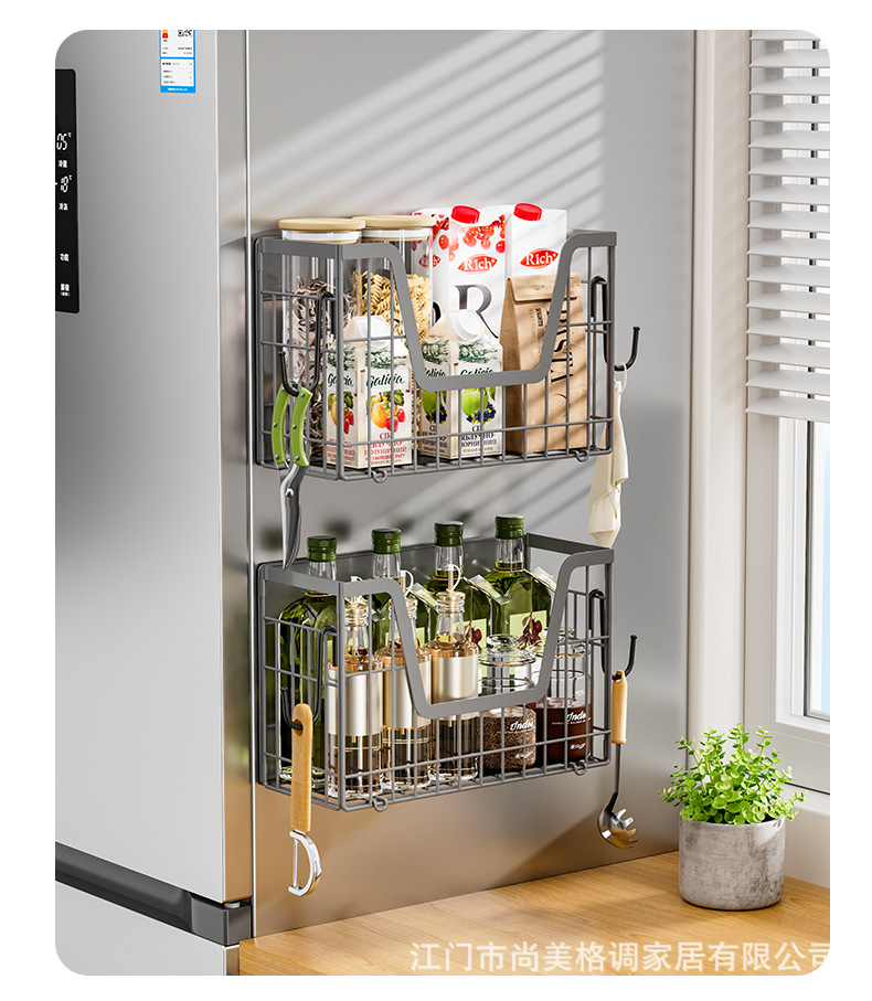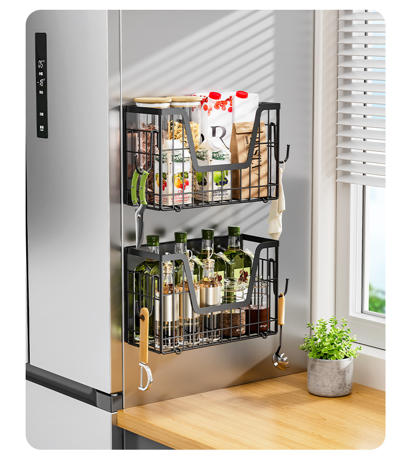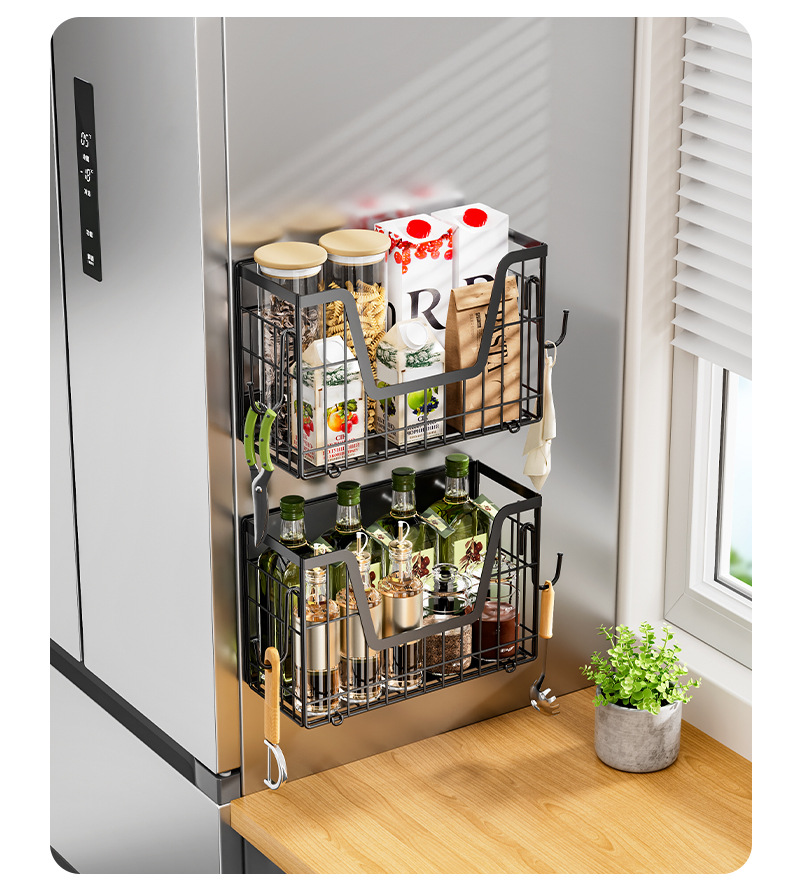 국경 간 자기 흡수 냉장고 걸이 접이식 냉장고 사이드 필름 조미료 보관 바구니 주방 자기 저장 랙