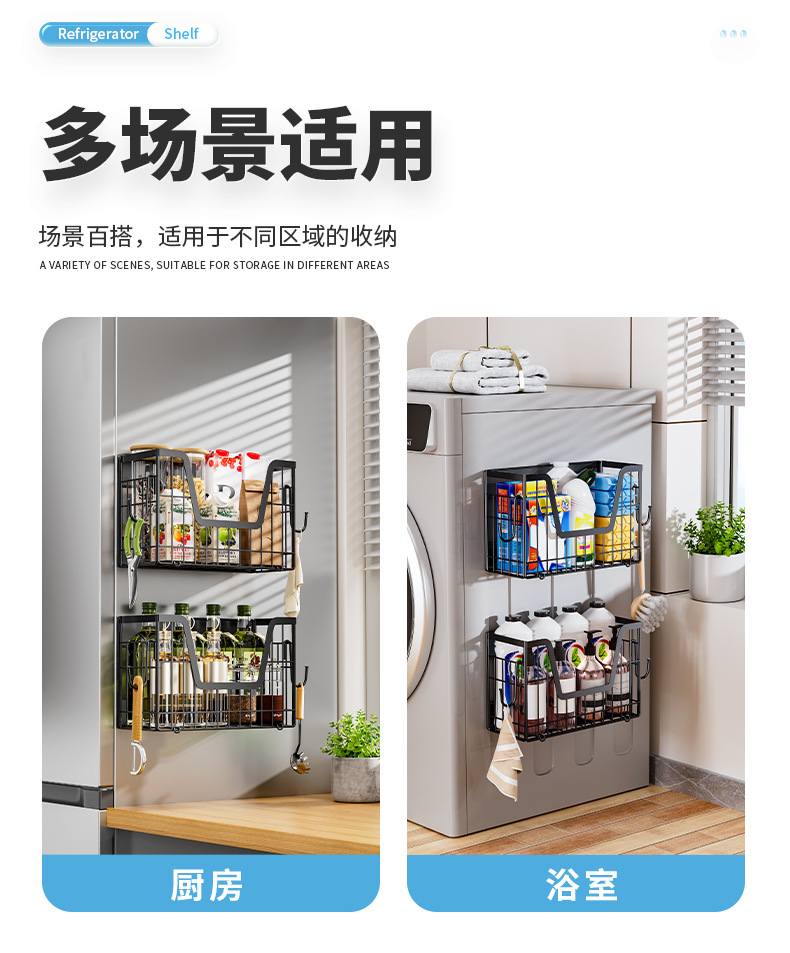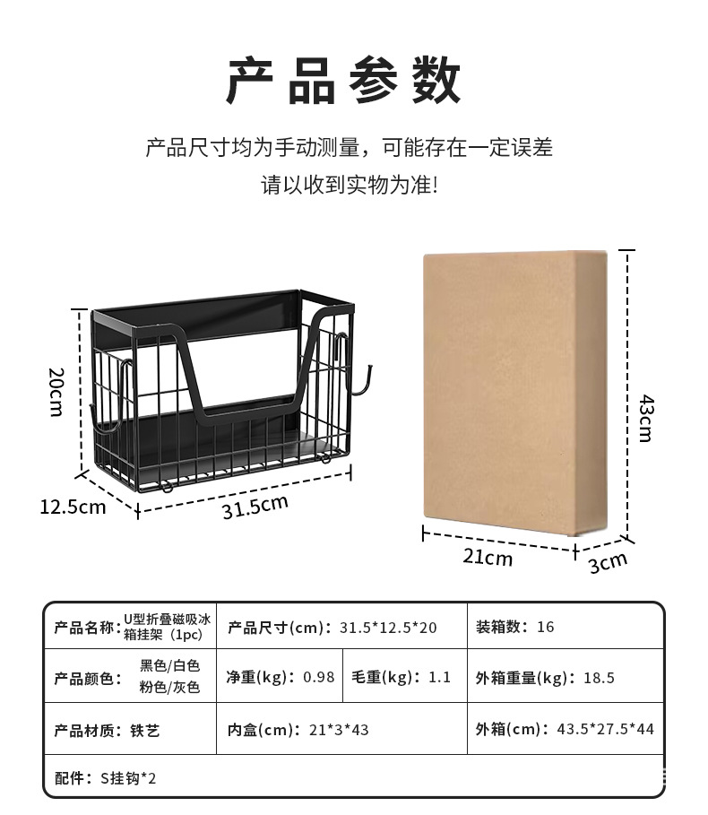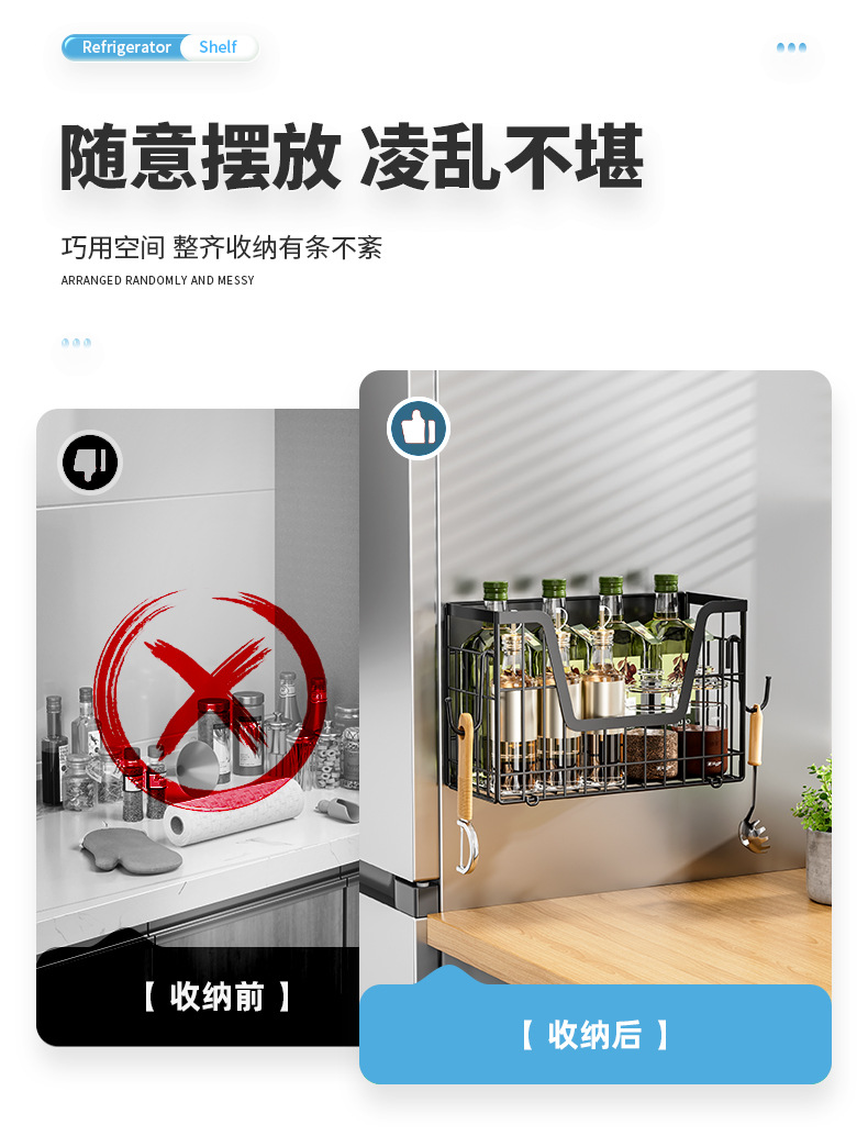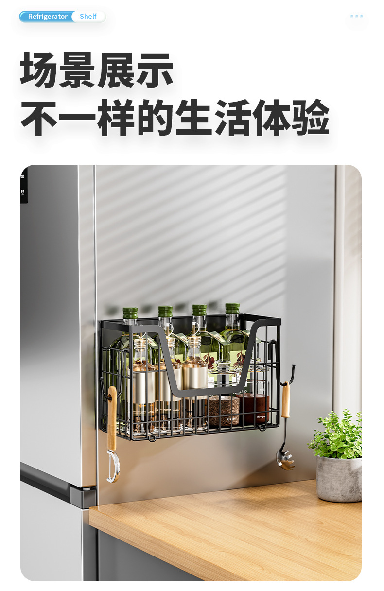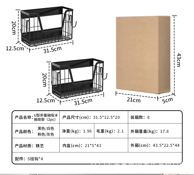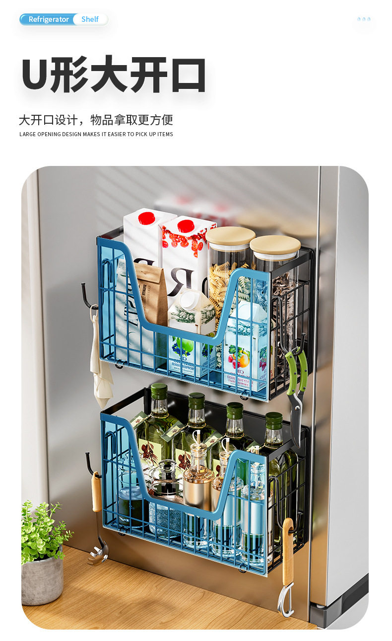 국경 간 자기 흡수 냉장고 걸이 접이식 냉장고 사이드 필름 조미료 보관 바구니 주방 자기 저장 랙