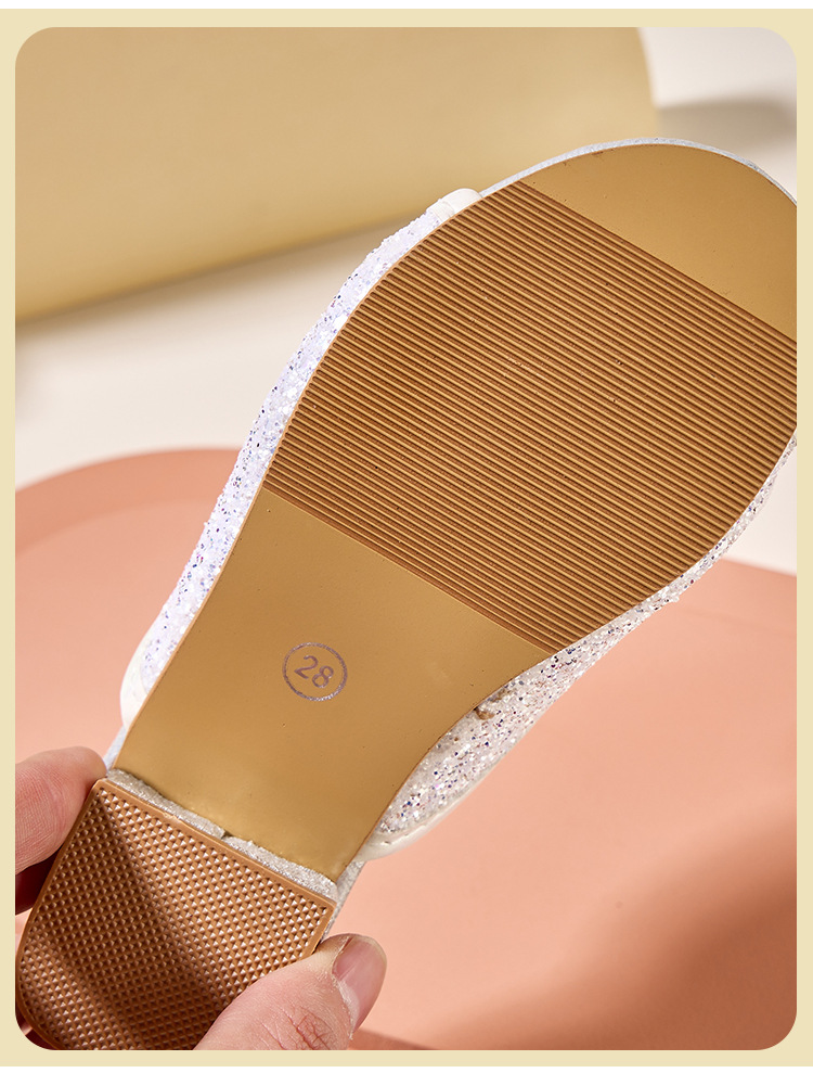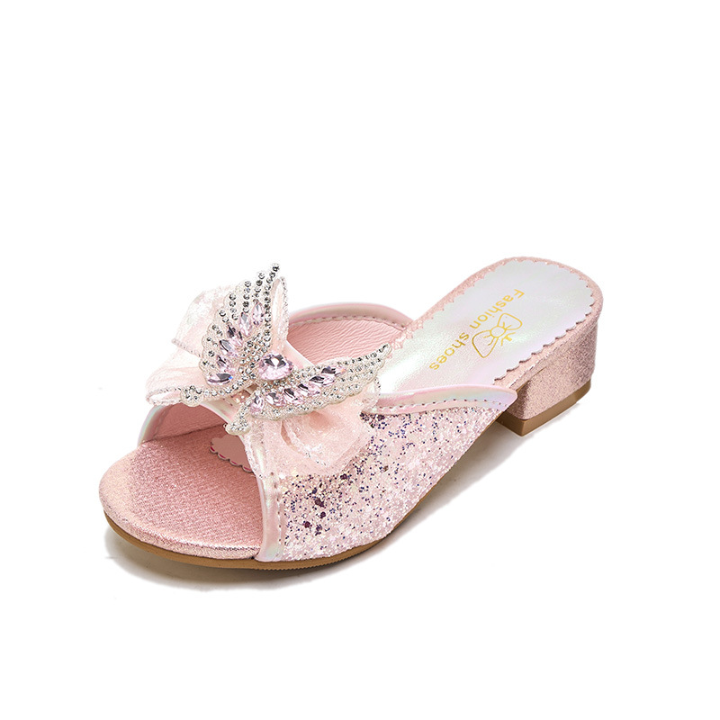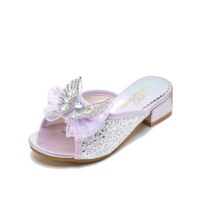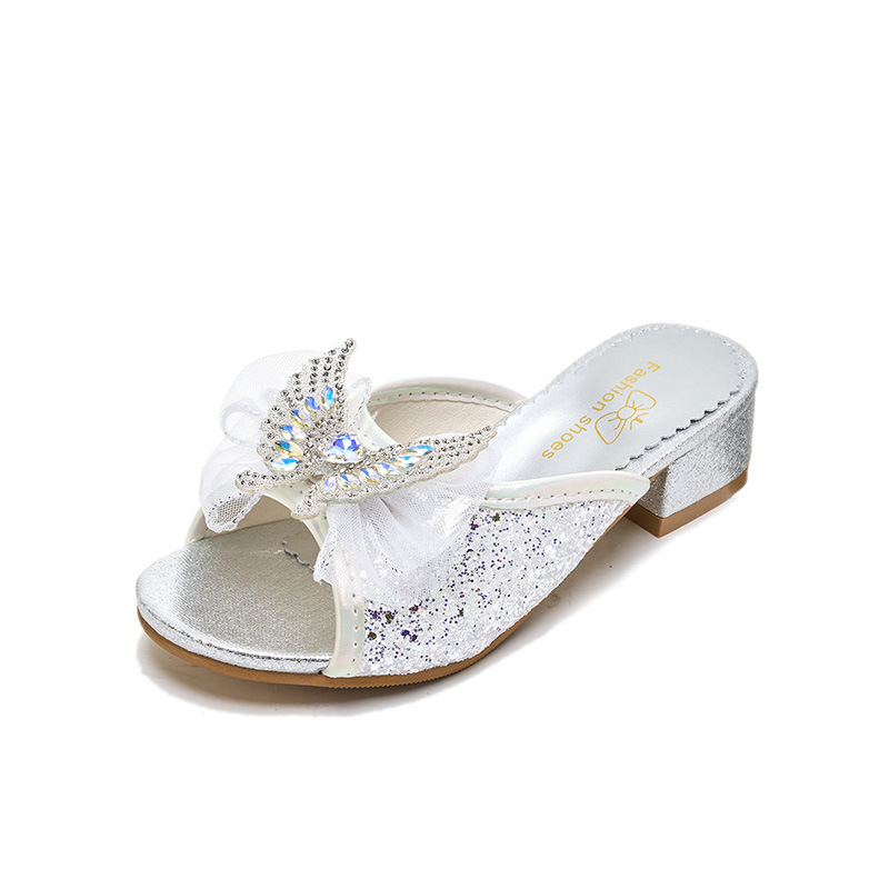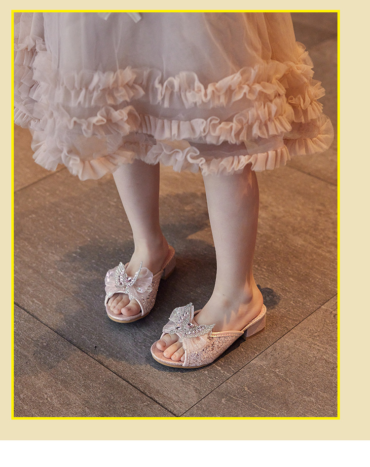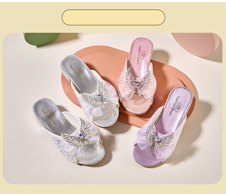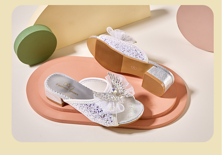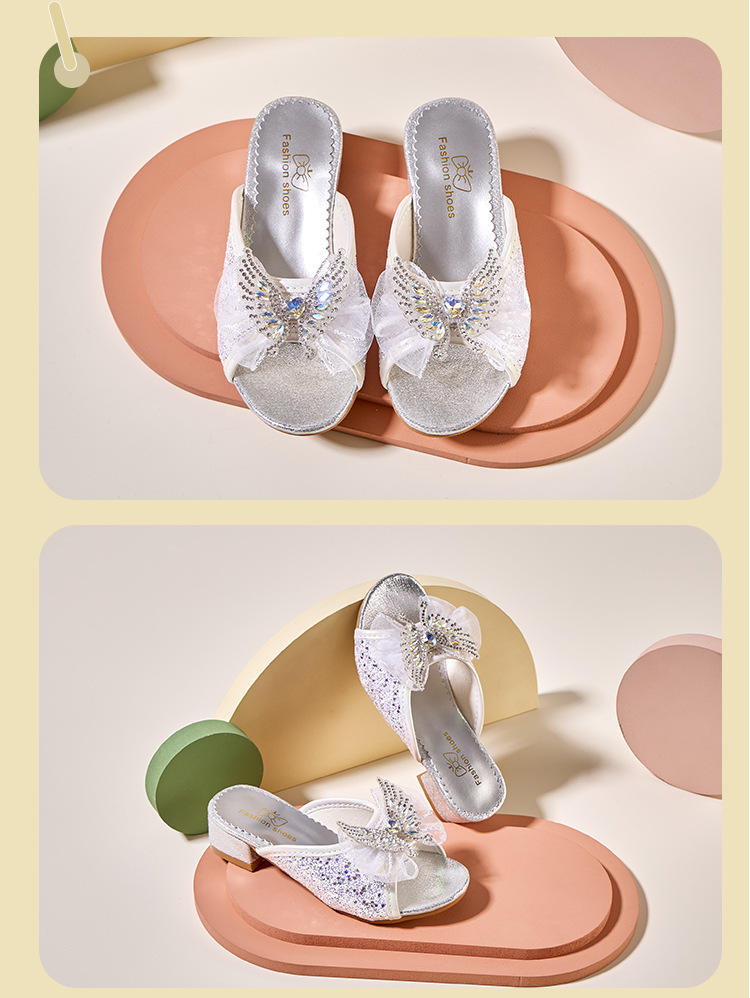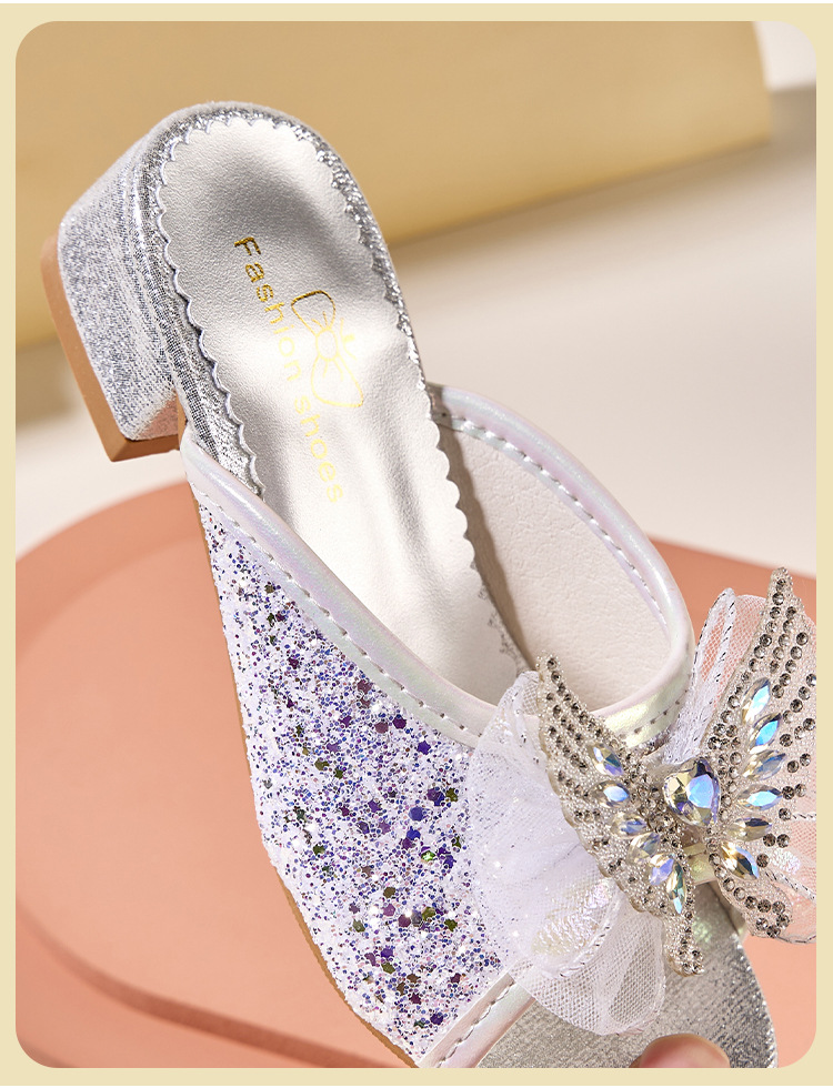 겨울왕국 소녀 하이힐 슬리퍼 2025 여름 신작 어린이 크리스탈 하프 슬리퍼 엘사 패션 공주 샌들