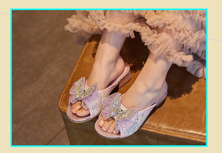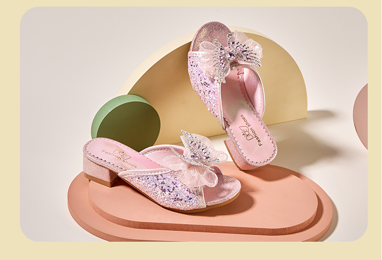 겨울왕국 소녀 하이힐 슬리퍼 2025 여름 신작 어린이 크리스탈 하프 슬리퍼 엘사 패션 공주 샌들스토어 가기