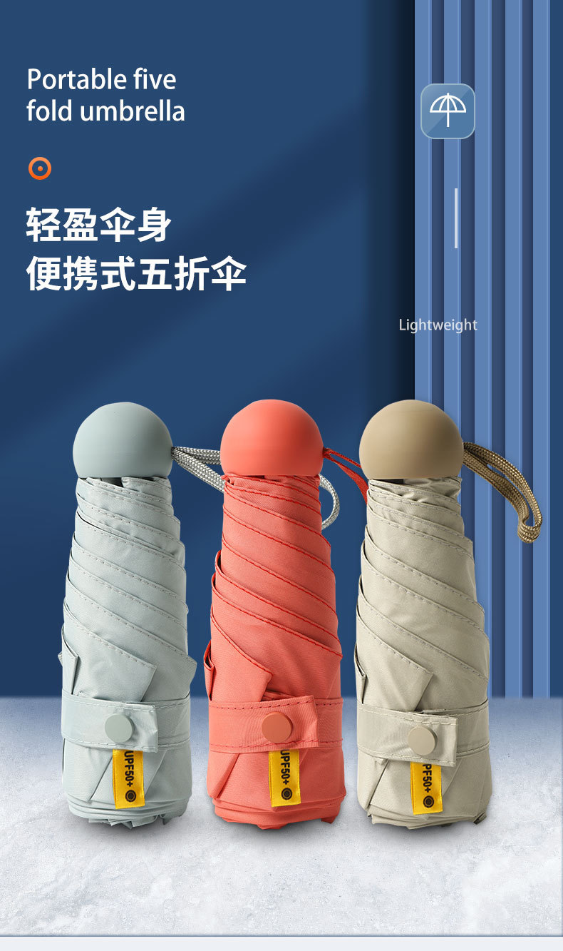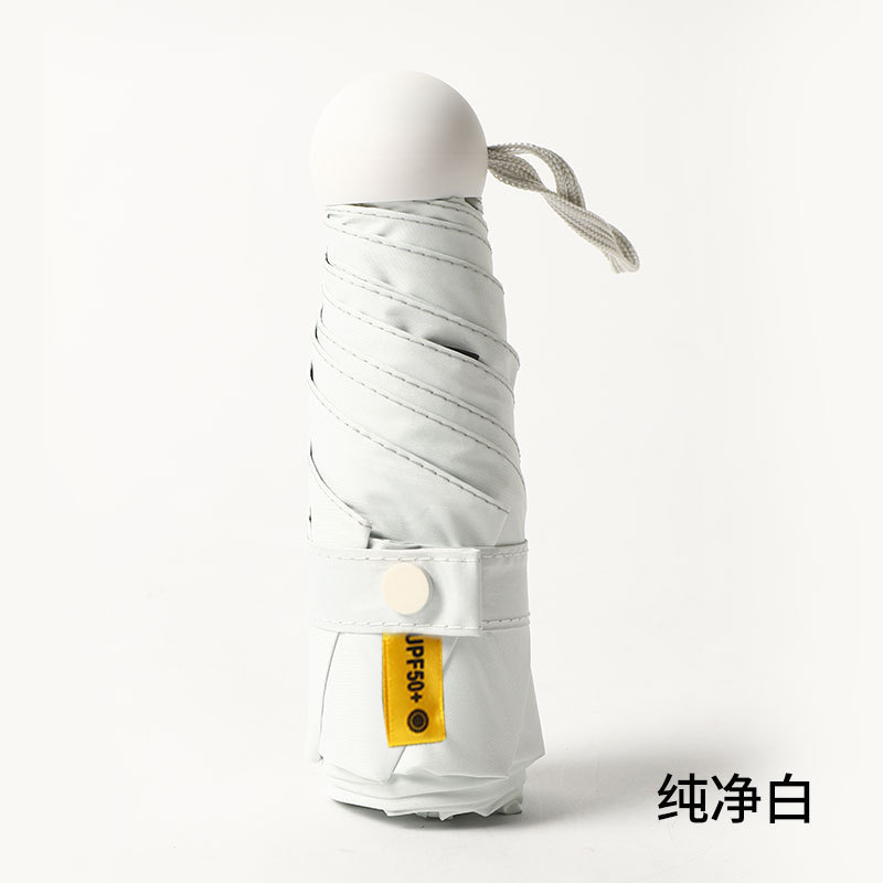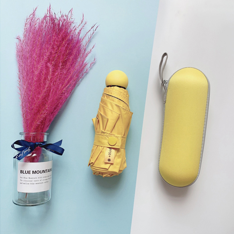 5 폴드 캡슐 우산 UV 보호 울트라 라이트 미니 태양 우산 여성의 맑고 비오는 이중 사용 햇빛 우산 맞춤 로고