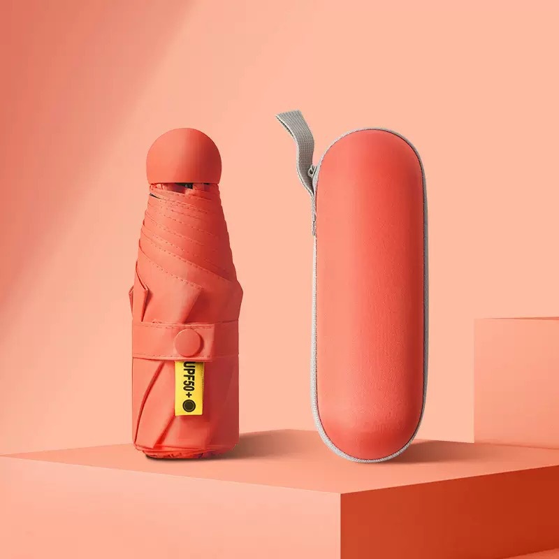 5 폴드 캡슐 우산 UV 보호 울트라 라이트 미니 태양 우산 여성의 맑고 비오는 이중 사용 햇빛 우산 맞춤 로고스토어 가기