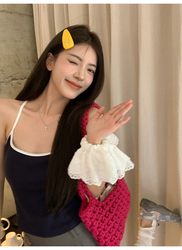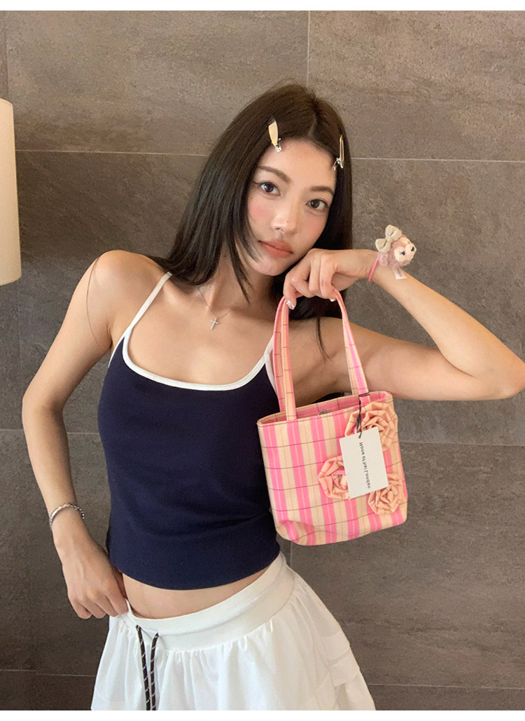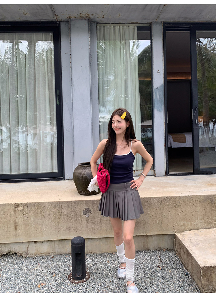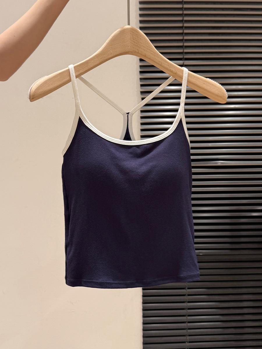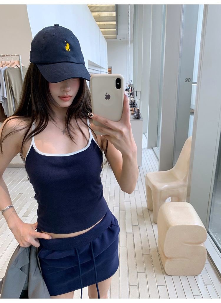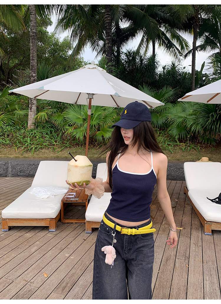 매우 아름다운 여름 해변 휴가 작은 멜빵 대비 색상 라텍스 가슴 패드 편안한 내부 민소매 탑 및 외부 조끼스토어 가기