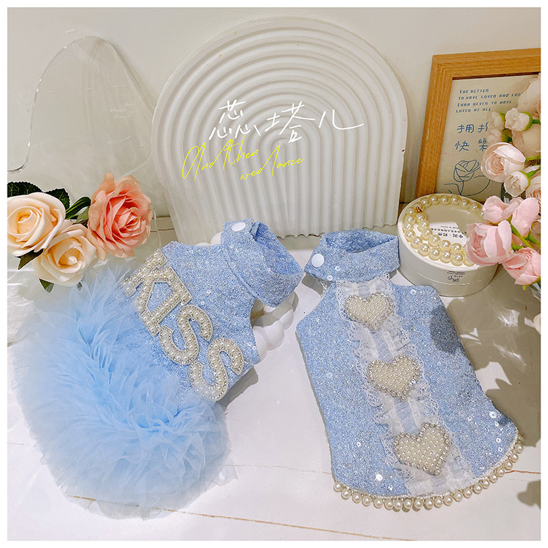 개 옷 엑스트라 작은 Marzis 요크셔 공주 원피스 스퀸 가운 곰 테디 폰테 조끼