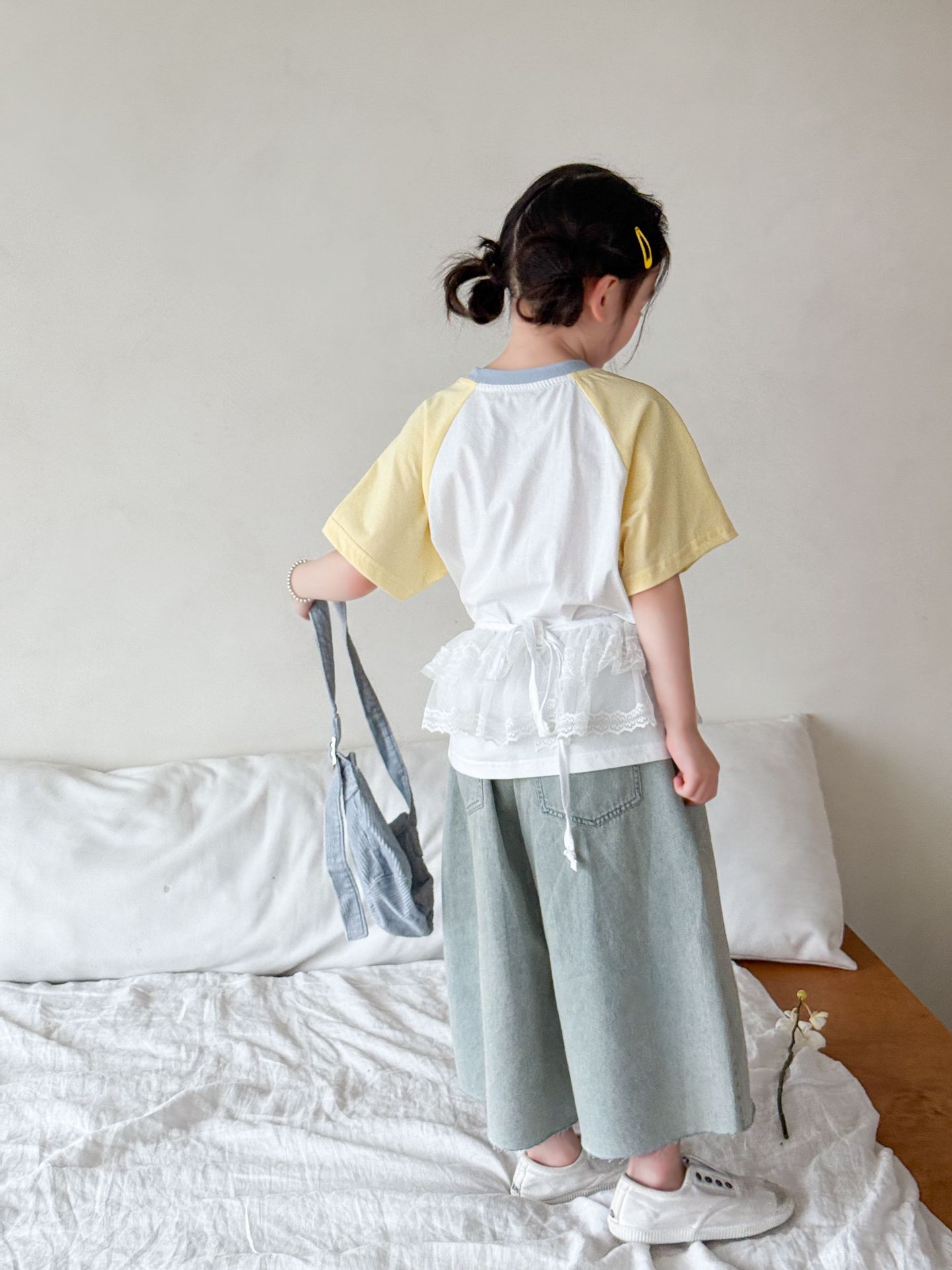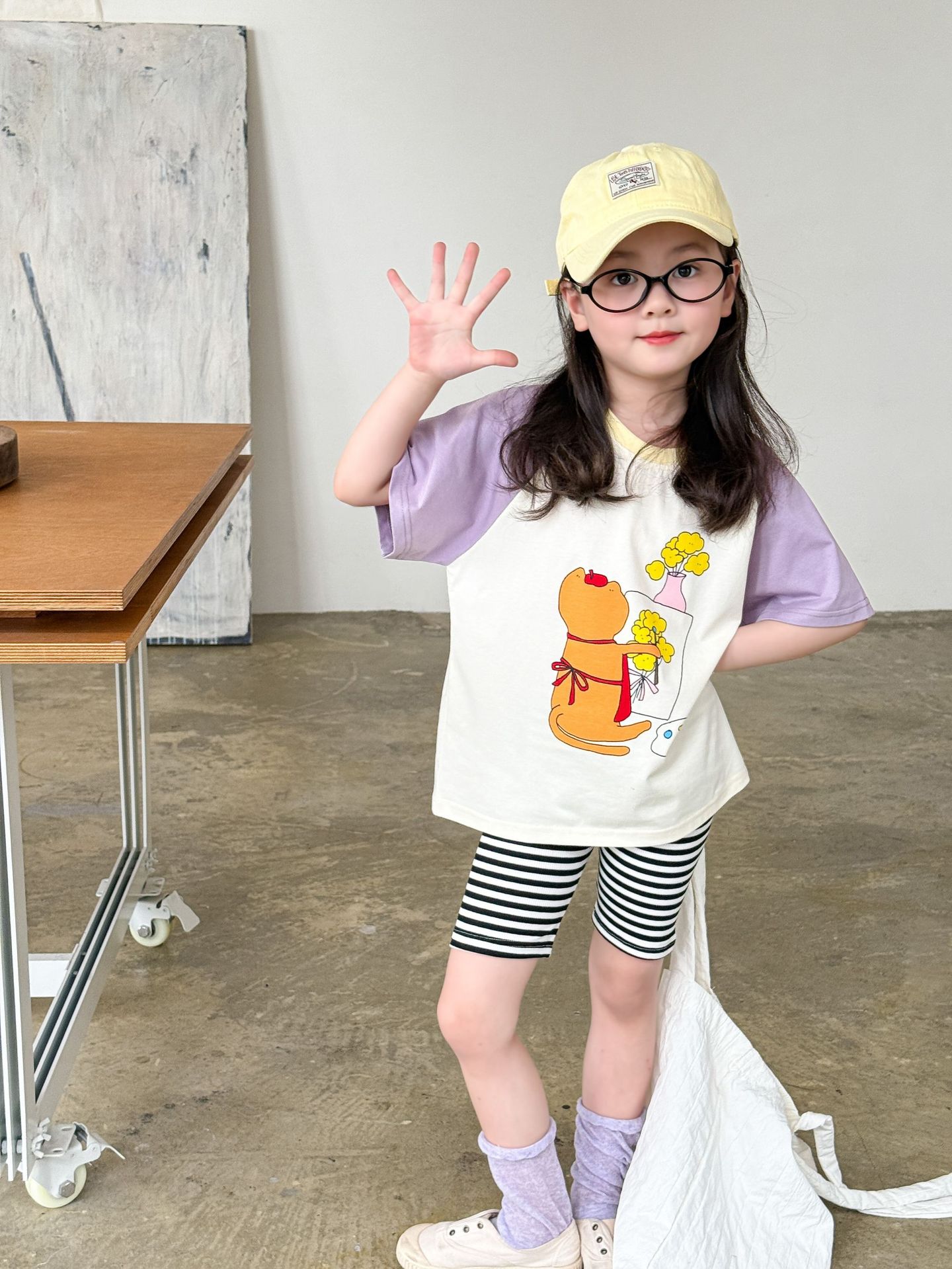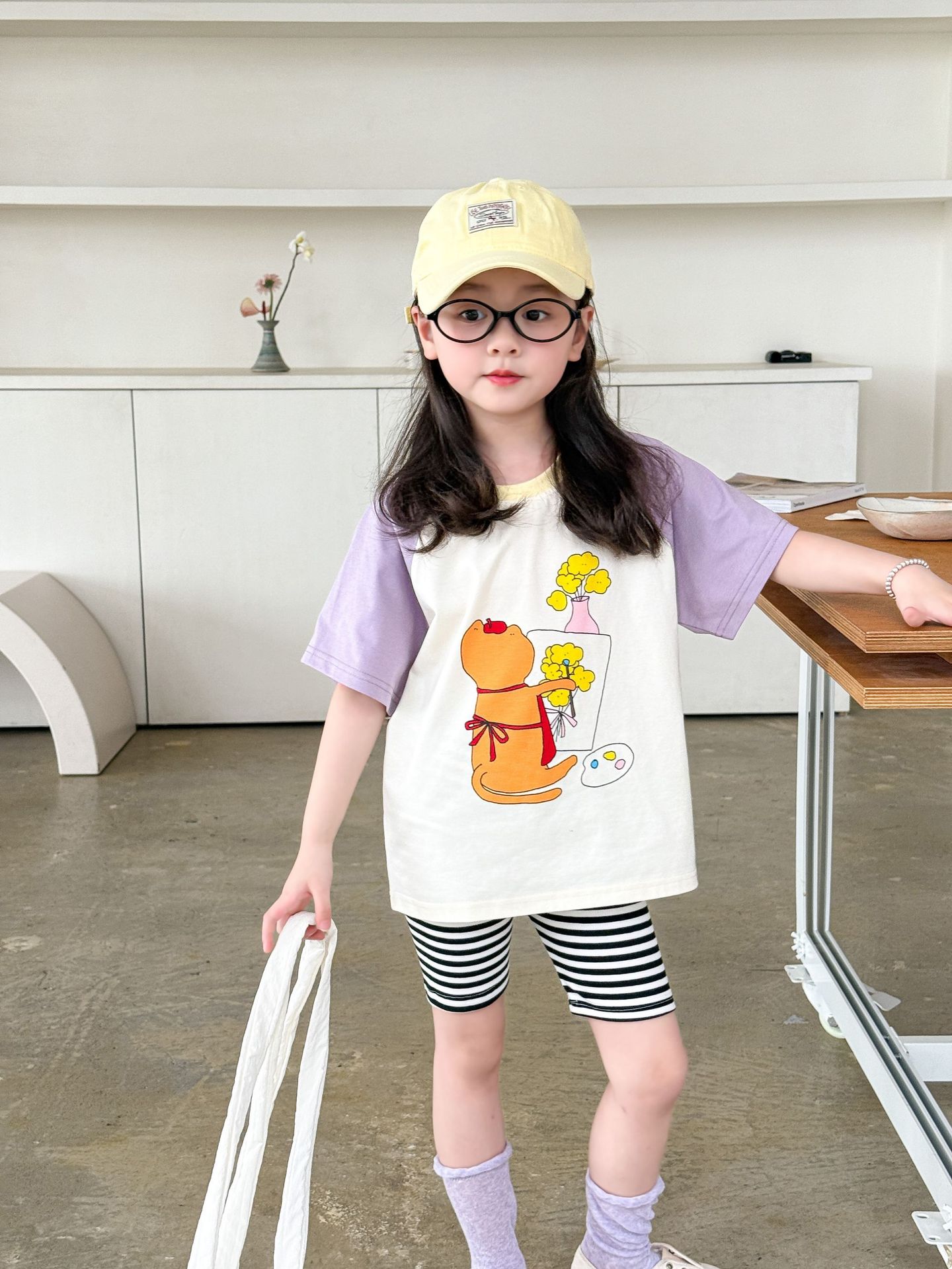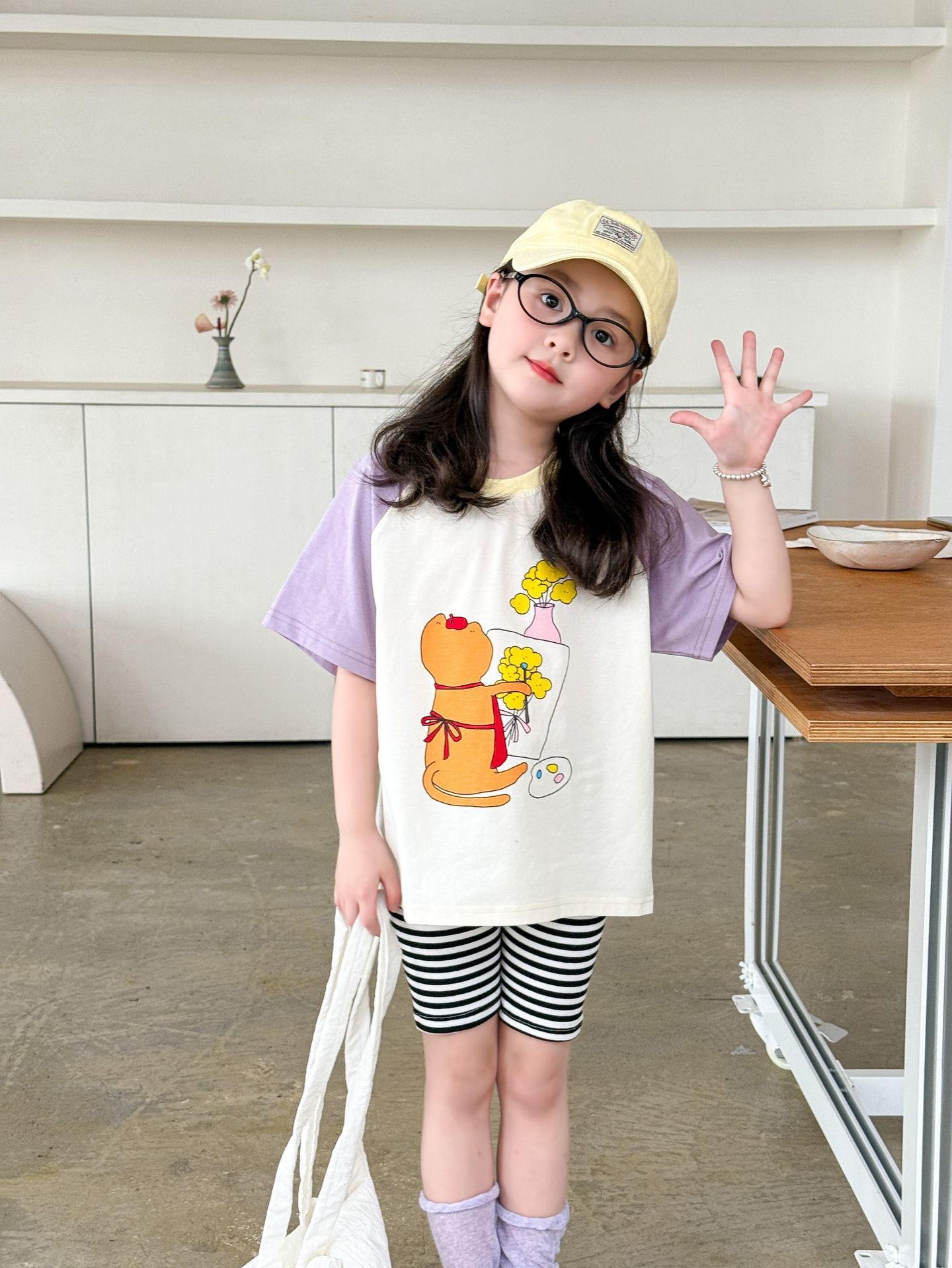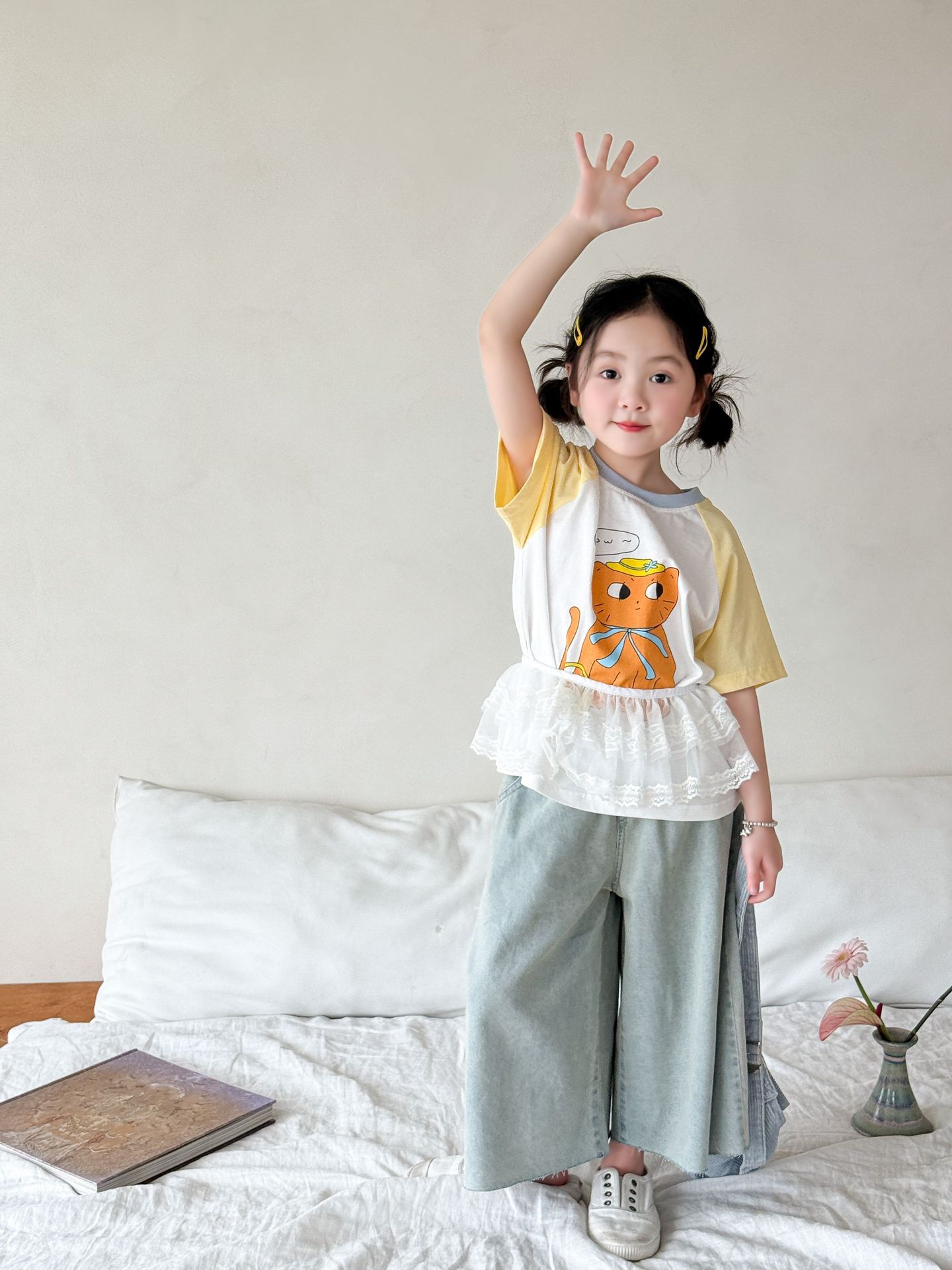 Weimu 아동 의류 소녀 티셔츠 반팔 2025 새로운 여름 얇은 어린이 통기성 반팔 탑 카테고리 a 아기 옷