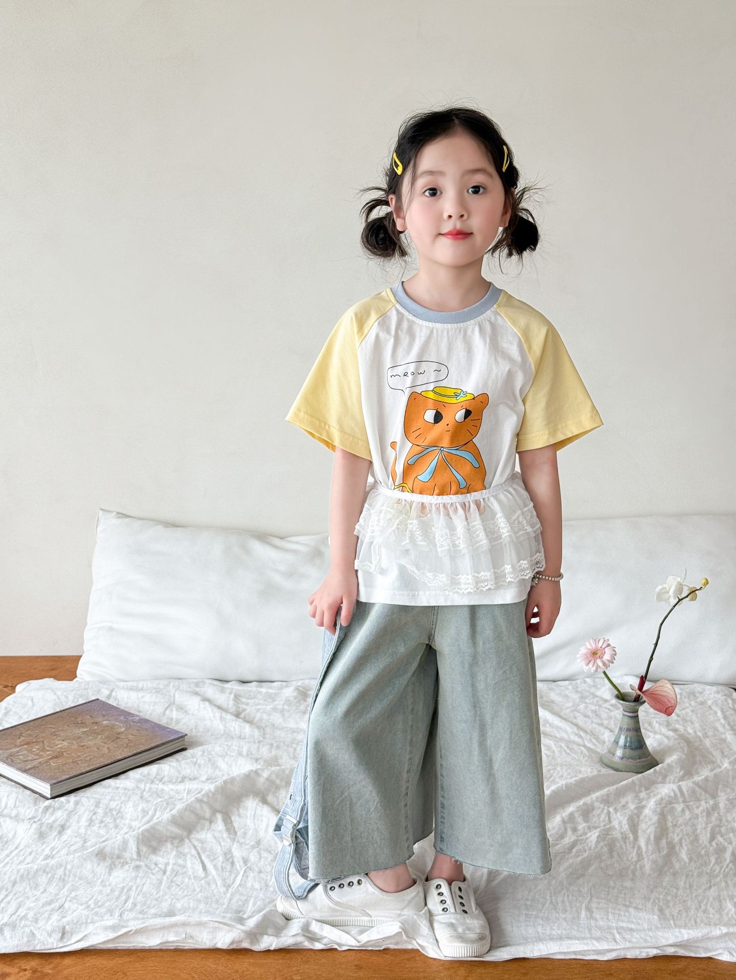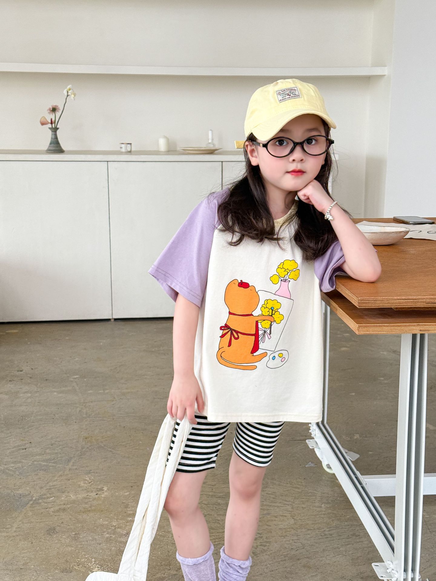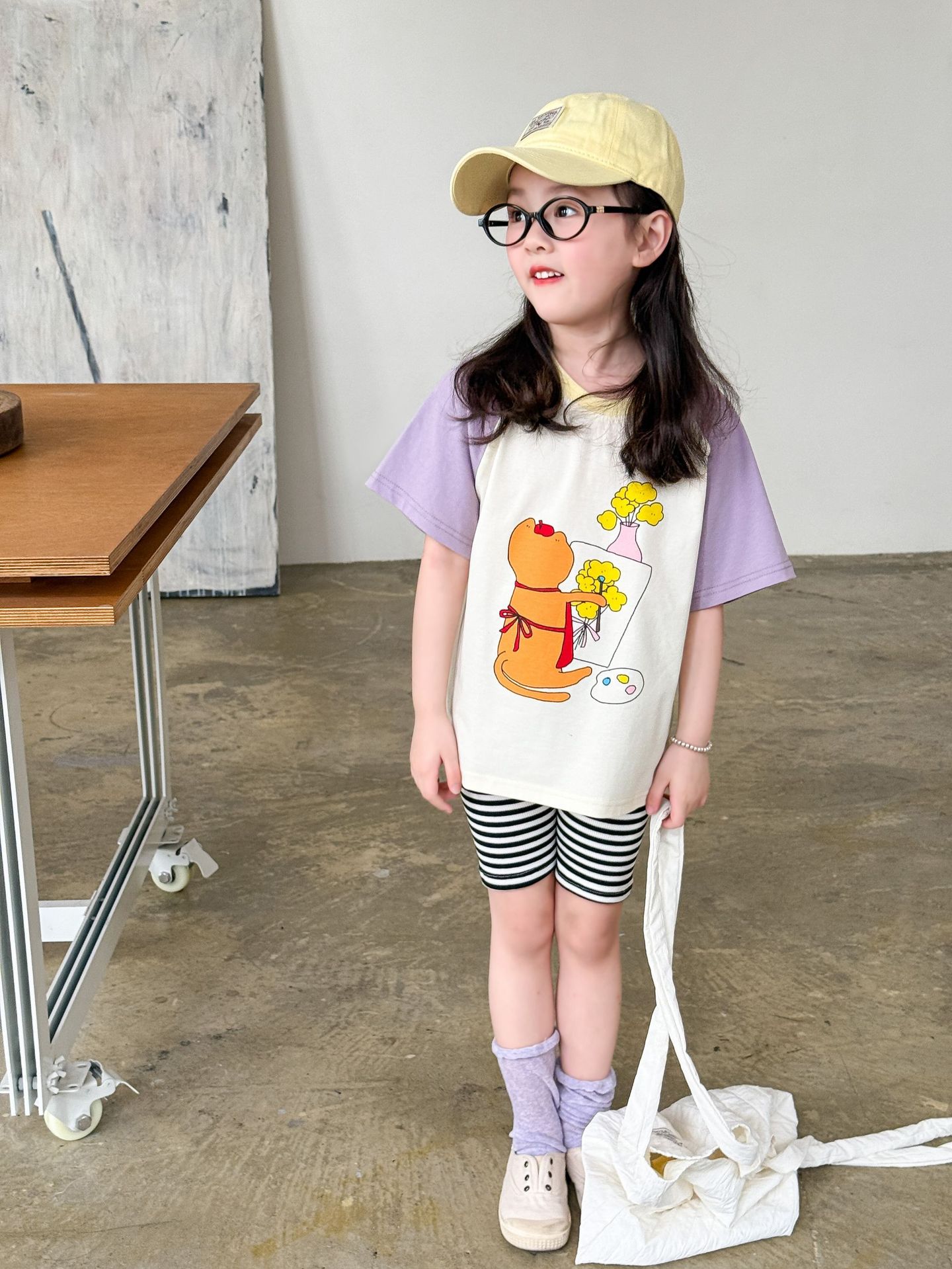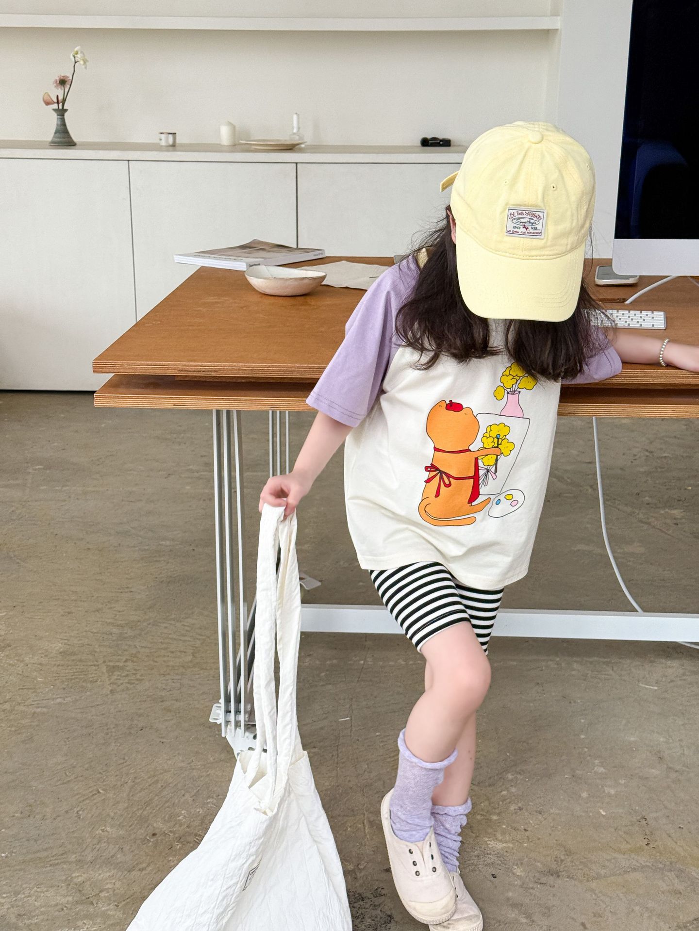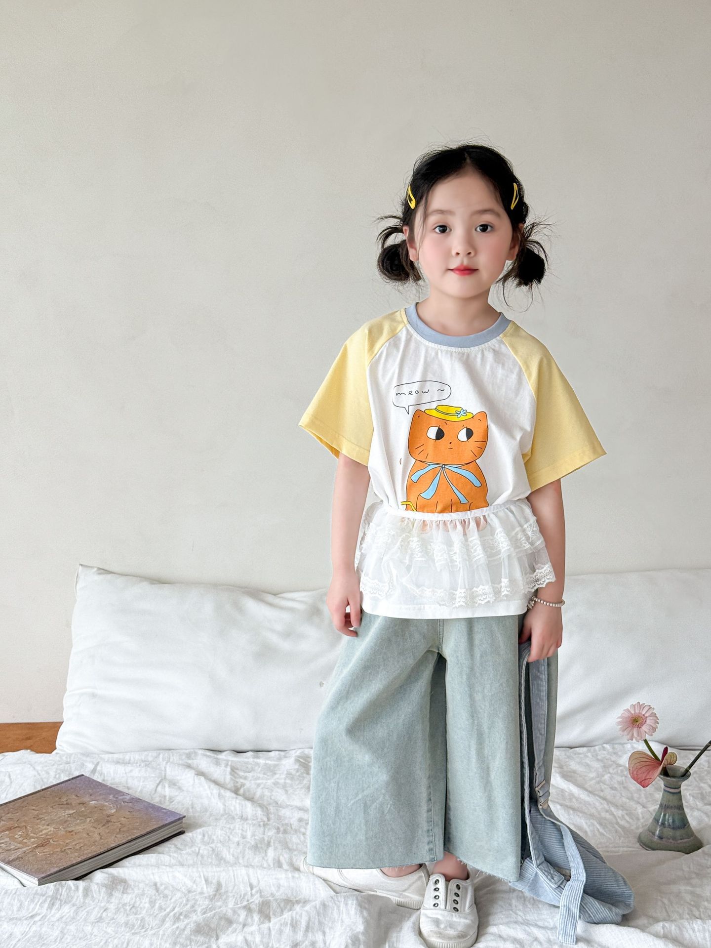 Weimu 아동 의류 소녀 티셔츠 반팔 2025 새로운 여름 얇은 어린이 통기성 반팔 탑 카테고리 a 아기 옷