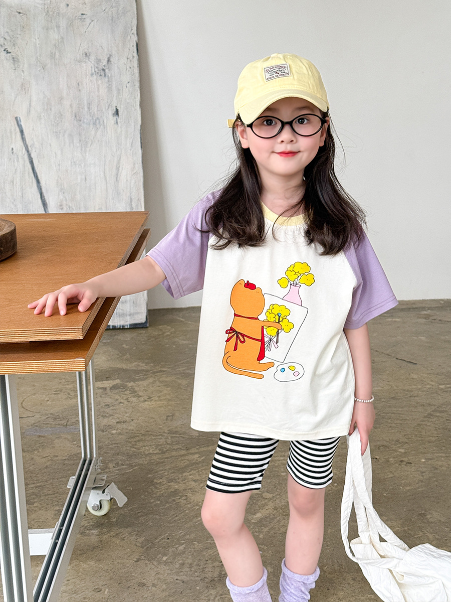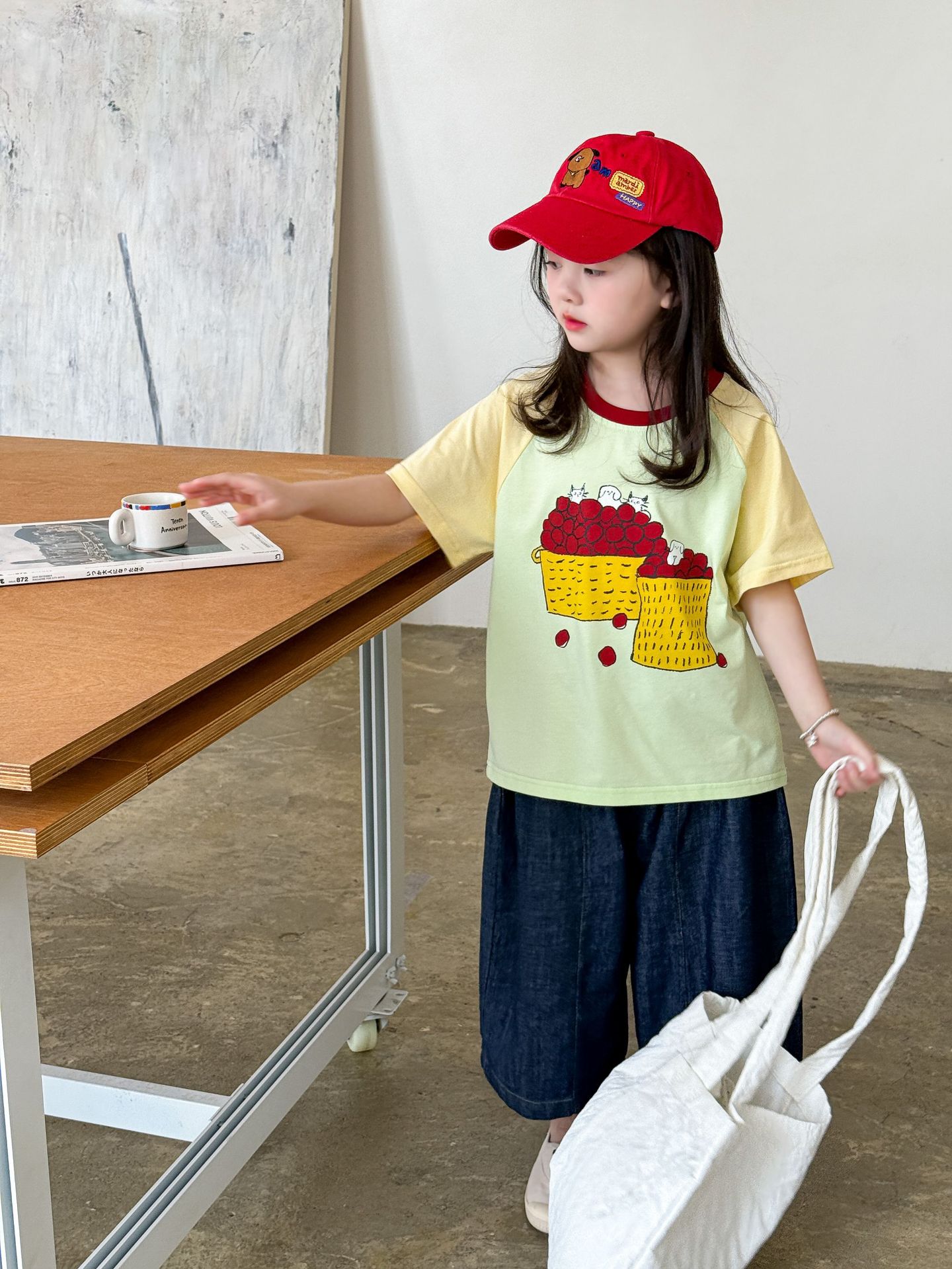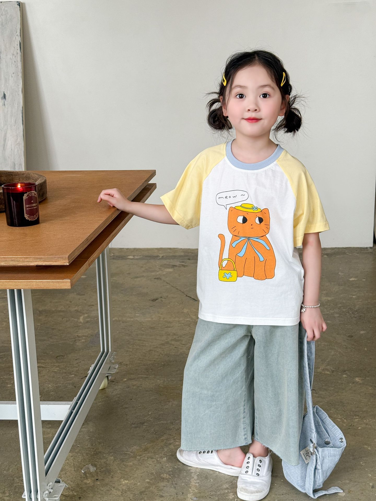 Weimu 아동 의류 소녀 티셔츠 반팔 2025 새로운 여름 얇은 어린이 통기성 반팔 탑 카테고리 a 아기 옷스토어 가기