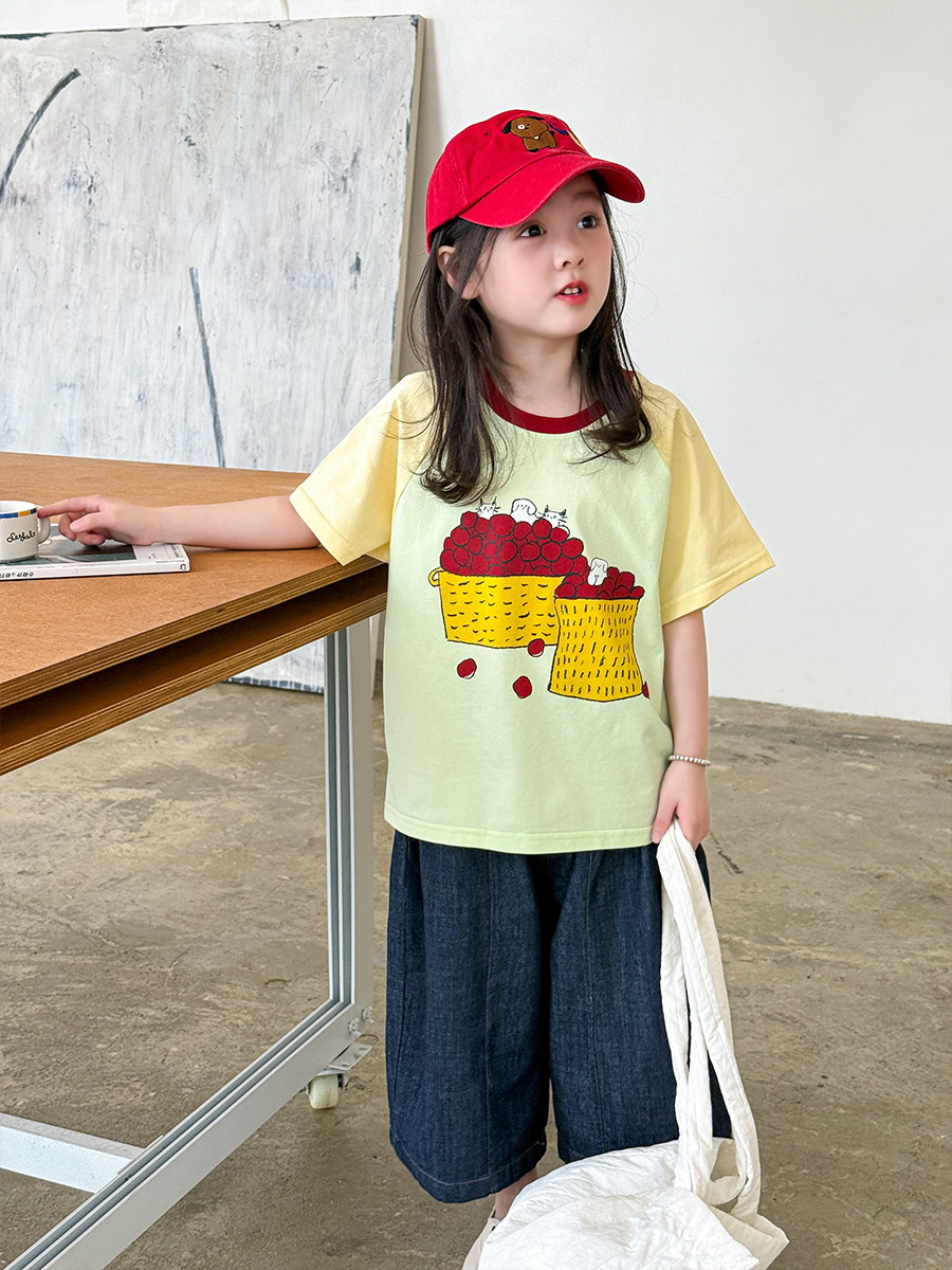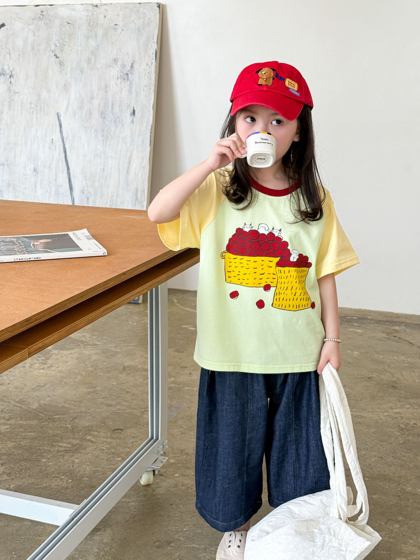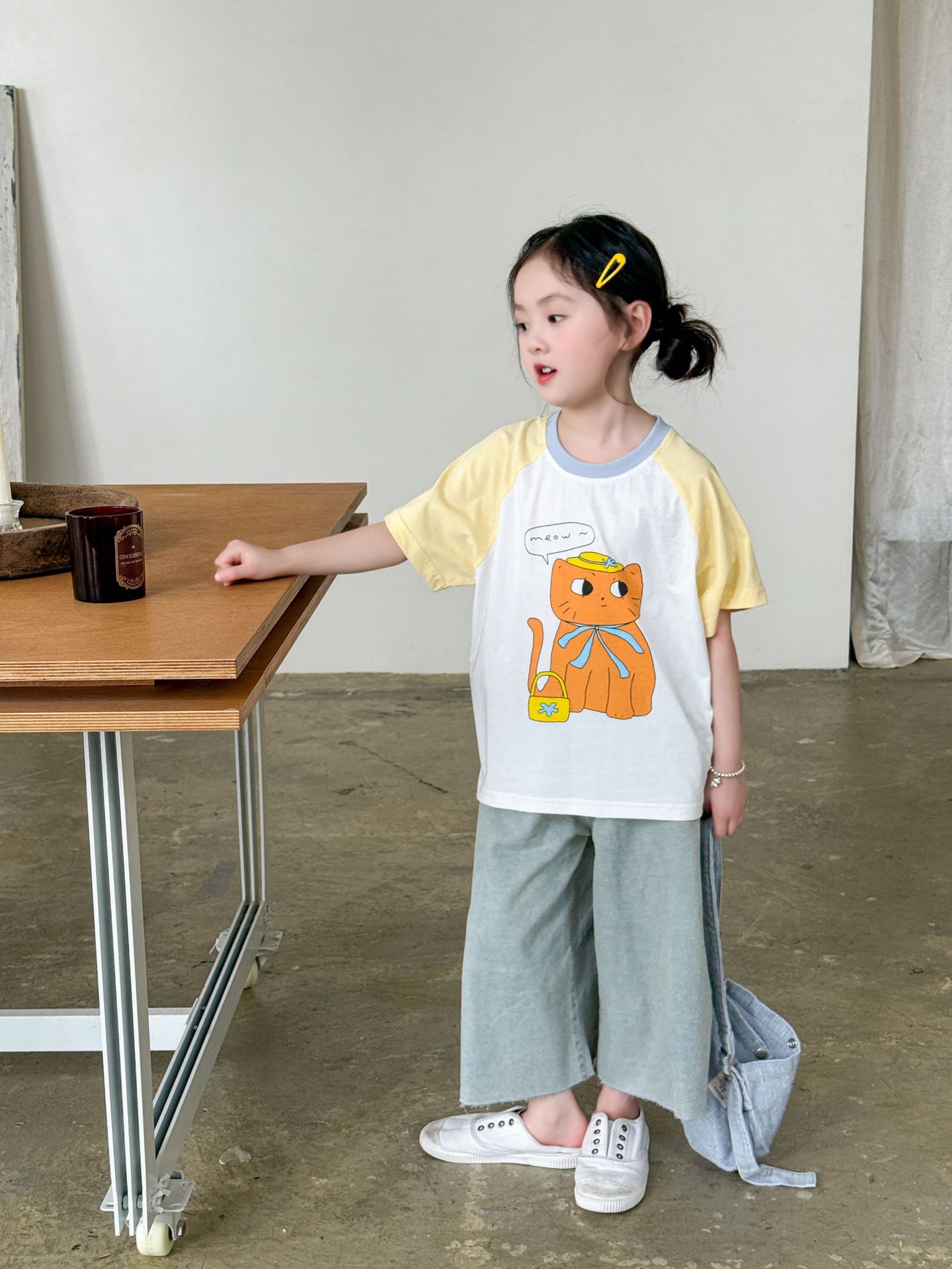 Weimu 아동 의류 소녀 티셔츠 반팔 2025 새로운 여름 얇은 어린이 통기성 반팔 탑 카테고리 a 아기 옷스토어 가기