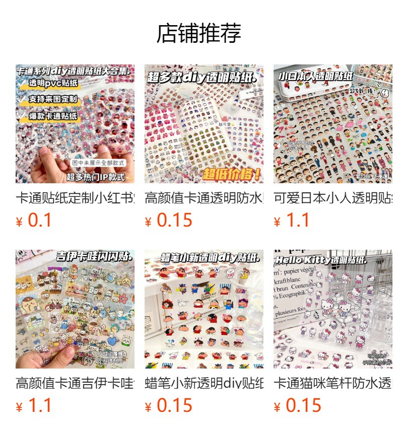 공장 직접 판매 귀여운 만화 투명 diy 방수 스티커 믹스 앤 매치 고가치 학생 핸드북 펜 홀더 장식 스티커스토어 가기