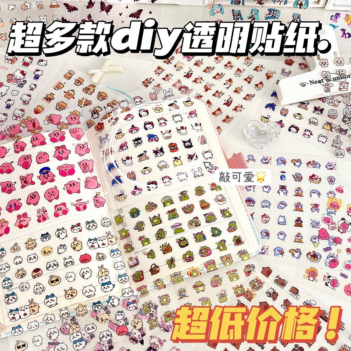 공장 직접 판매 귀여운 만화 투명 diy 방수 스티커 믹스 앤 매치 고가치 학생 핸드북 펜 홀더 장식 스티커
