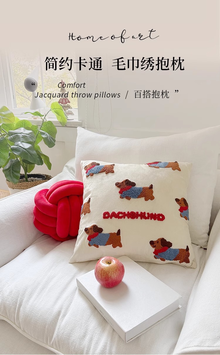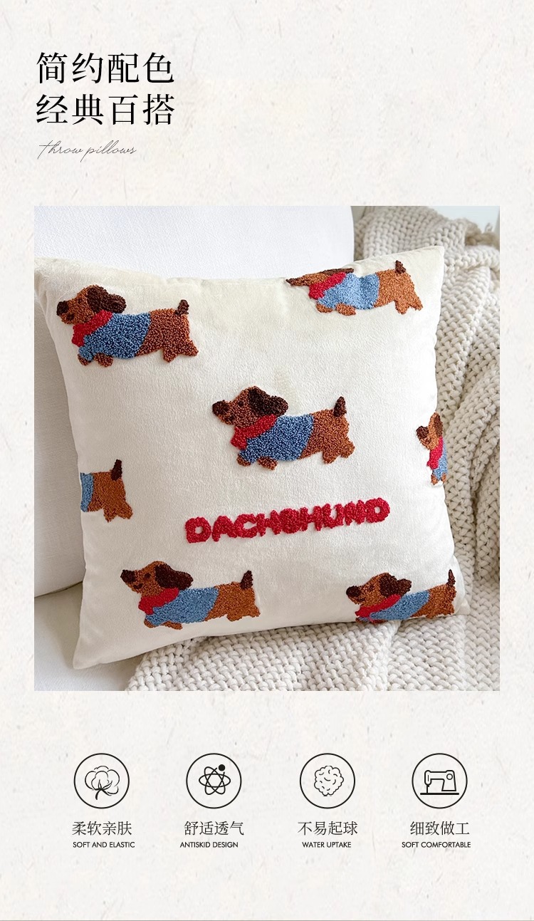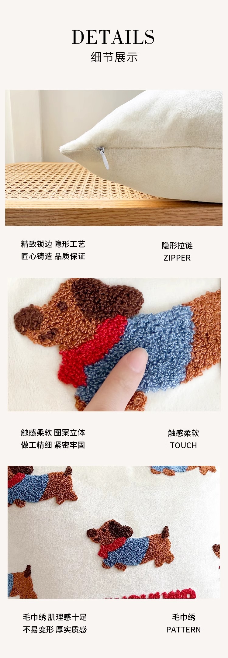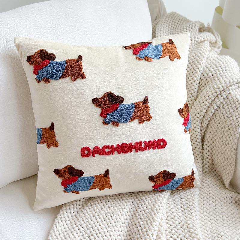 만화 강아지 수건 자수 베개 케이스 어린이 방 베이 창 베개 현대 간단한 동물 소파 코어 뒤 쿠션스토어 가기
