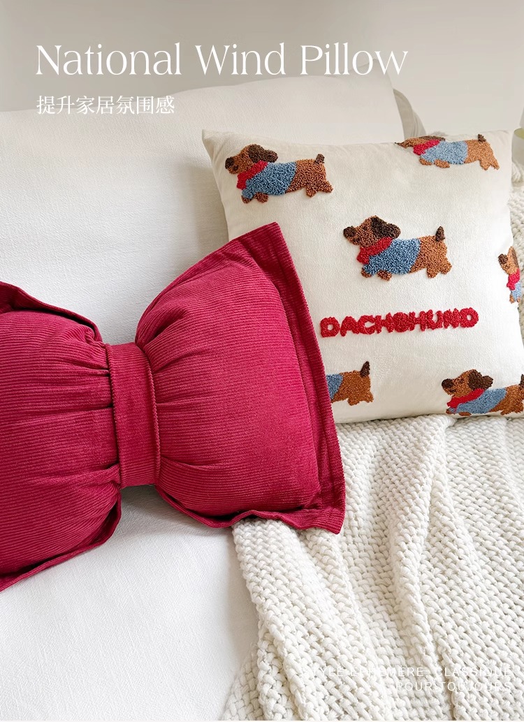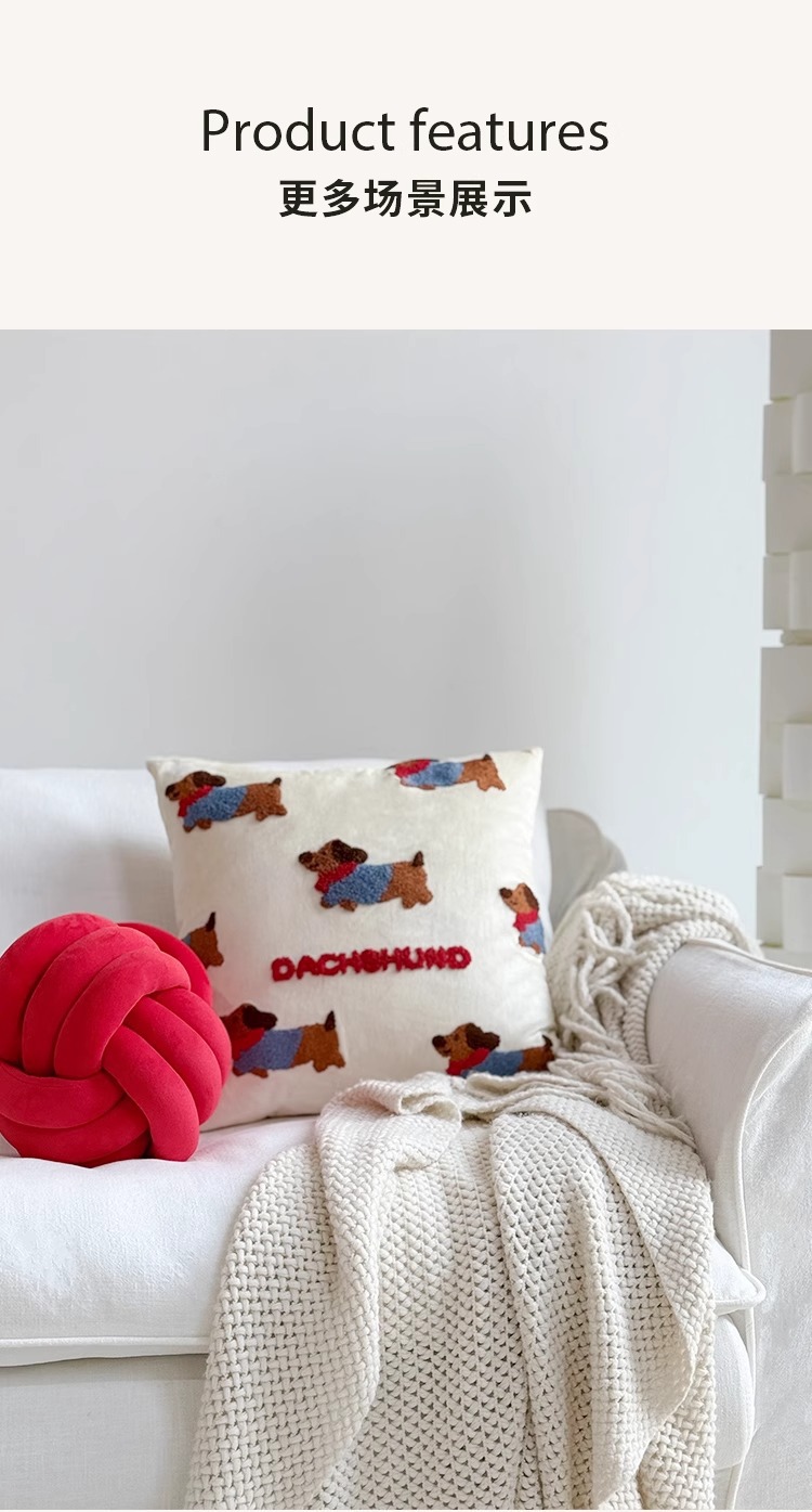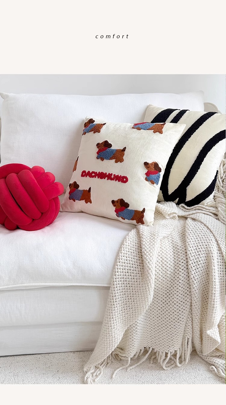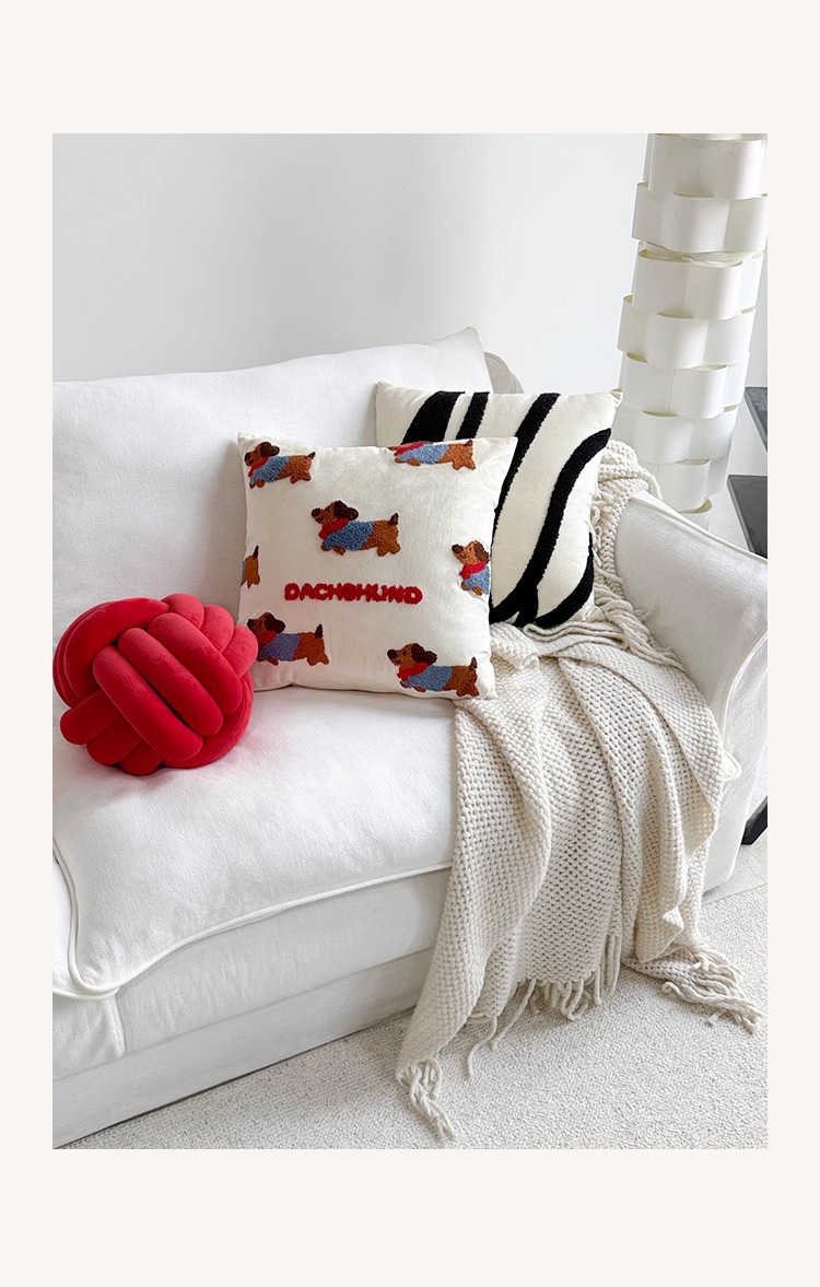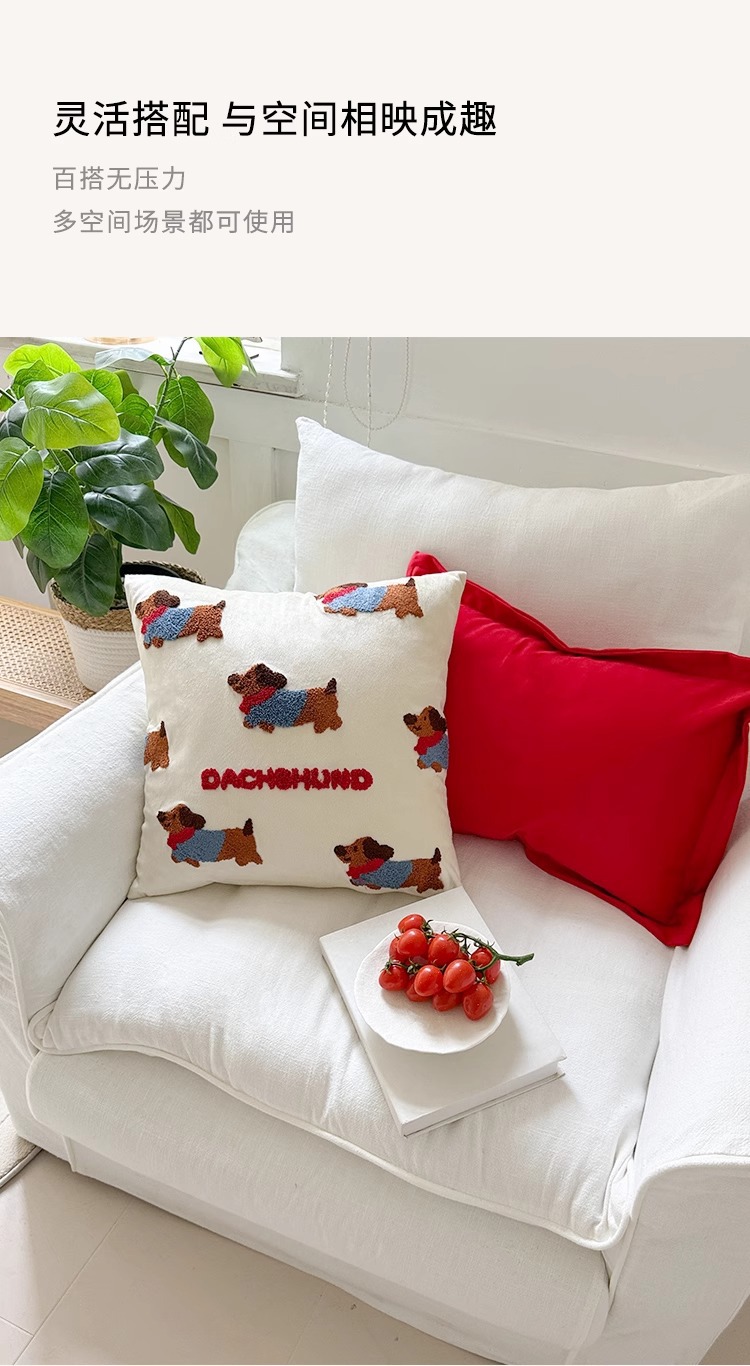 만화 강아지 수건 자수 베개 케이스 어린이 방 베이 창 베개 현대 간단한 동물 소파 코어 뒤 쿠션스토어 가기
