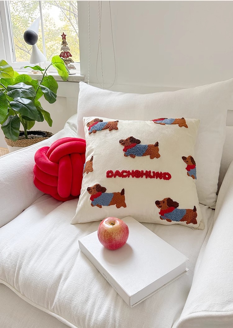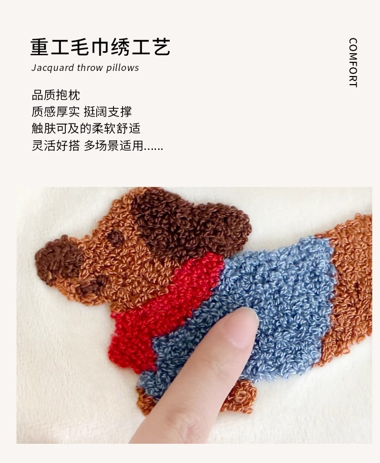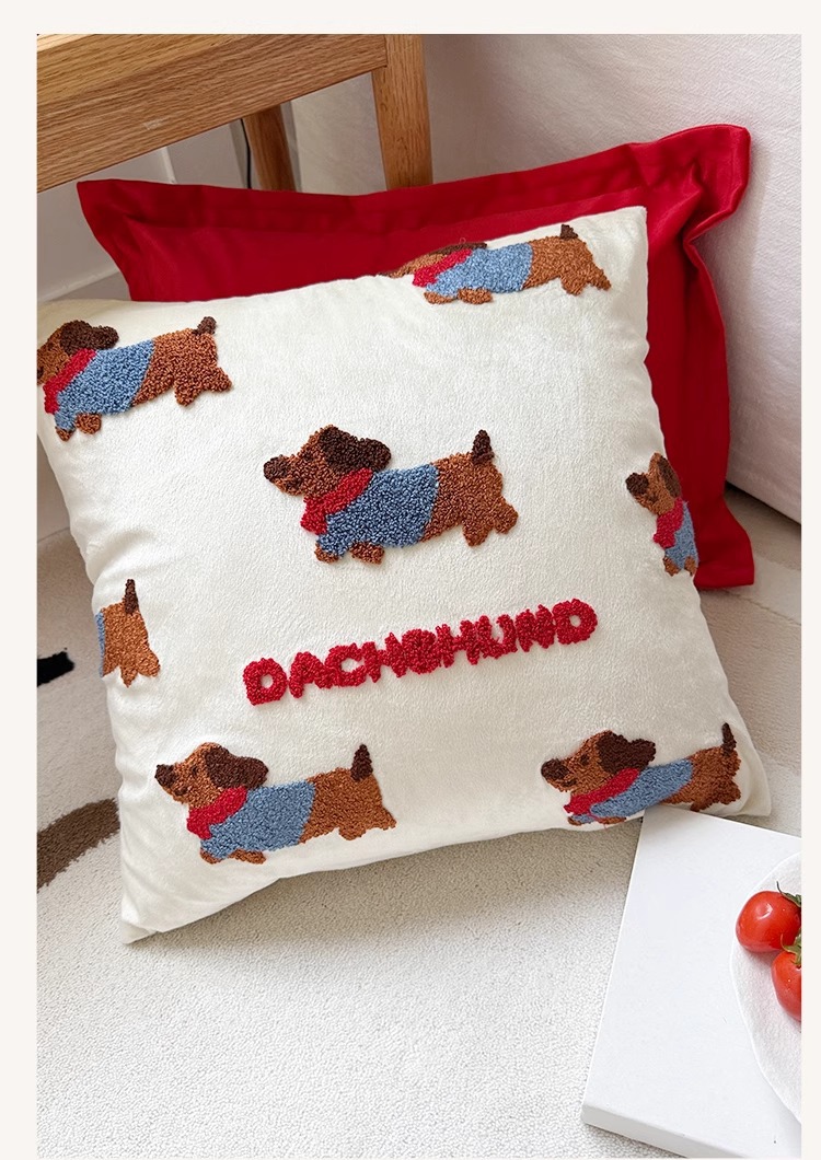 만화 강아지 수건 자수 베개 케이스 어린이 방 베이 창 베개 현대 간단한 동물 소파 코어 뒤 쿠션