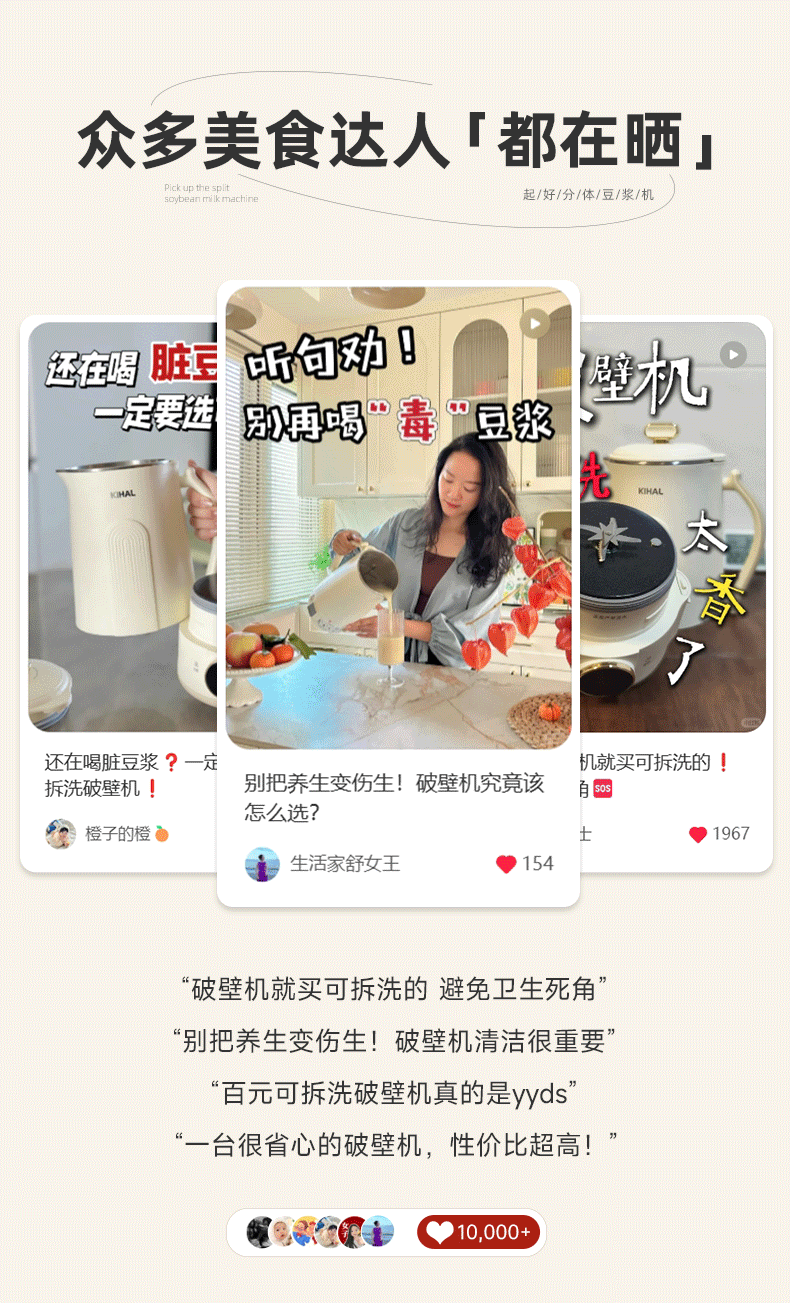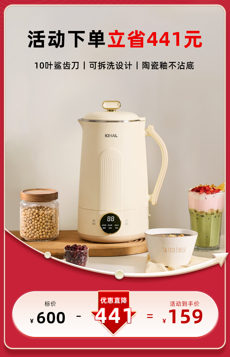 KIHAL/Qihao 분리 및 세척 가능한 벽 파괴 기계 가정용 대용량 완전 자동 소형 두유 기계 분할 새로운 유럽스토어 가기