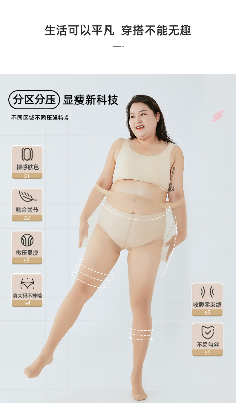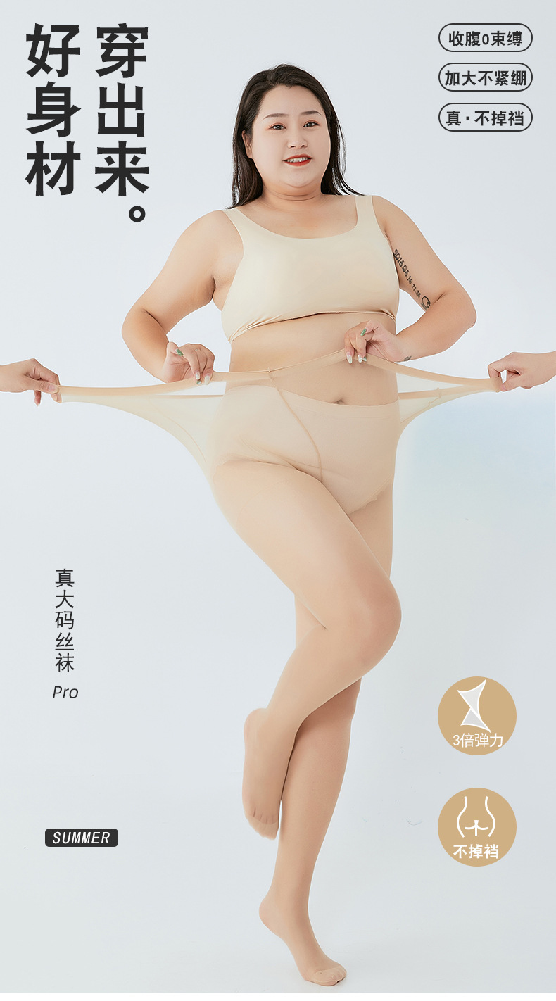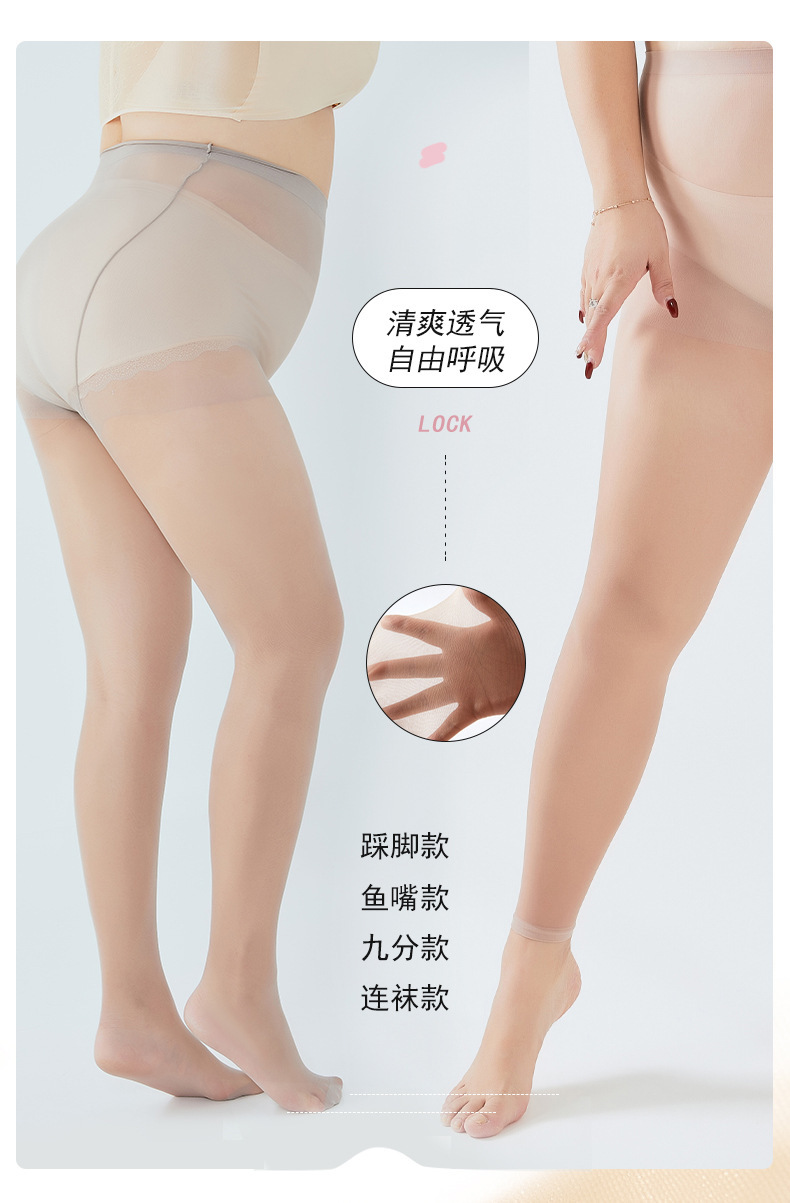 여름 여성용 특대 스타킹, 초박형 걸림 방지 파인애플 살색 스타킹, 맨몸 누드 느낌의 아티팩트, 9점 피부 미용 양말