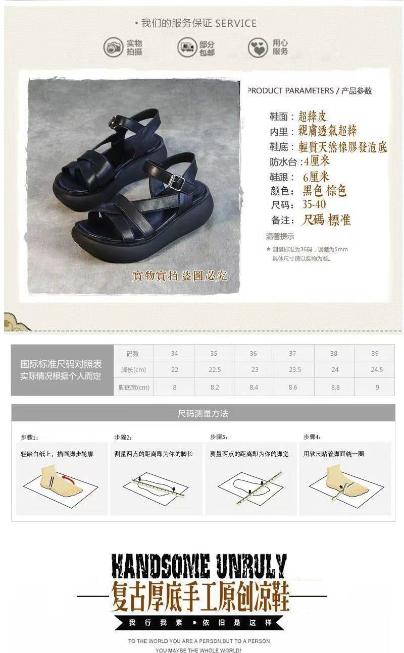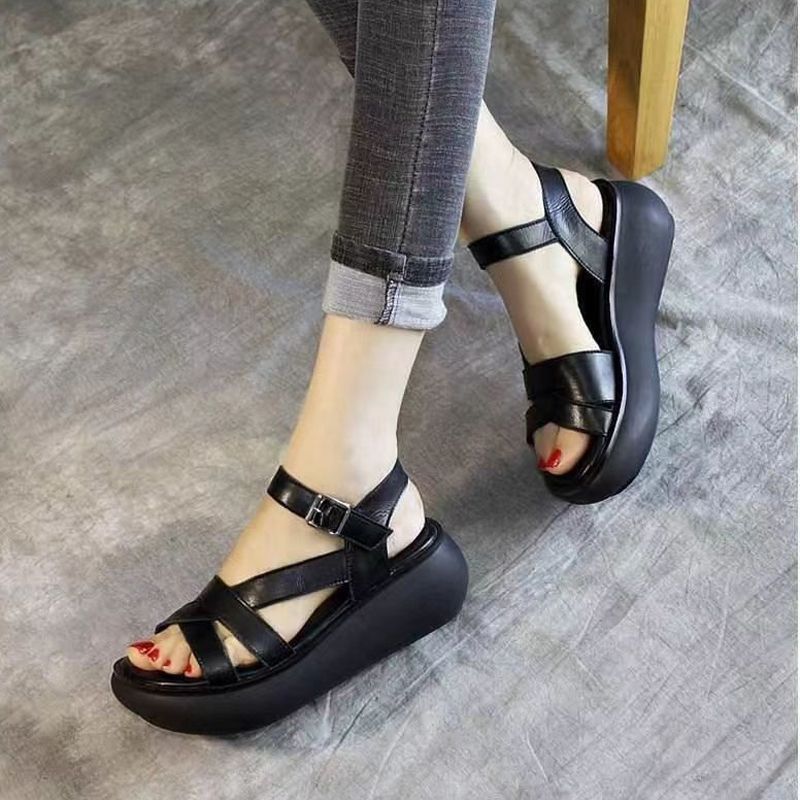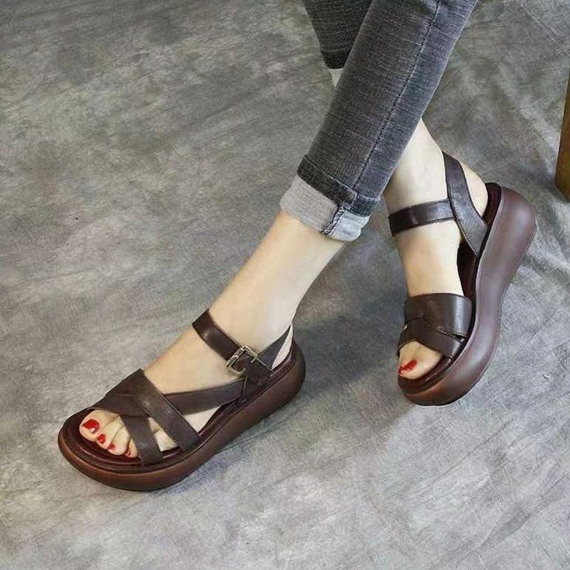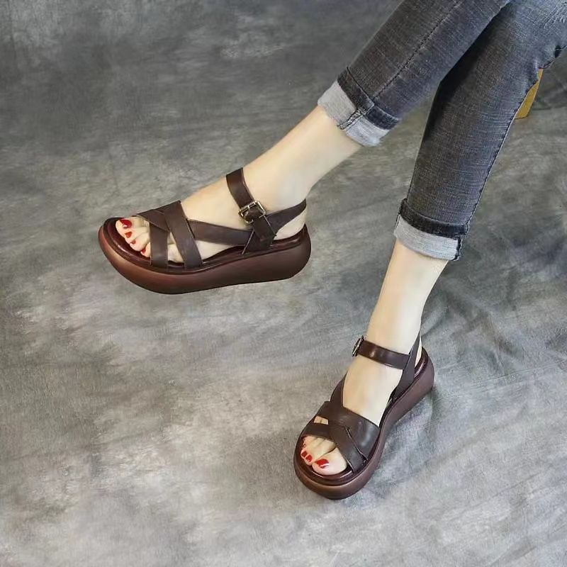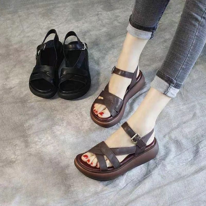 2024 여름 여성 샌들 두꺼운 밑창 플랫폼 신발 얇은 스트랩 오픈 발가락 웨지 캐주얼 복고풍 수제 로마 샌들스토어 가기