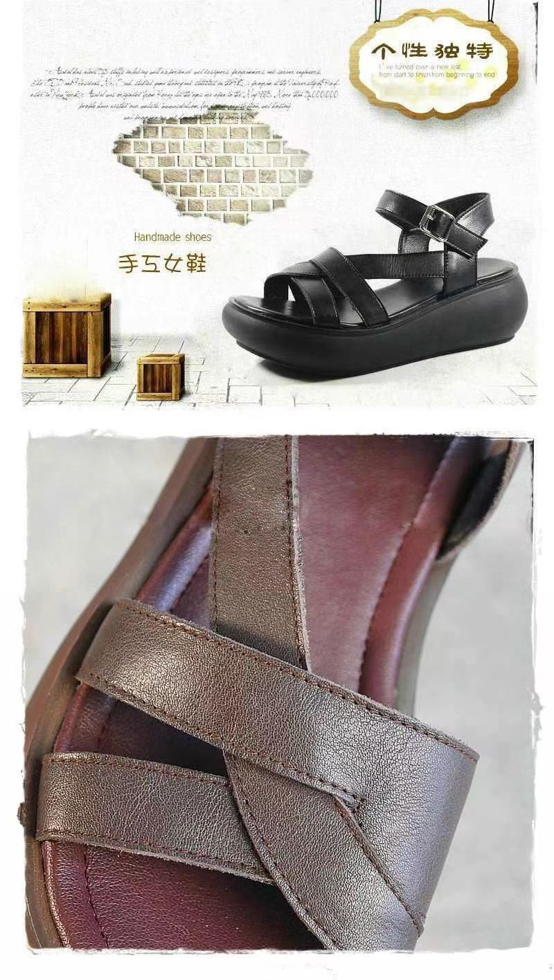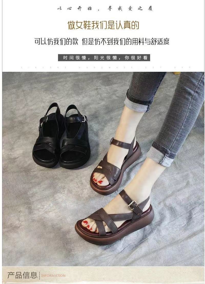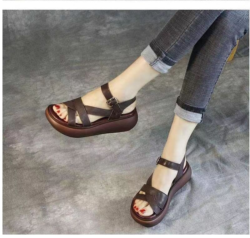 2024 여름 여성 샌들 두꺼운 밑창 플랫폼 신발 얇은 스트랩 오픈 발가락 웨지 캐주얼 복고풍 수제 로마 샌들스토어 가기